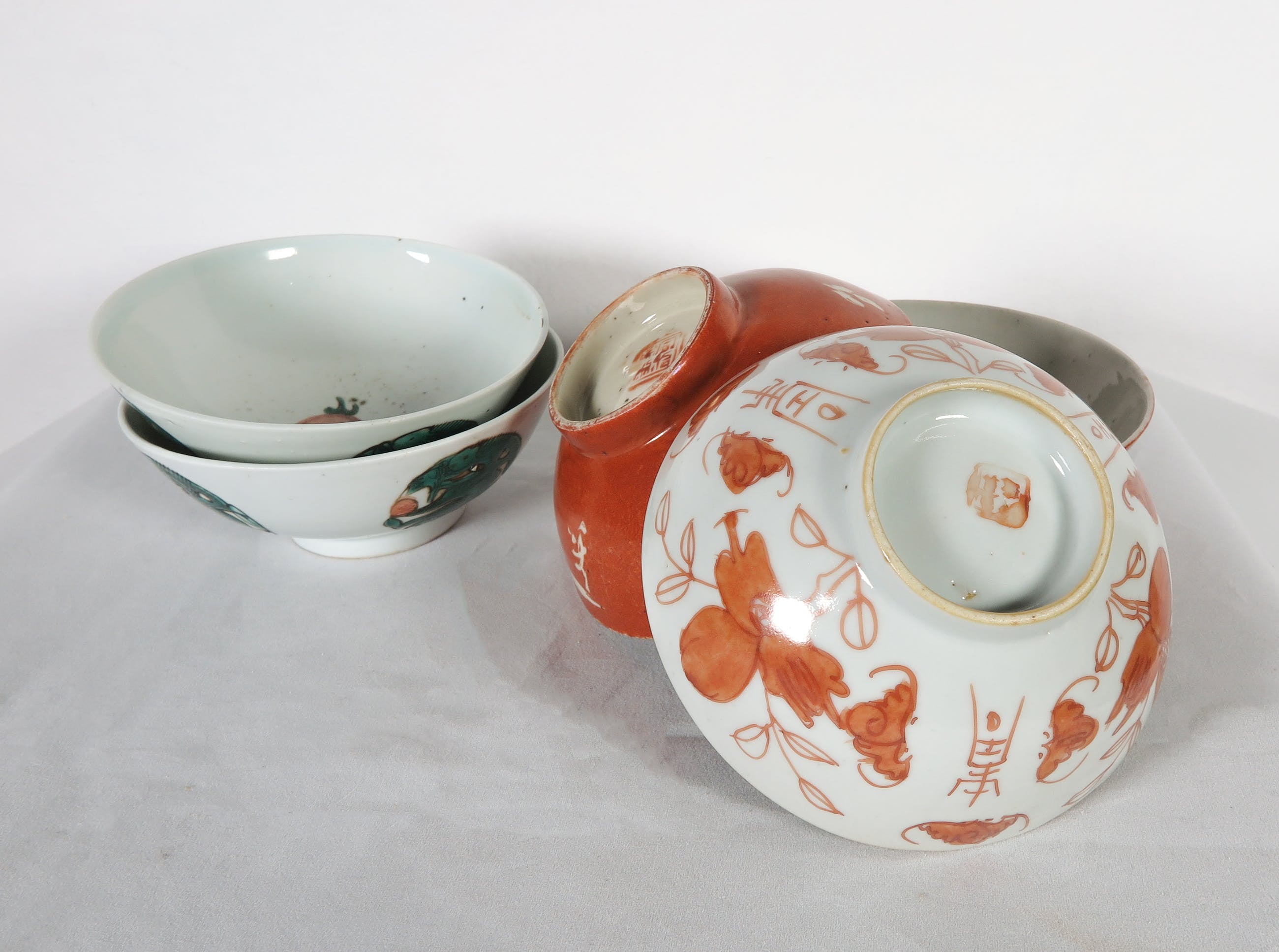 Vervaardigd omstreeks 1900 . De kommetjes hebben verschillende merktekens.