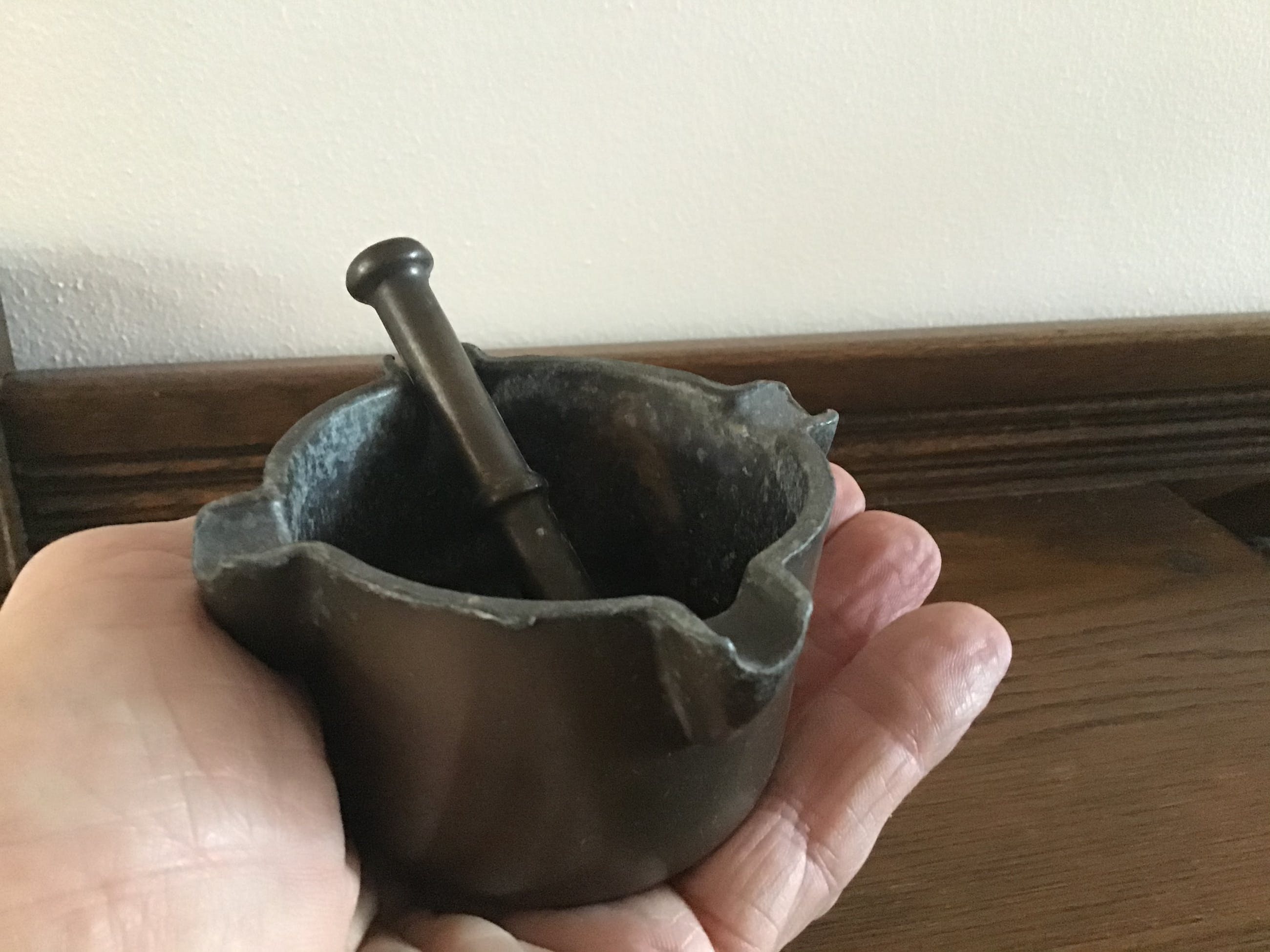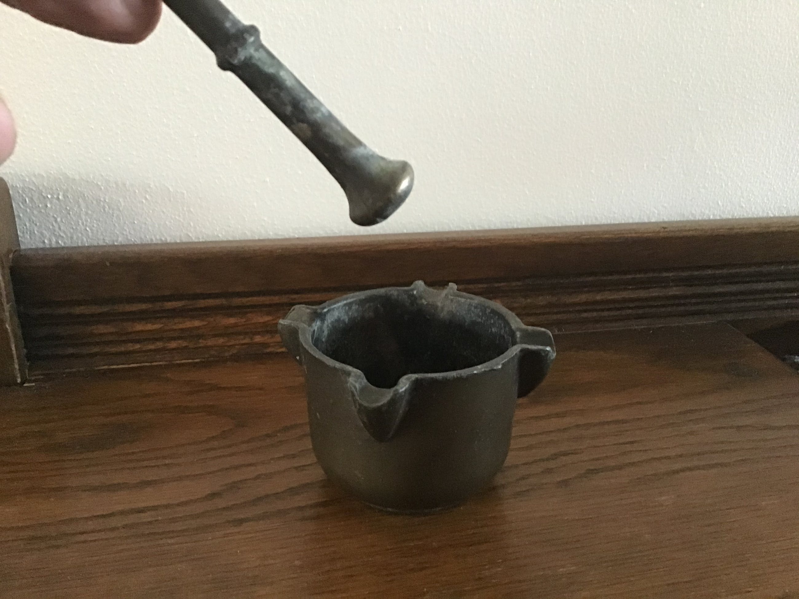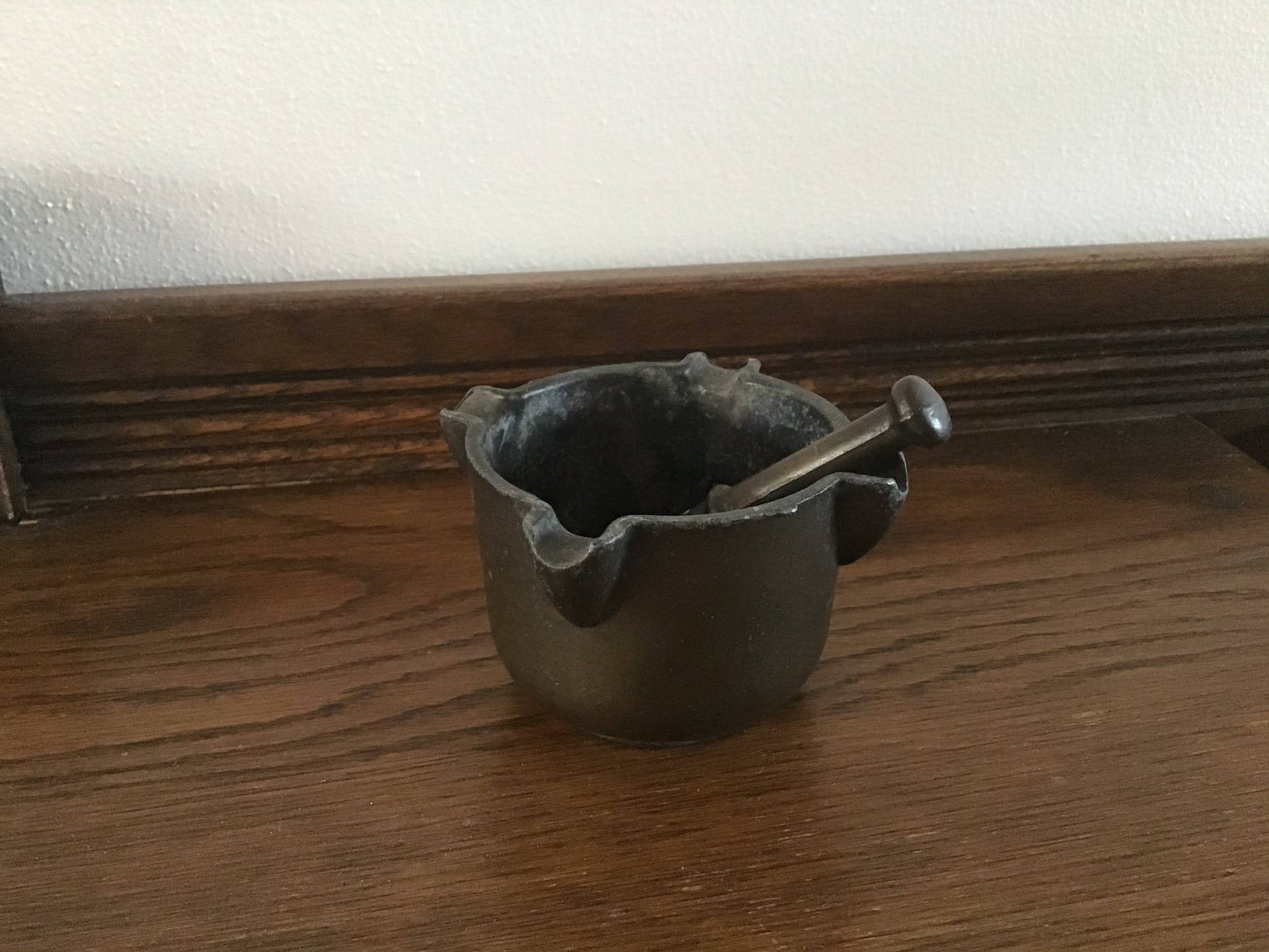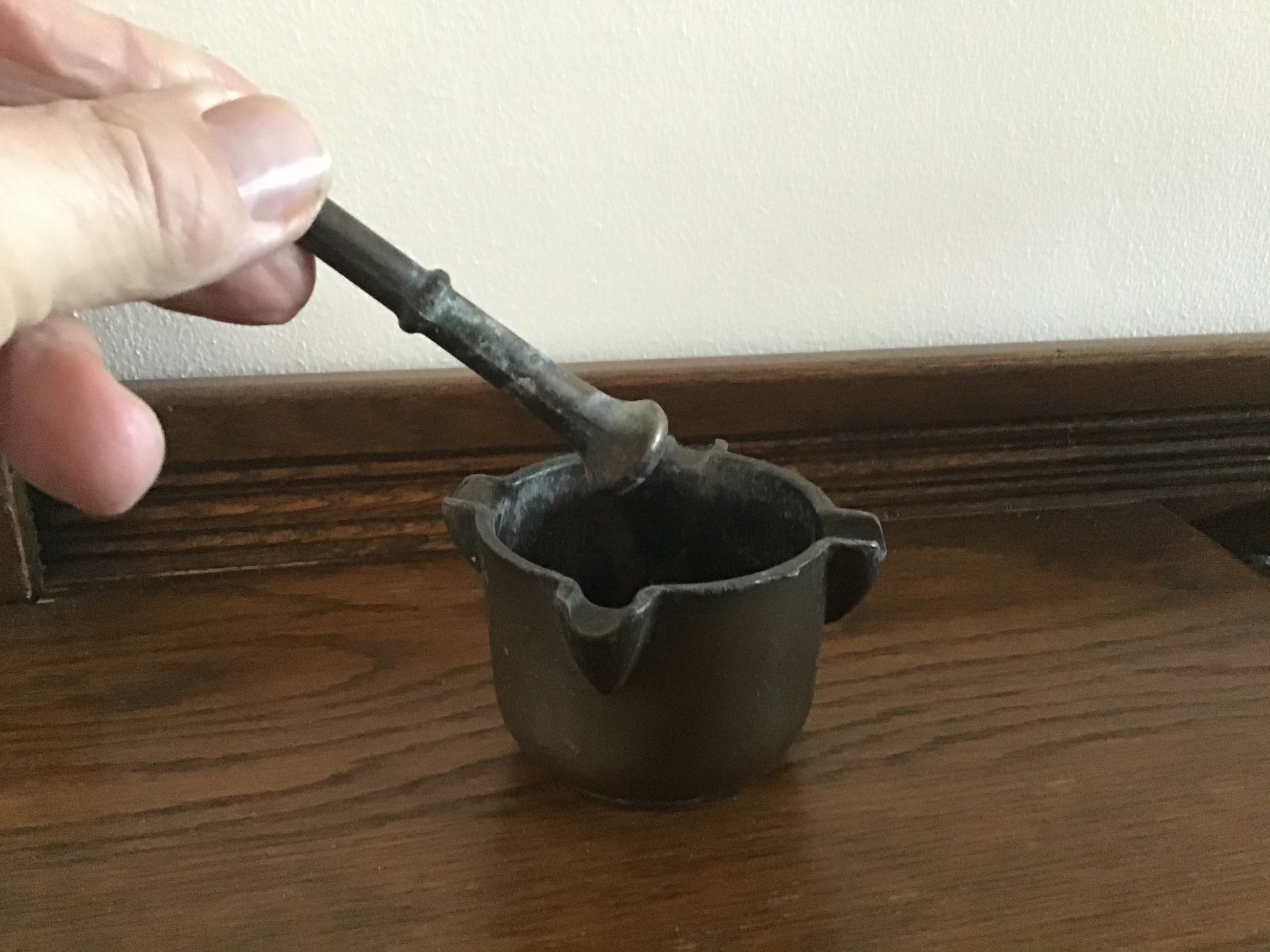 Bronzen minivijzel met bijbehorende stamper.