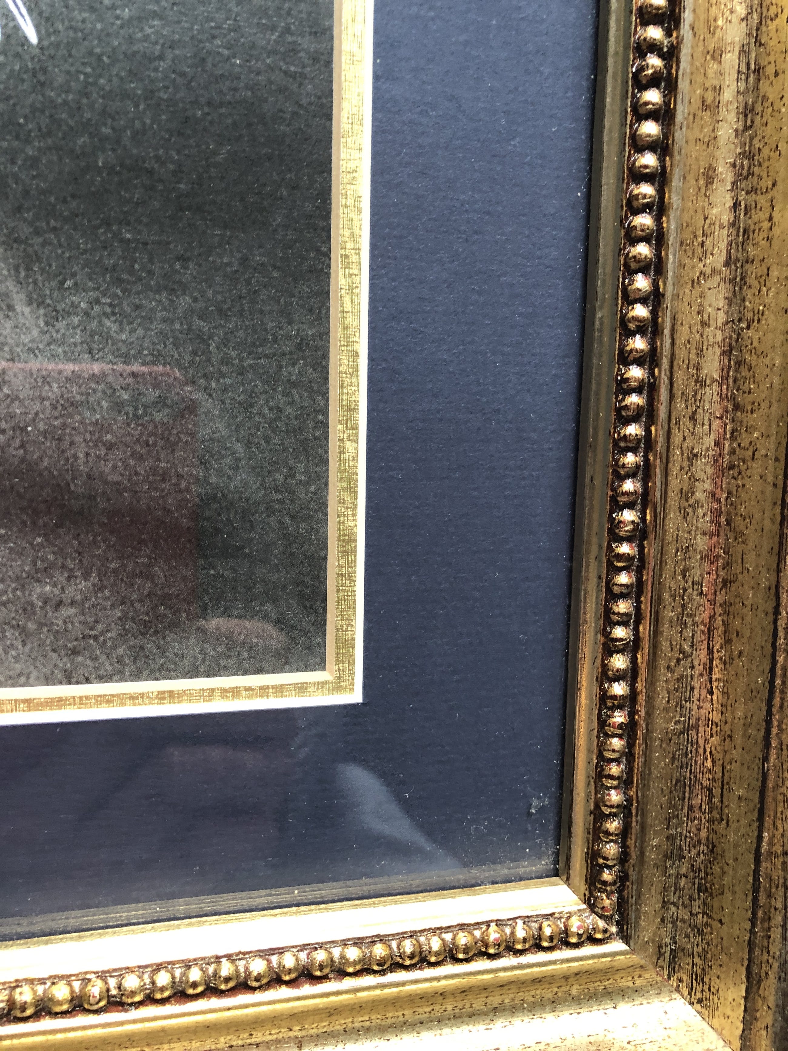 Photo by Max Waldman met de hand gesigneerd. De maat van de foto : 28 X 22 cm. 11 X 8.5 inch De maat van de lijst : 40 X 46 cm. 16 X 18 inch. De dubbele passe-partout is van blauw karton en verguld karton. De frame maker is: JINPRA 1208 Lexington Ave NYC USA. Mooie vergulde zware lijst