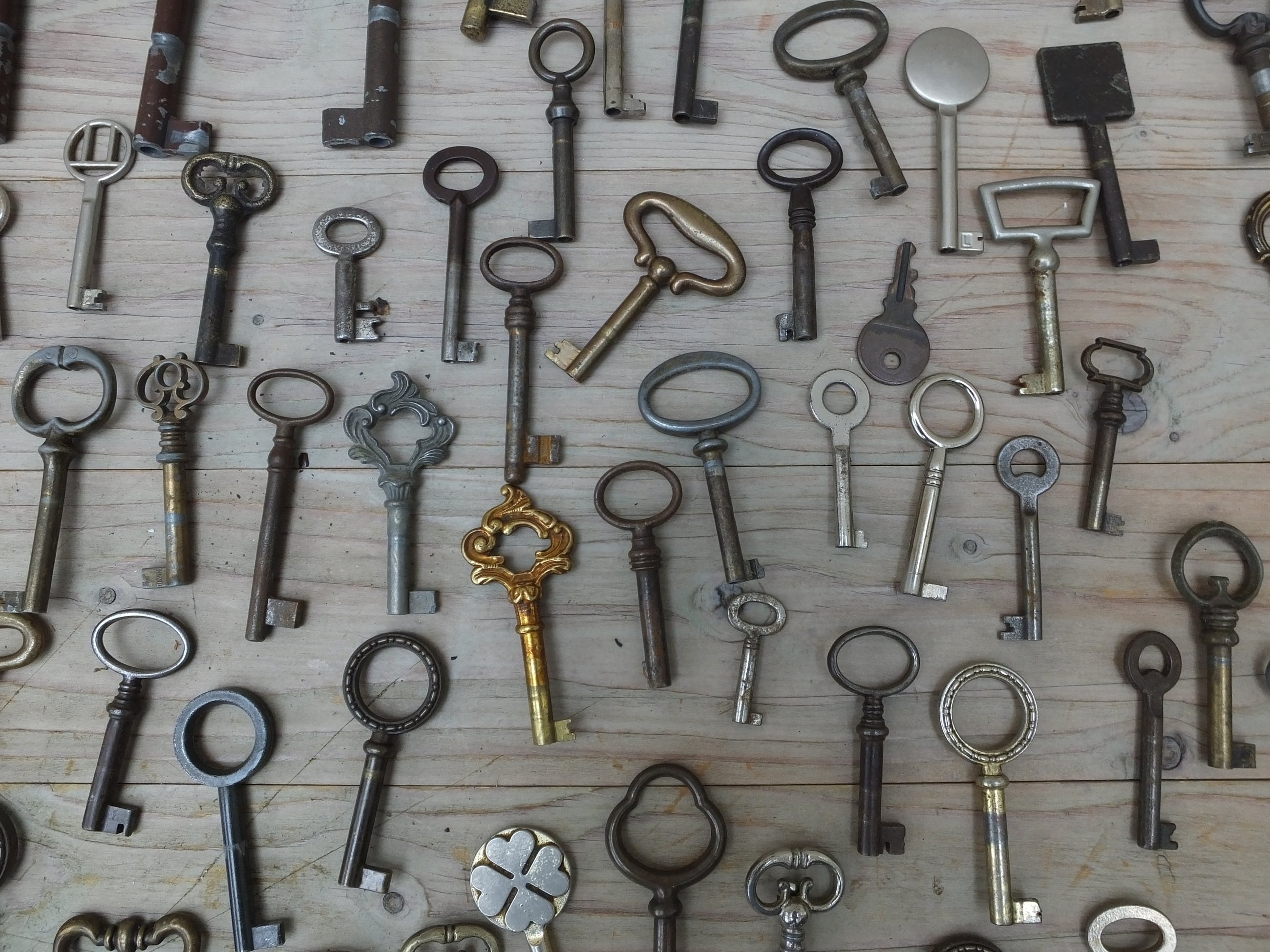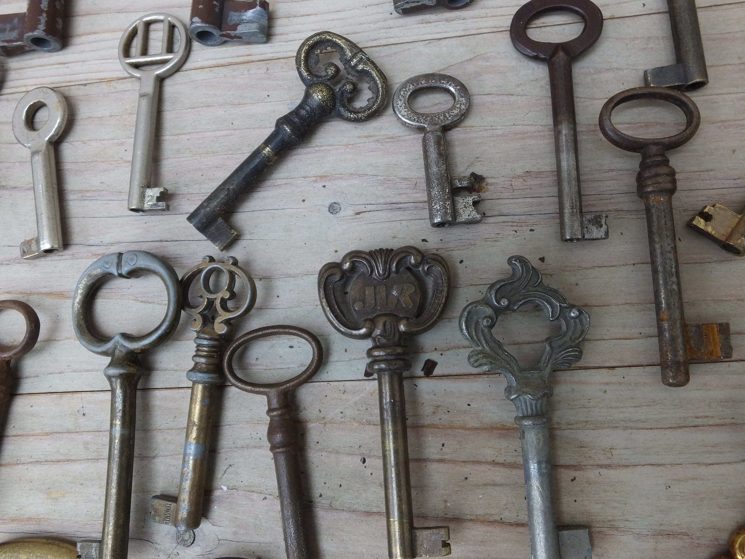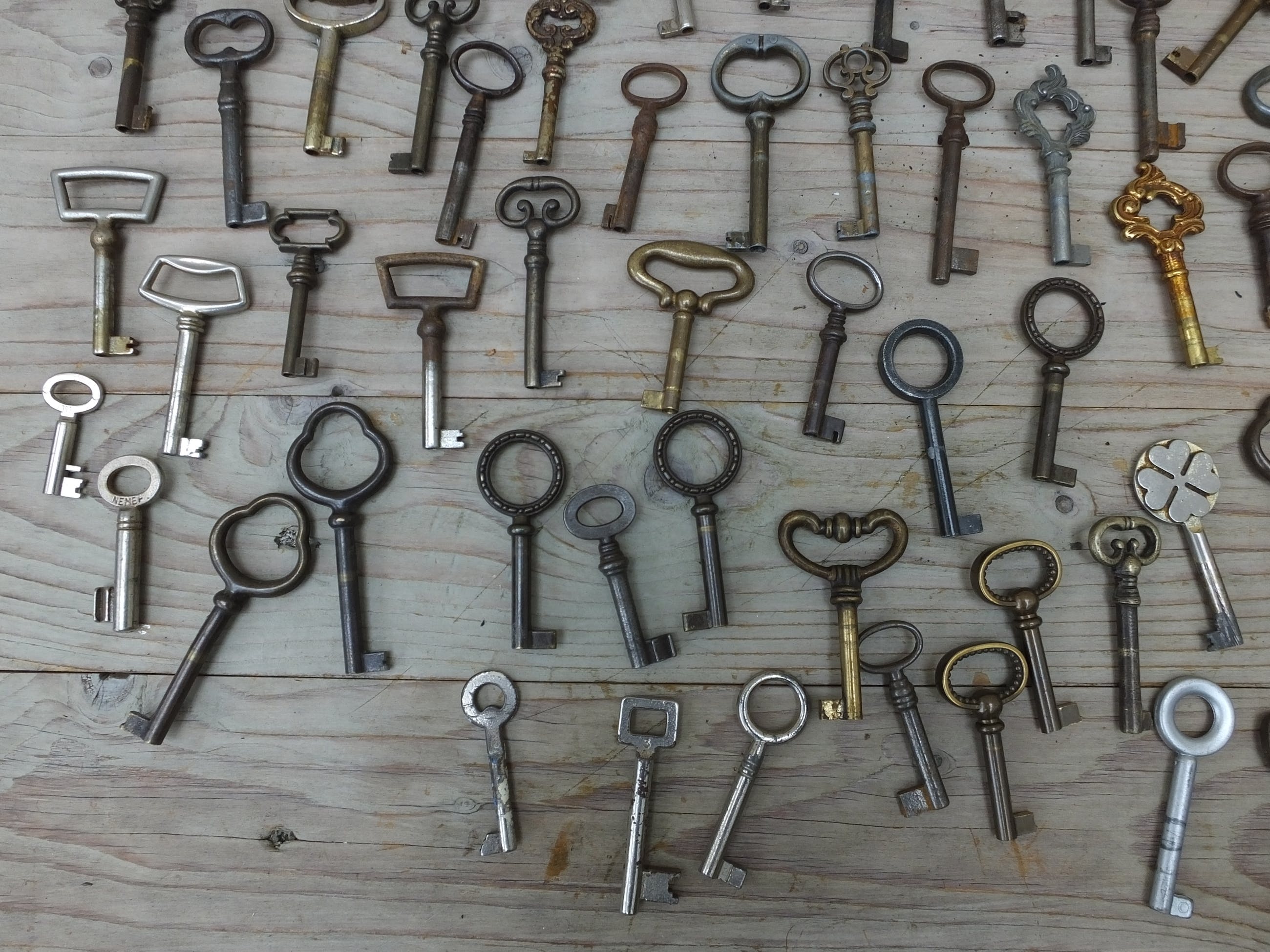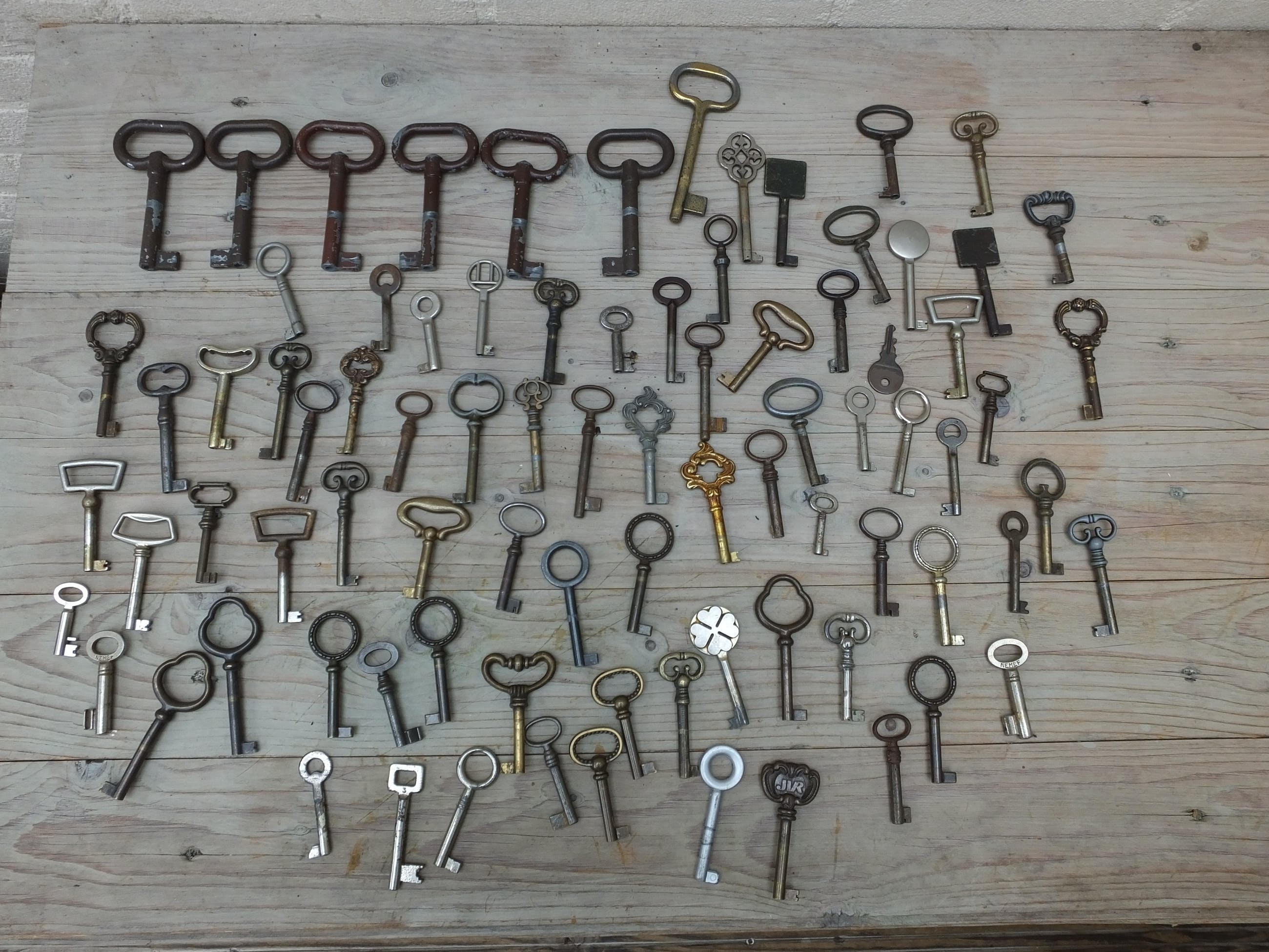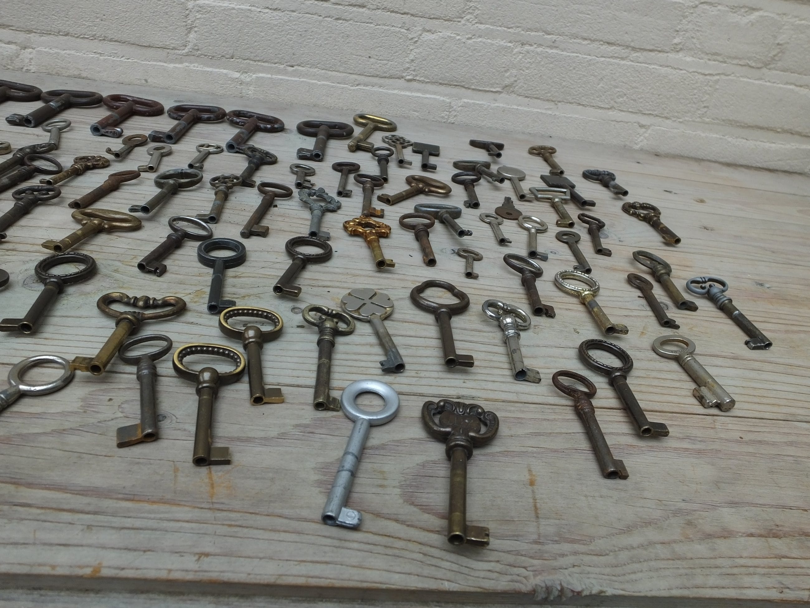 Partij sleutels van diverse afmetingen en metaal soorten. De leeftijd van deze sleutels dateren van begin 1940 tot 2000.