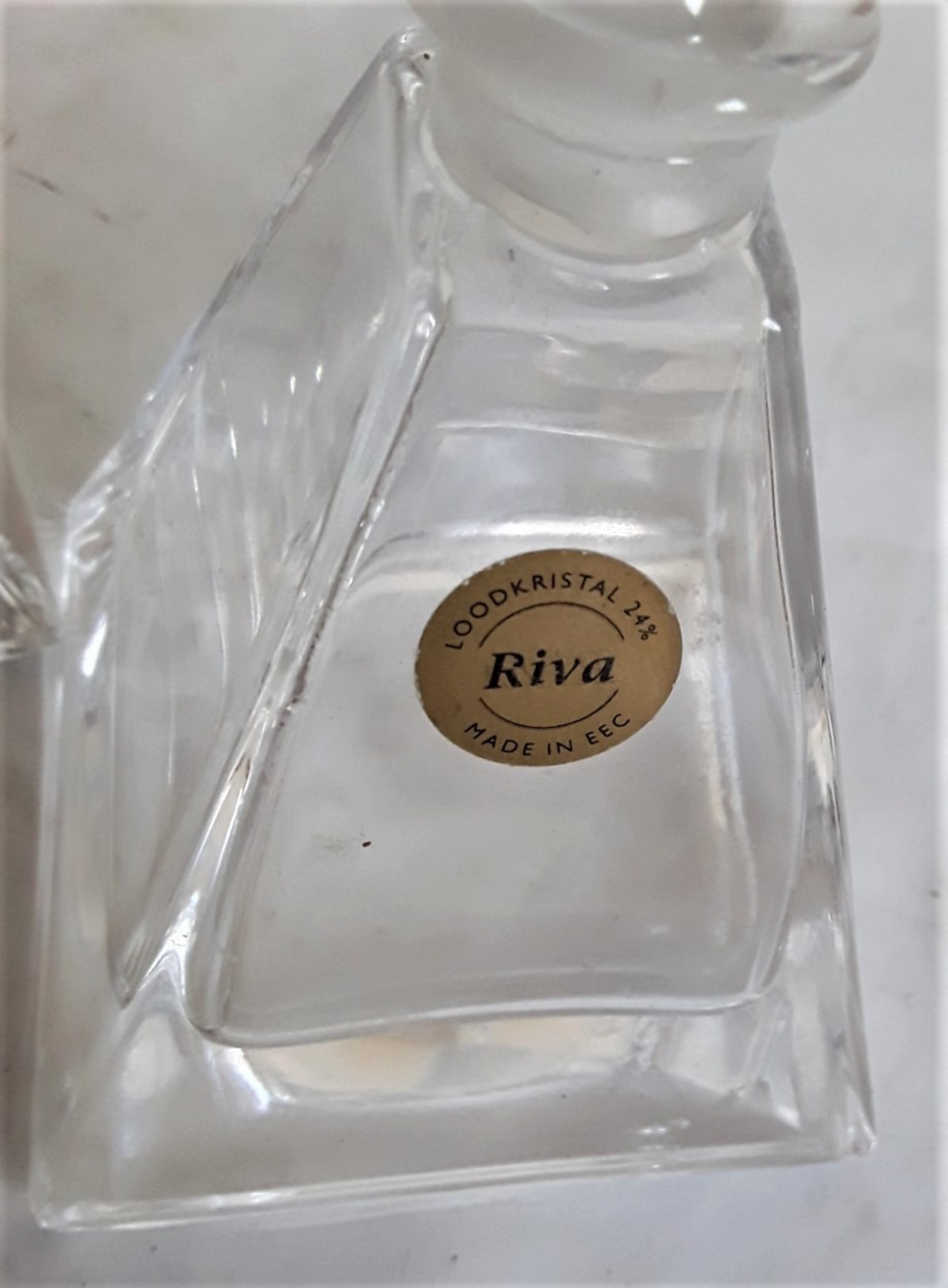 De Rona design kristallen karaf/wijnschenker en de twee Riva karafjes in zeer goede staat (geen krassen en butsen)