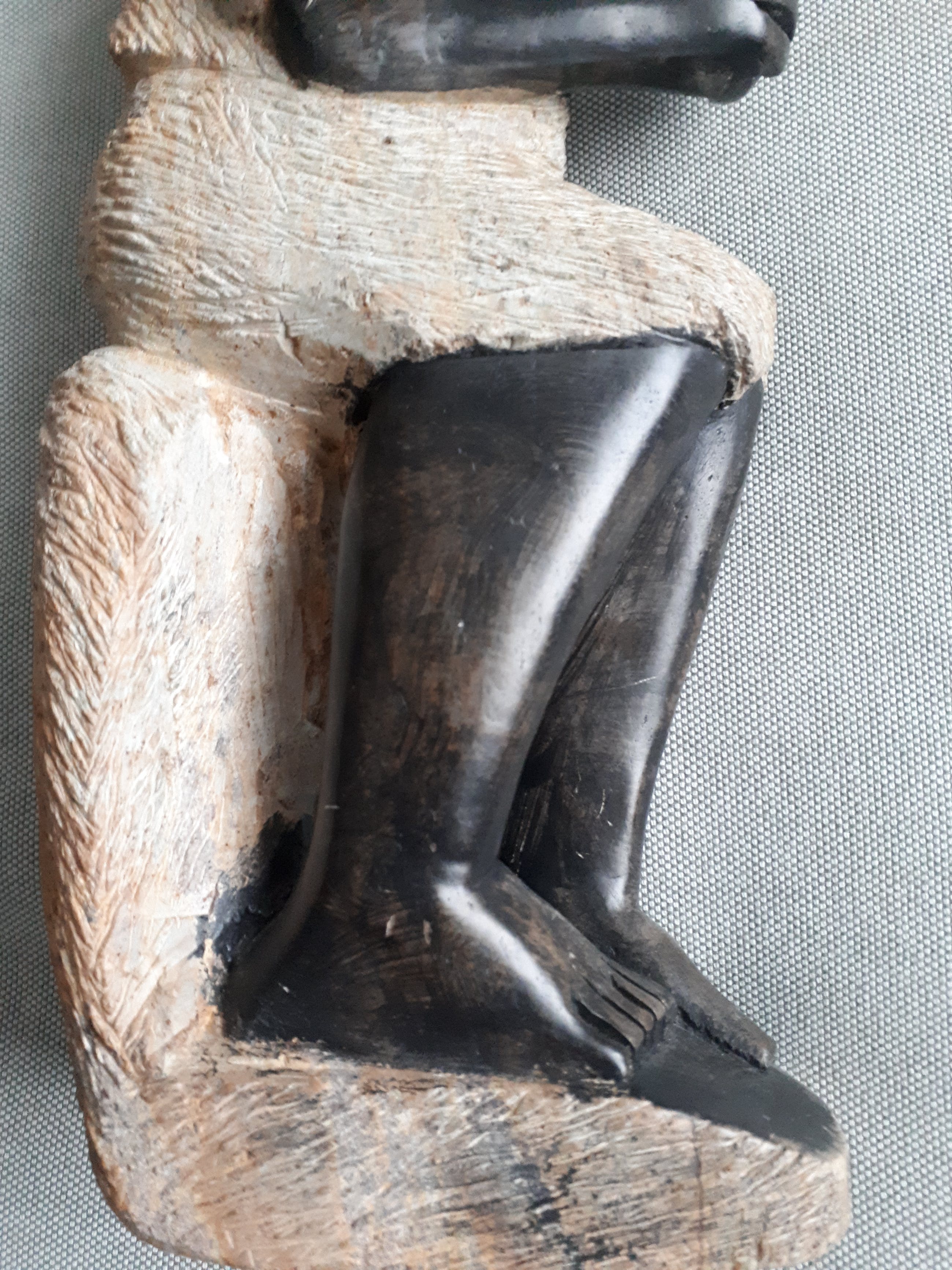 Het beeld is zwaar en is van een bepaalde soort speksteen. Land van herkomst