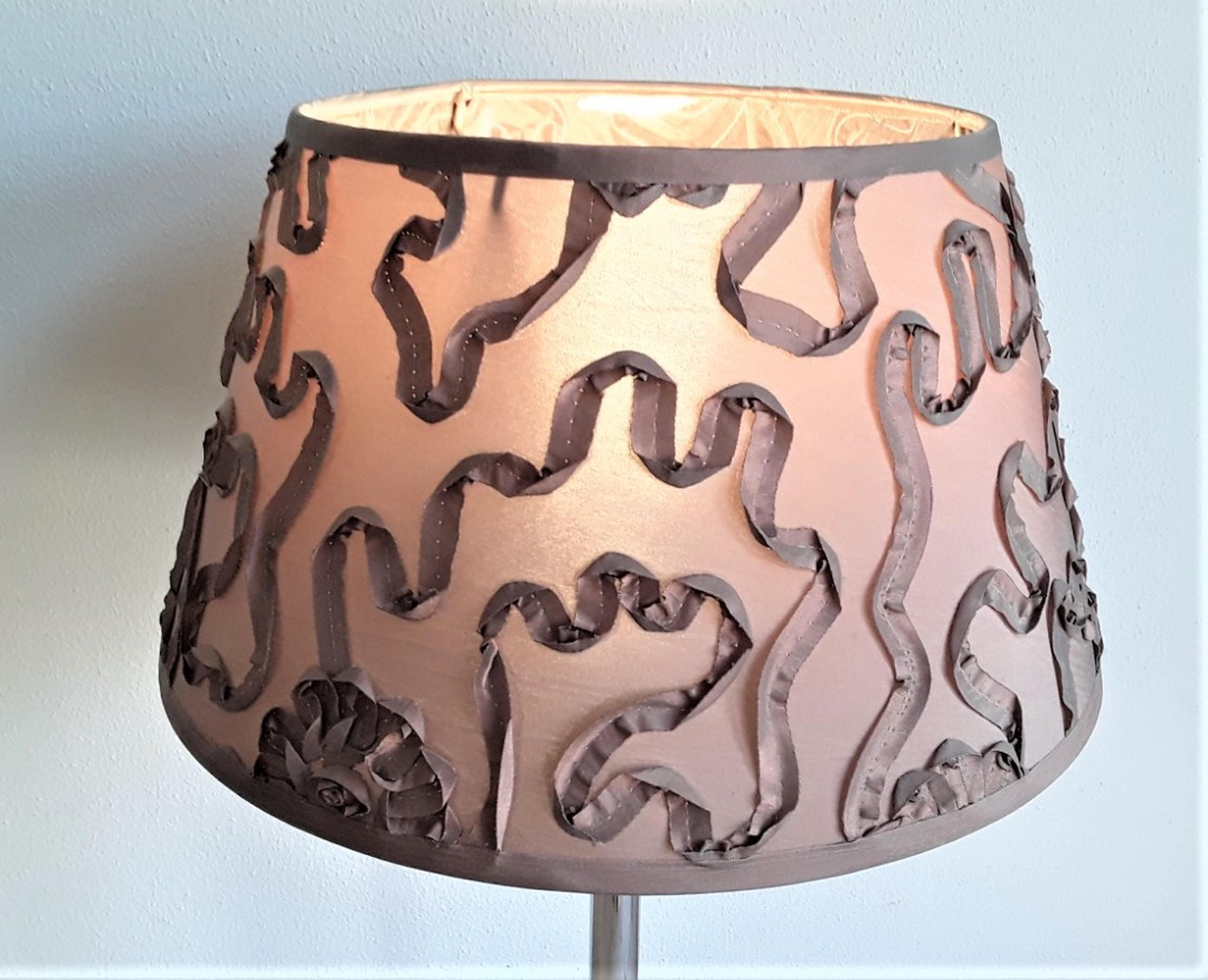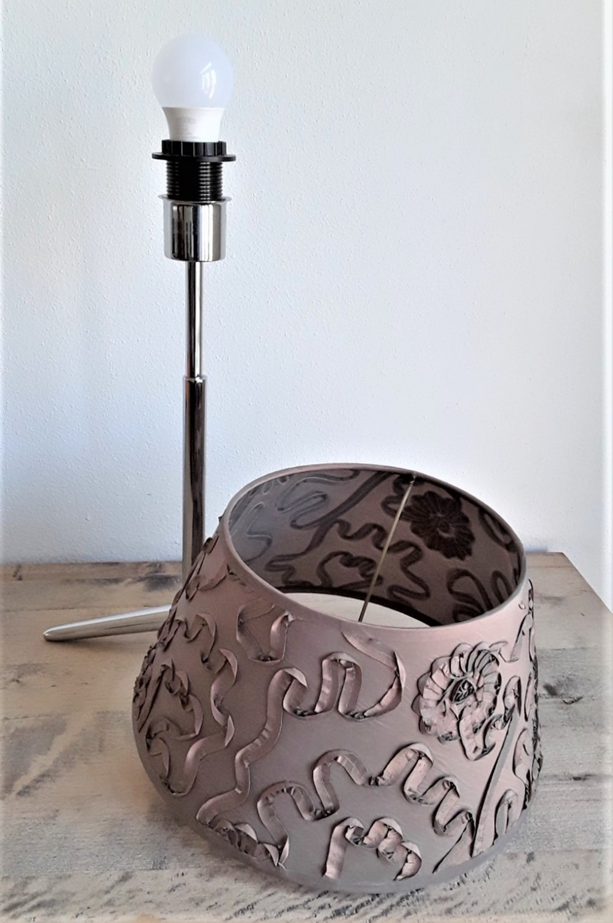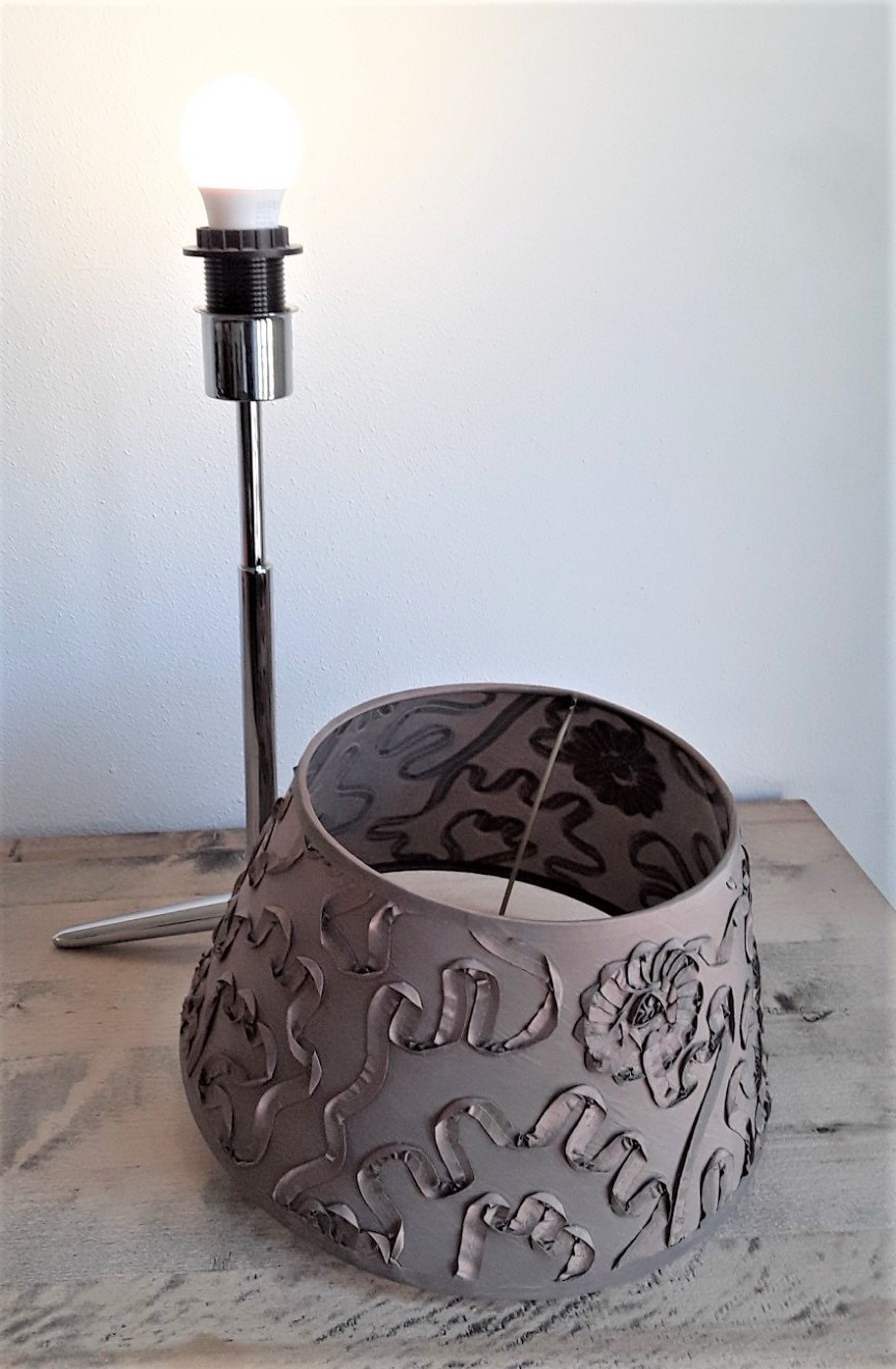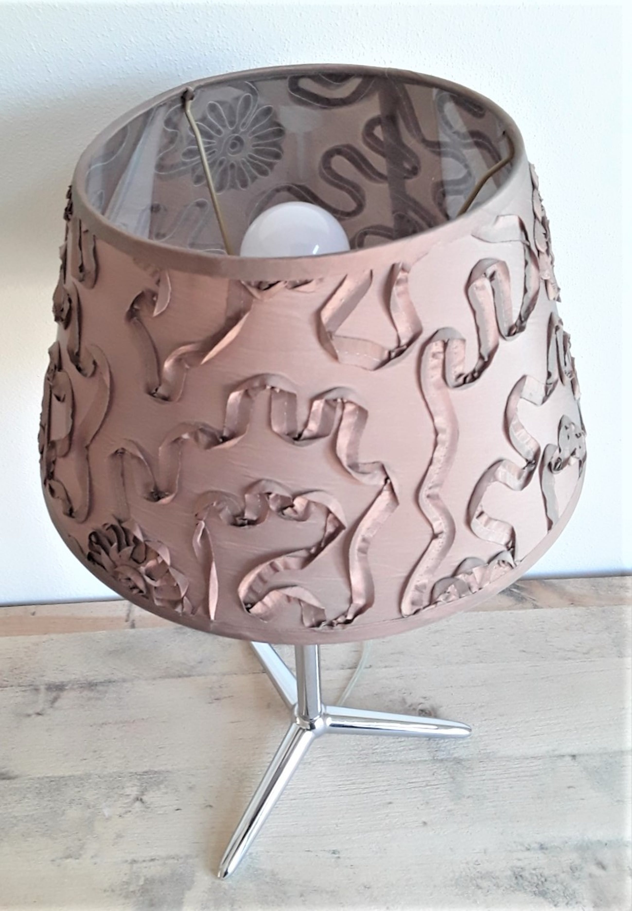 Benaming "Free flows" heeft te maken met vrije loop van artistieke decoratie op de kap, die over de gehele kap slingert. Lamp is getest en werkend en levering is incl. bijpassende lampje (nauwelijks gebruikt met minimale gebruikssporen en tekenen van ouderdom) De foto's geven een goed beeld van de lamp en zijn een onderdeel van de beschrijving.