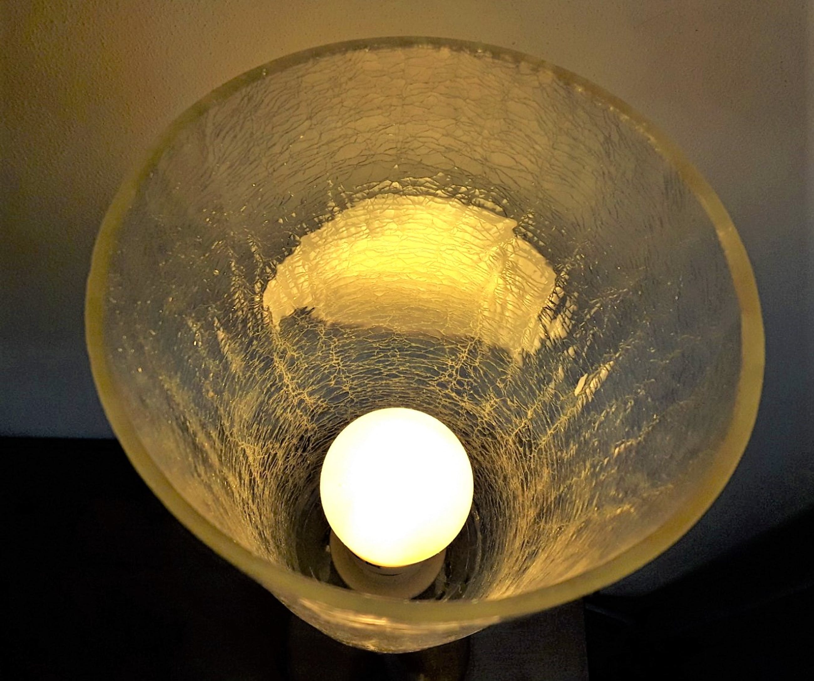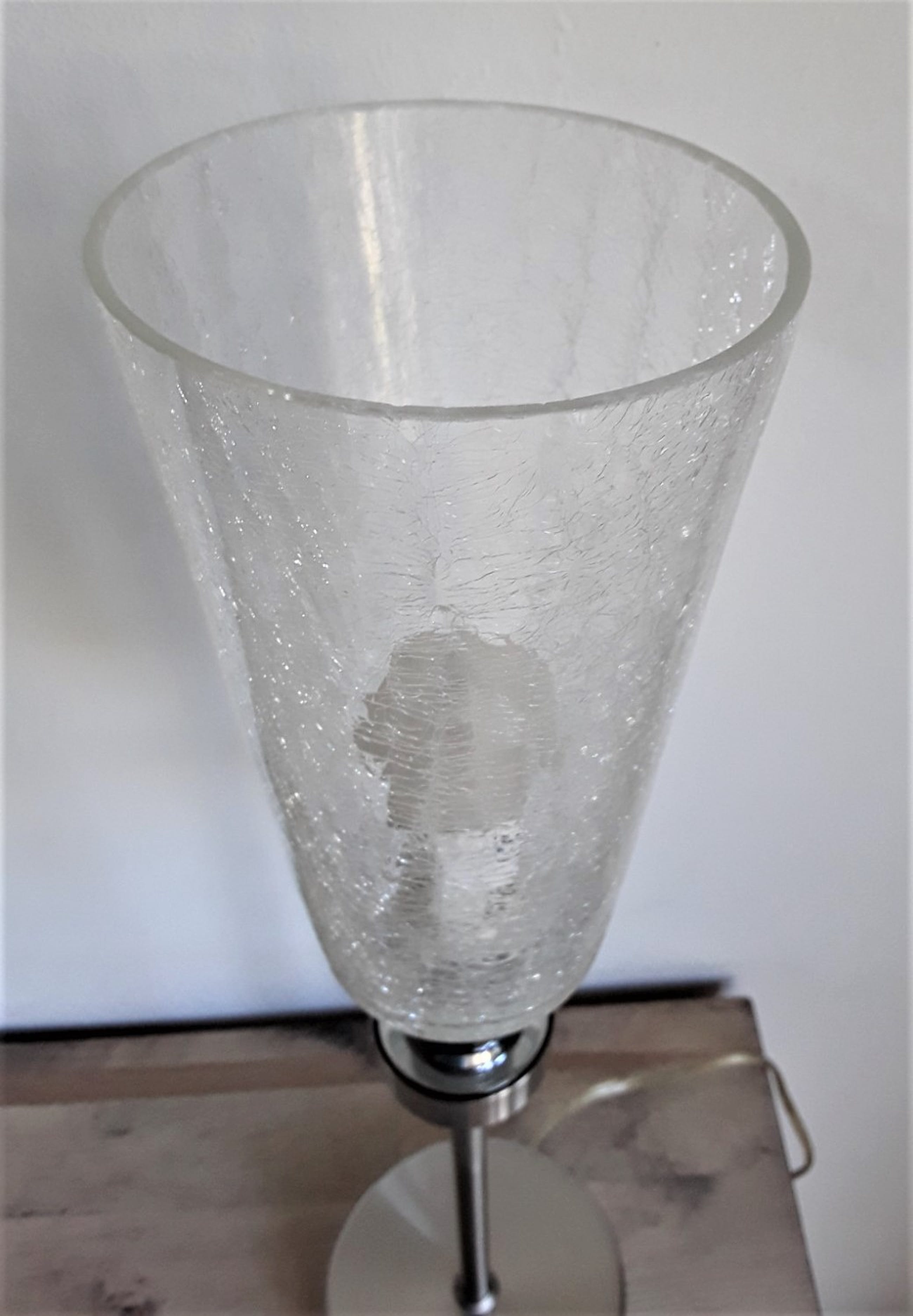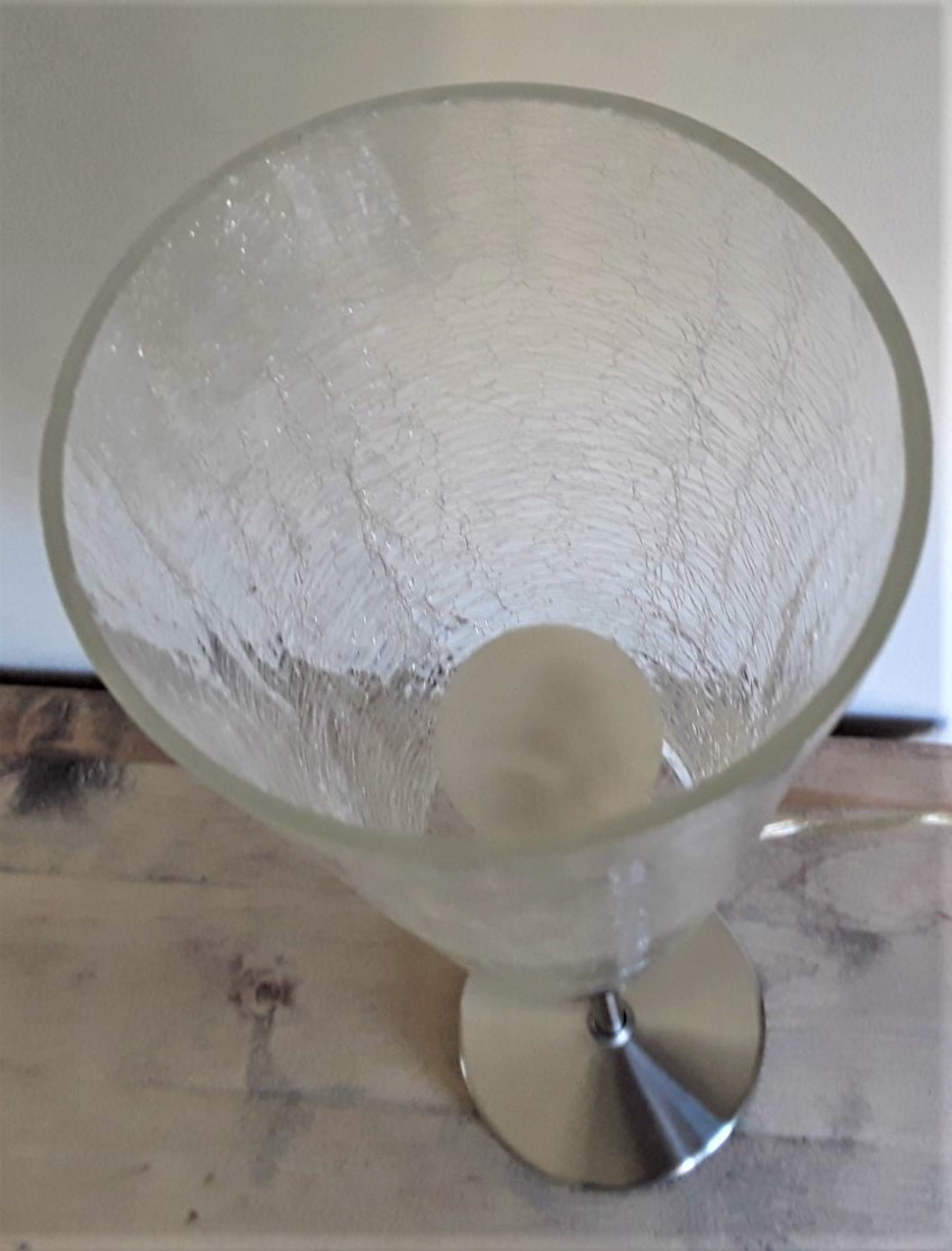 Materiaal: Verchroomd staal i.c.m. de bewerkte "creaked" glazen kap.
