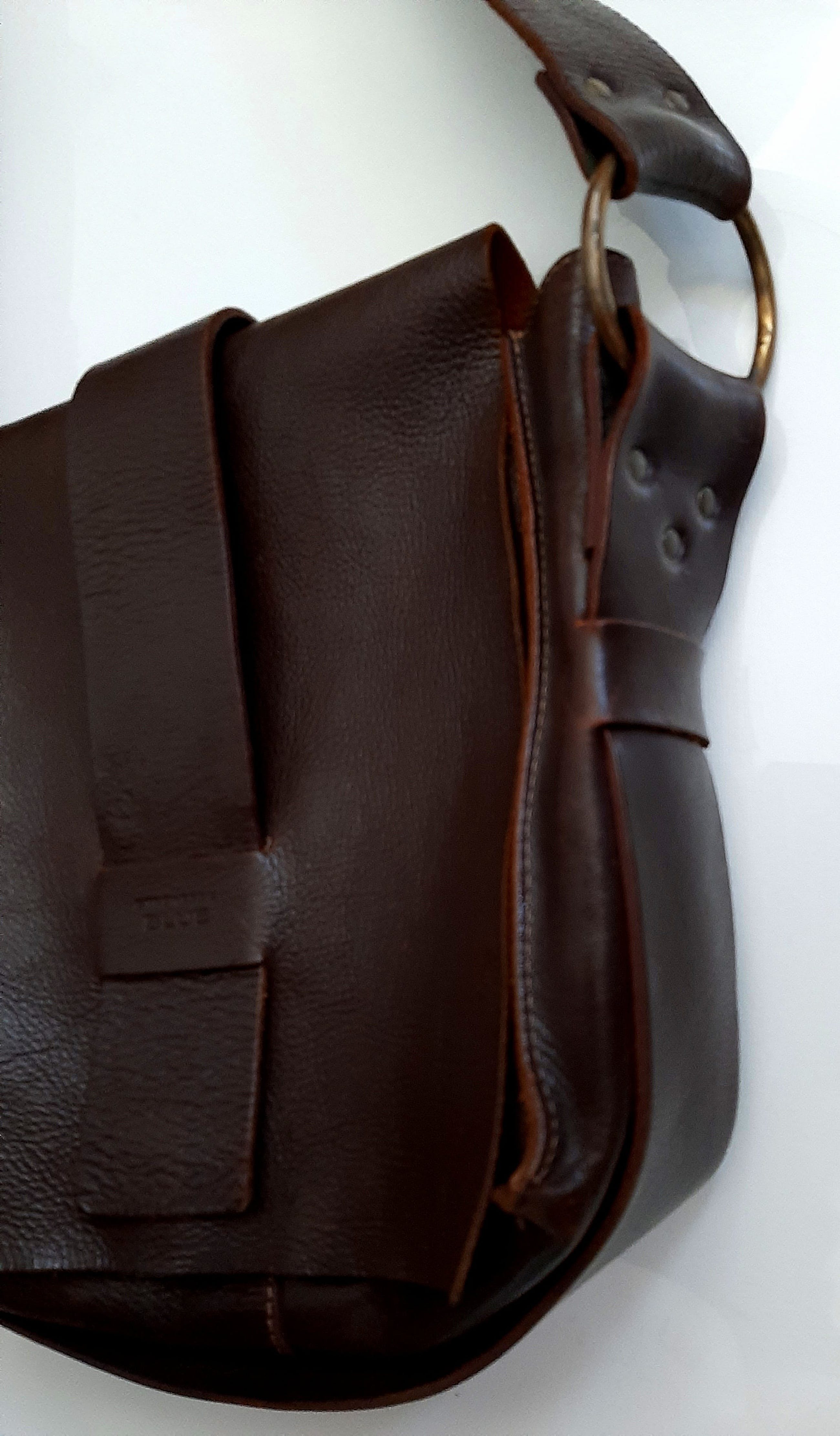 Modieuze en praktische casual tas. Echt leder tas, zacht en dicht leer, gelooid. Rim 122 cm lang 5 cm breed. Made in Italy. Perfecte vintage conditie.