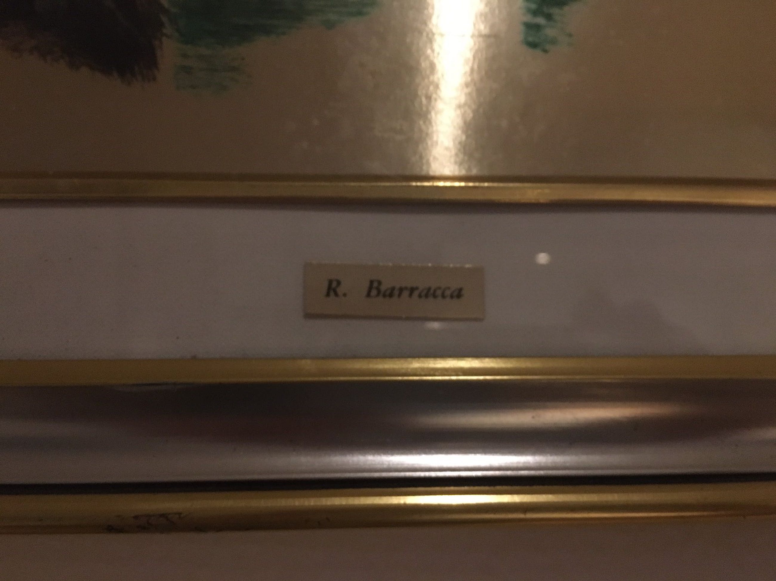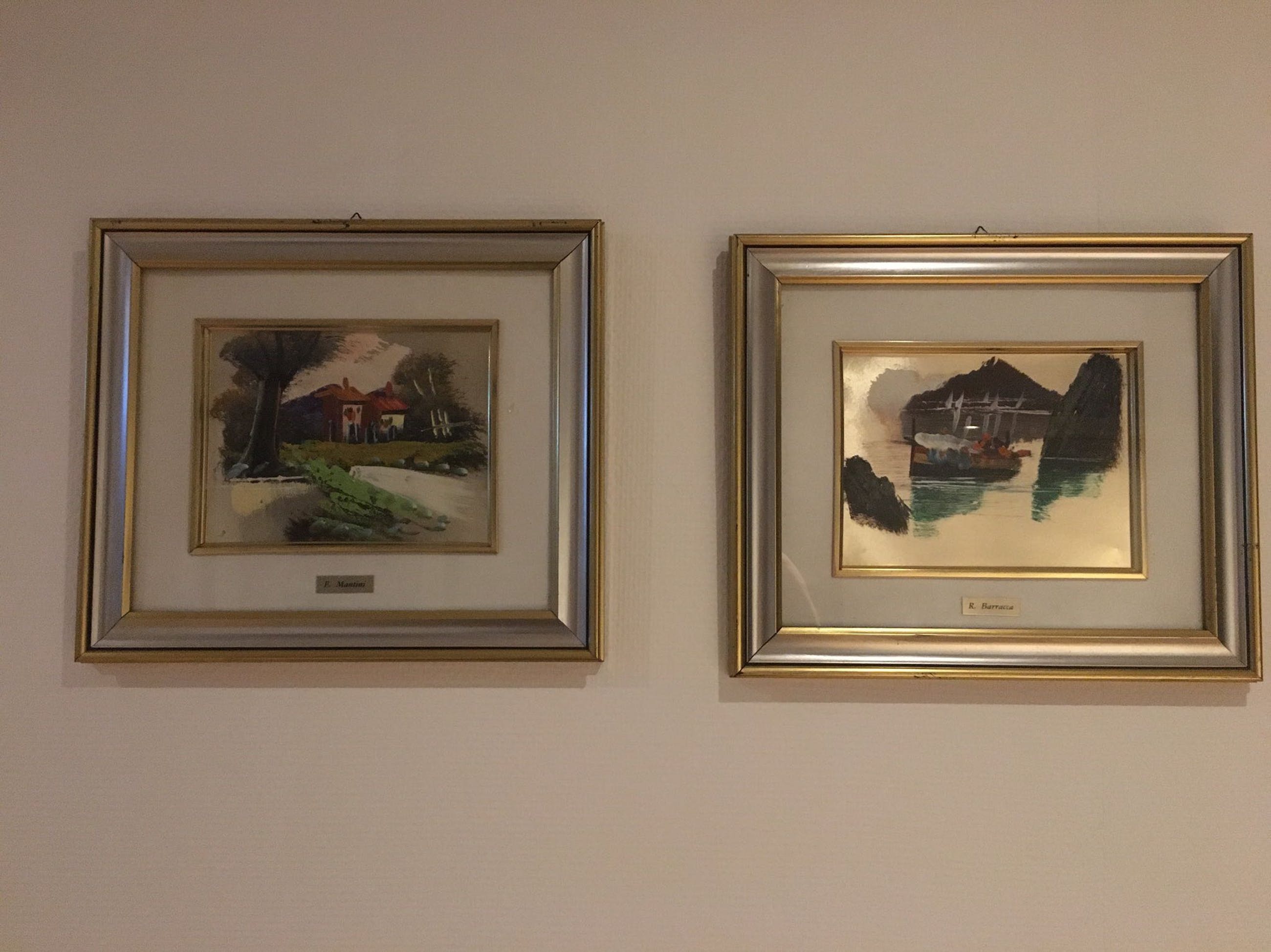 Snel en impressionistisch geschetste landschapjes. Keurig ingelijst. Eentje met een naamplaatje R. Barraca en het andere met F. Mantini. Deze laatste is te googelen. Beide werkjes hebben hetzelfde formaat en hoewel er verschillende namen onder staan passen ze perfect bij elkaar.