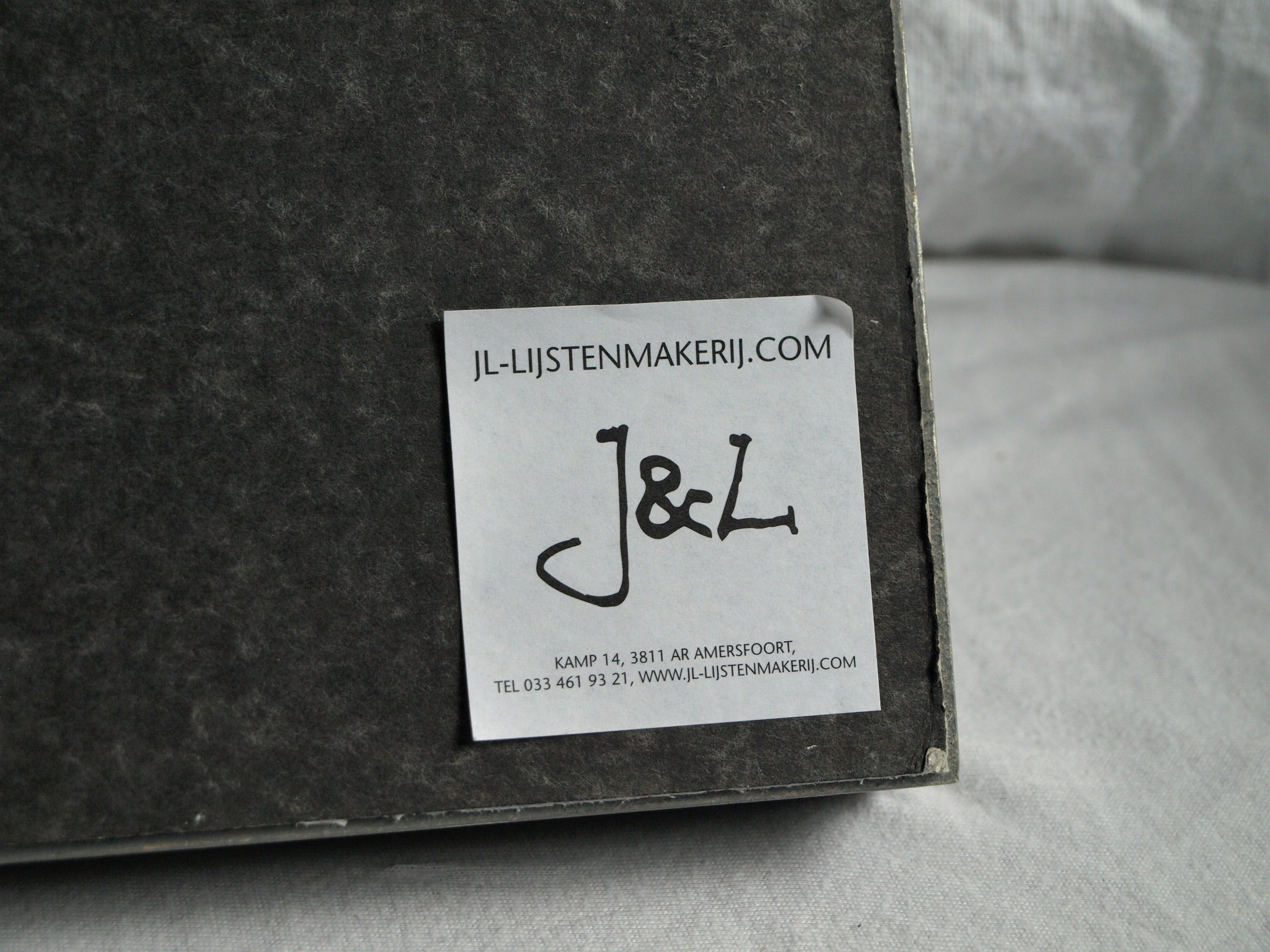 | In goede staat. Het verticale streepje linksboven in het werk is een oneffenheid in de geschilderde achtergrond. De lijst heeft slijtplekjes en heeft linksboven een plekje waar een chipje hout eraf is. Zie ook de foto’s voor een eigen indruk. Kan zo aan de muur. | |