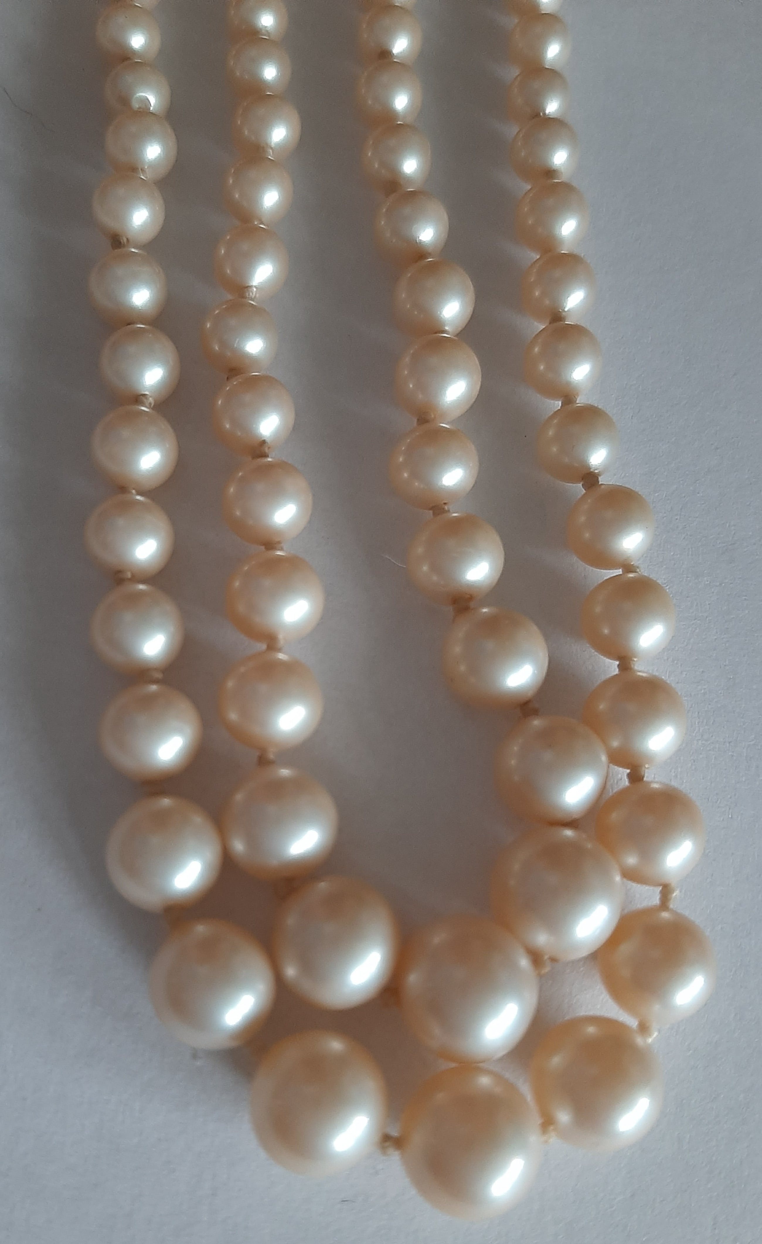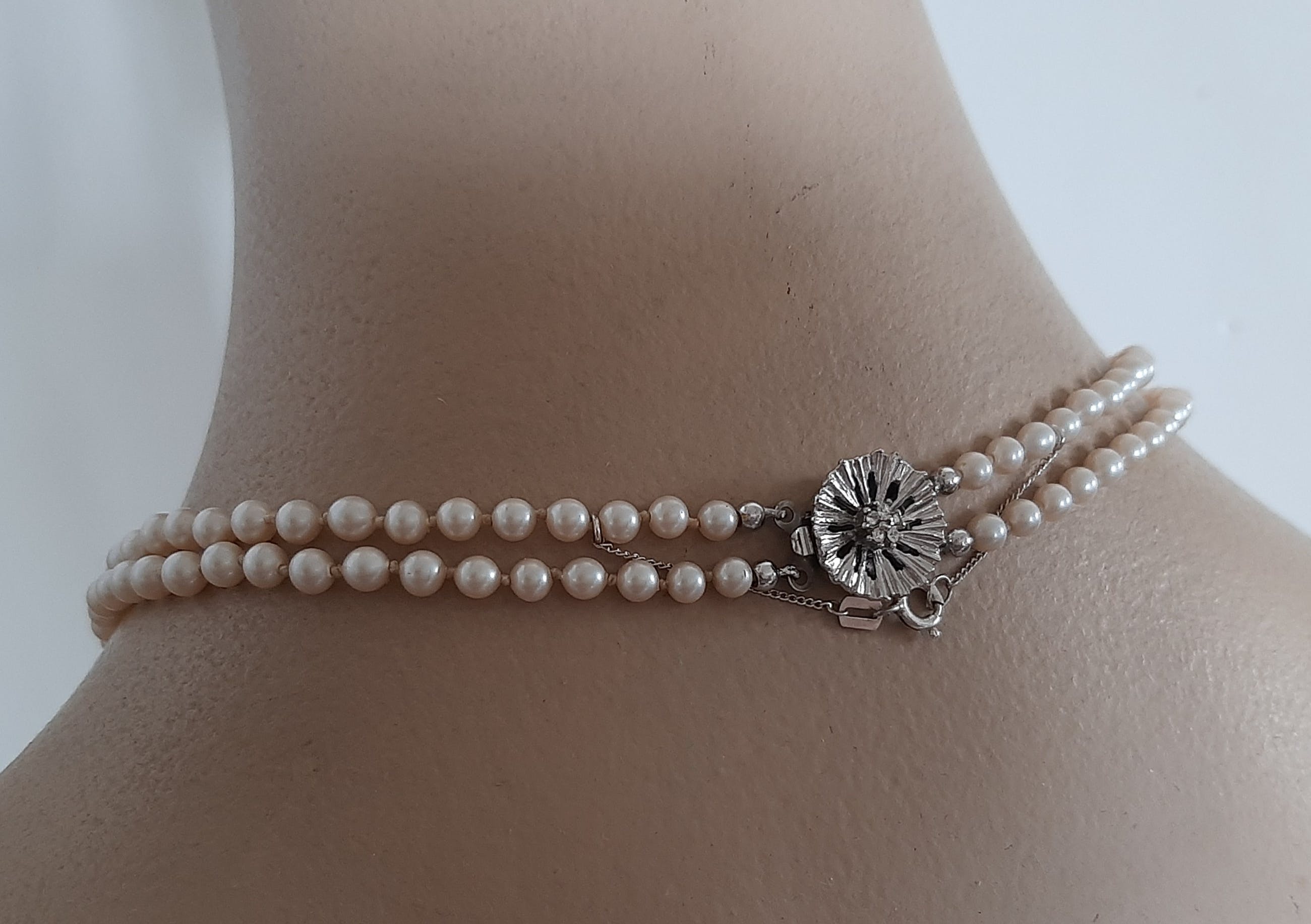 Jaren 1930-1960. Prachtige vintage parel collier. Gemerkt op kleine slot 835. Groot slot is versierd met zirkonia's. Erg mooi zomerse stijl.