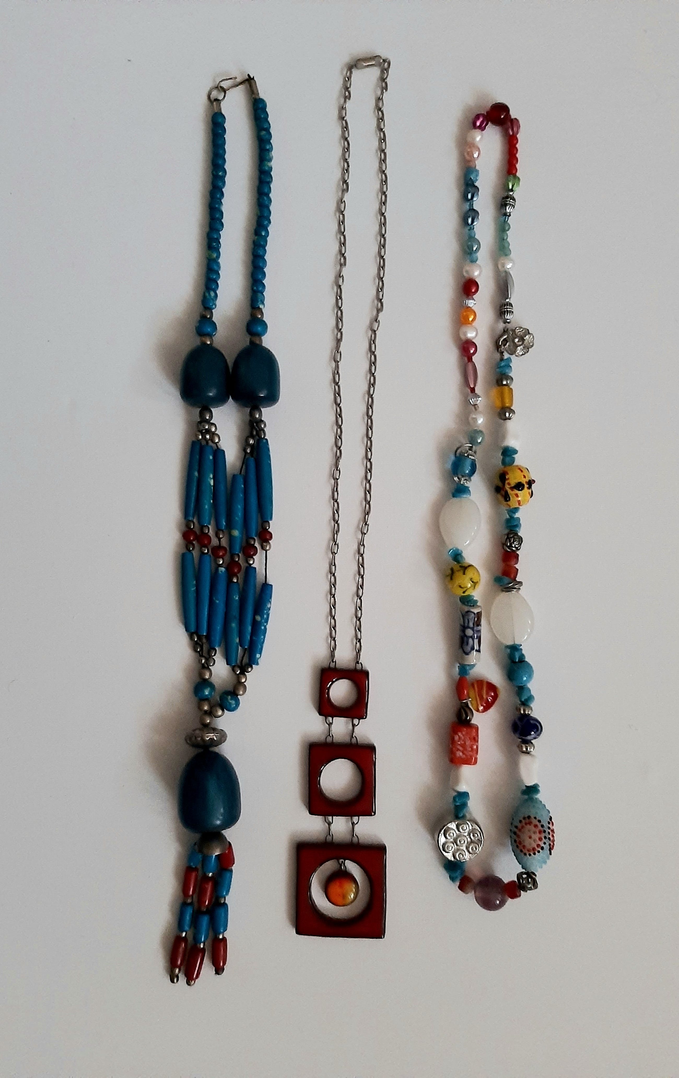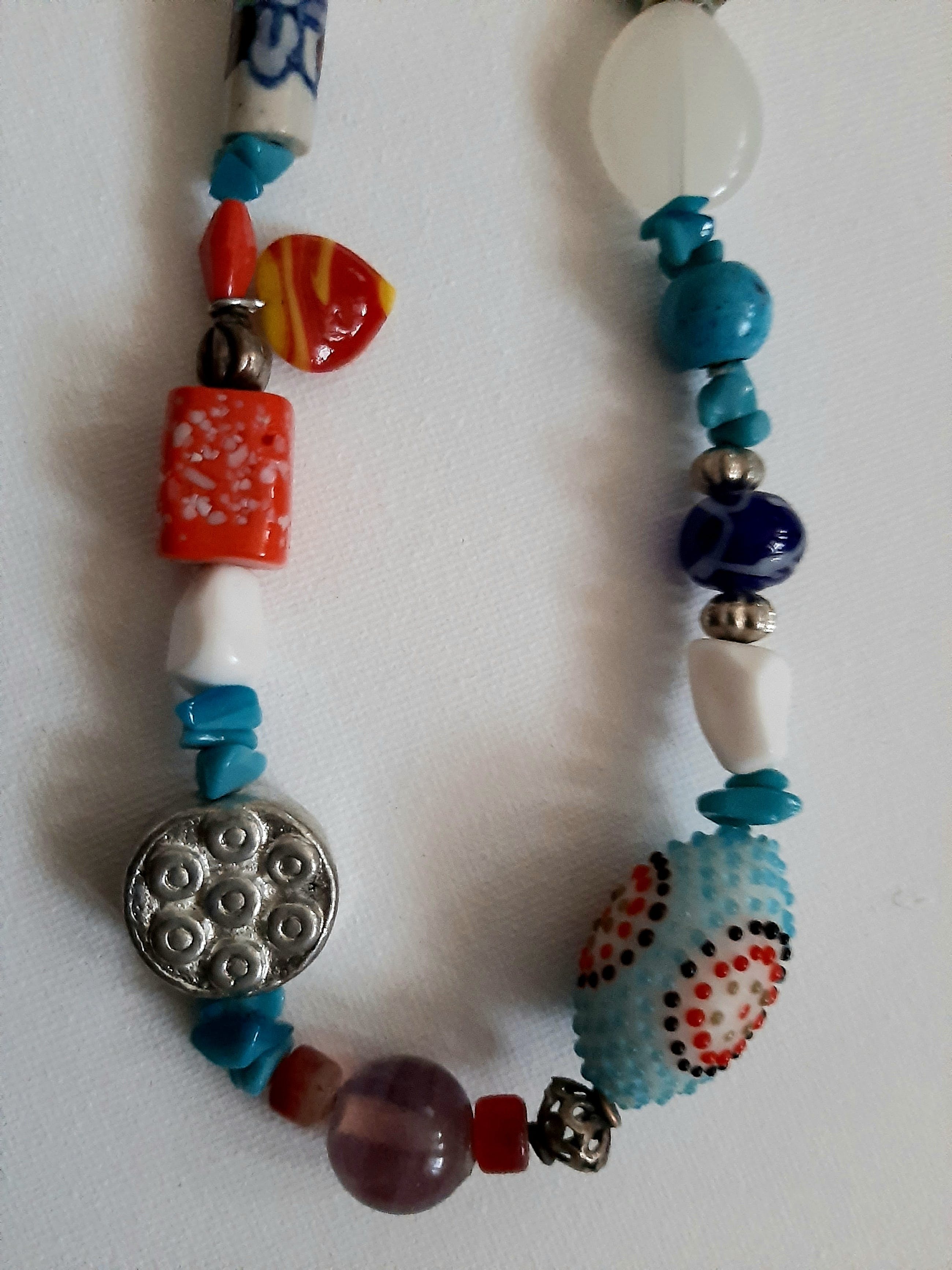 Diverse sieraden. 1. Kunst stenen,vintage jaren 1970. 2.UNIEK keramiek sieraden uit U.S.S.R. gemaakt van schilderes. 3.Sieraden uit Zuid Afrika, gemaakt van kleurige glas. Prima staat.