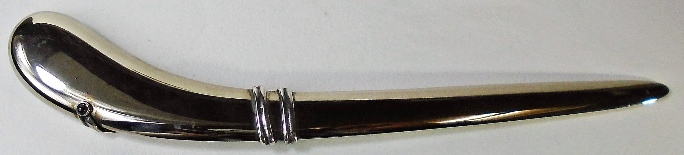 Design Briefopener zilver met Granaat. Ontwerp Amir Poran