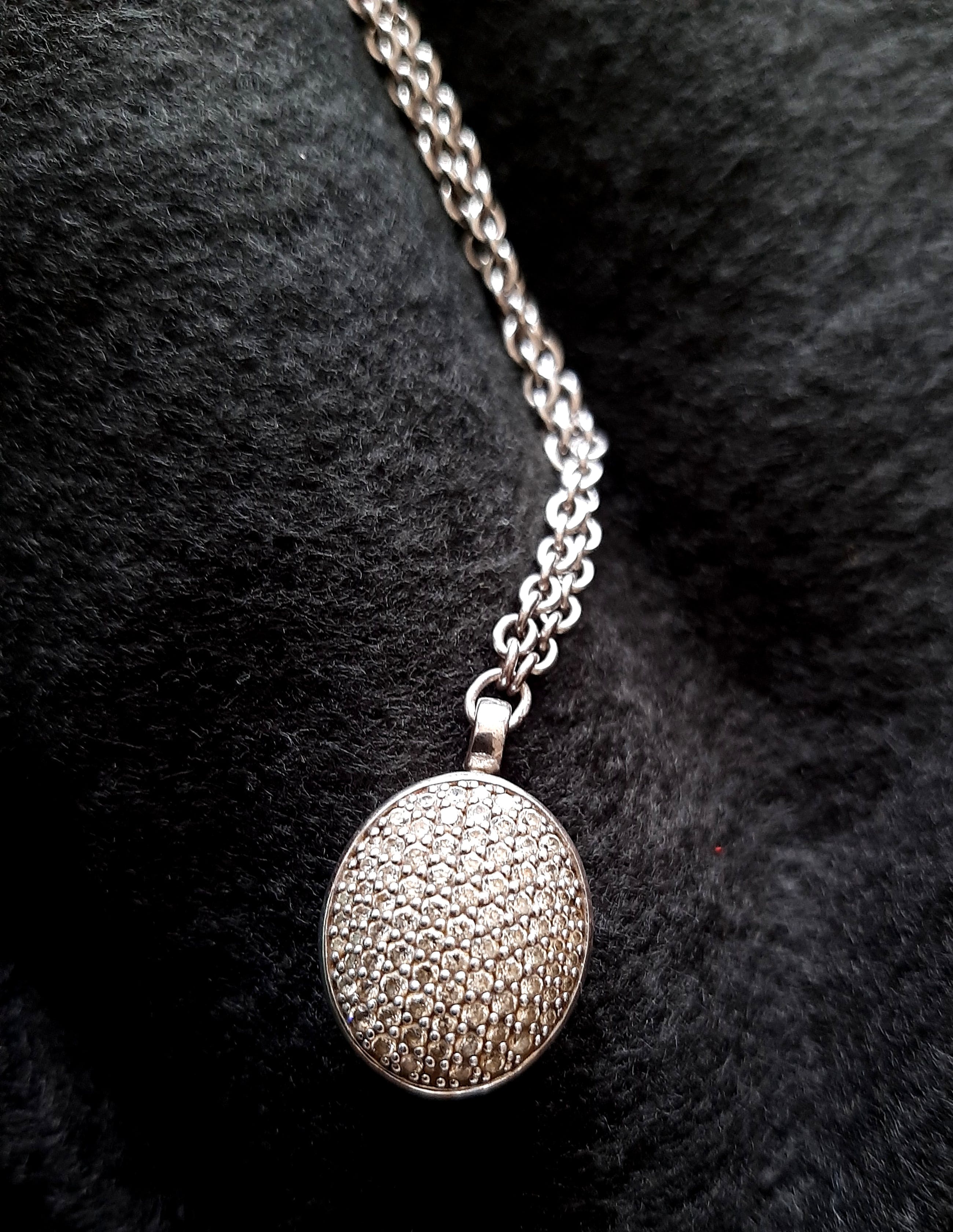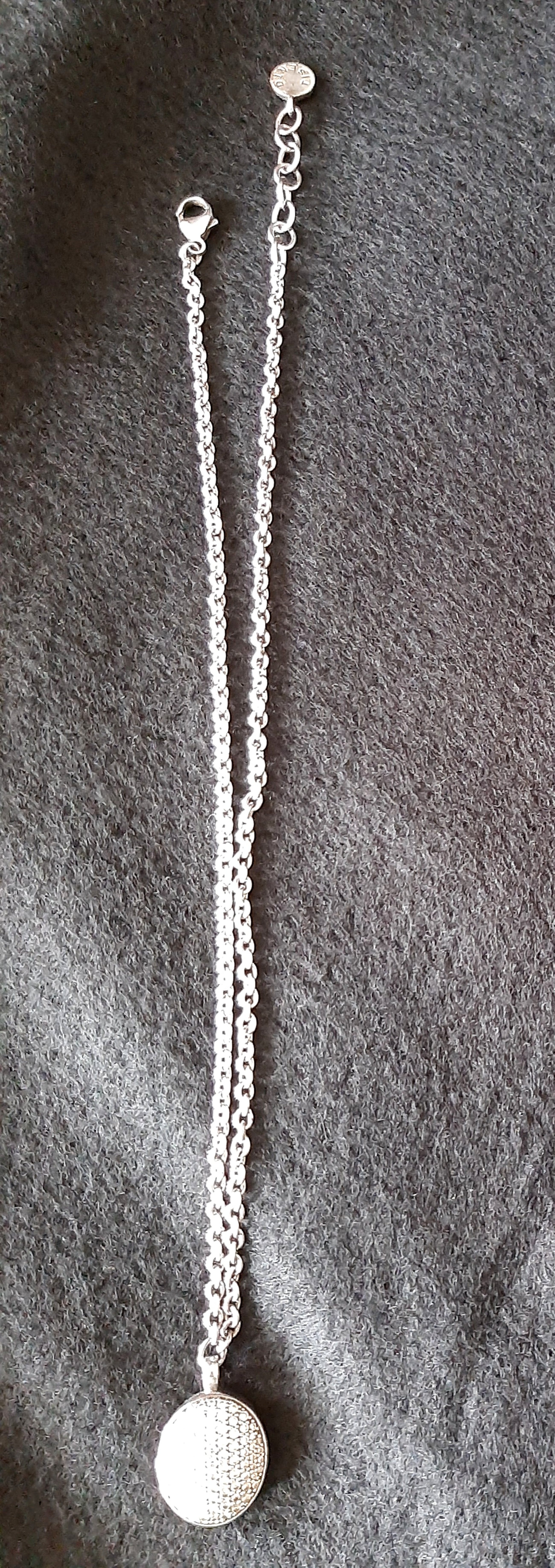 Ketting 48 cm lang en hanger 2 x1,8 cm in perfecte staat. Hanger met witte topaas kristallen Erg mooi zomerse stijl.