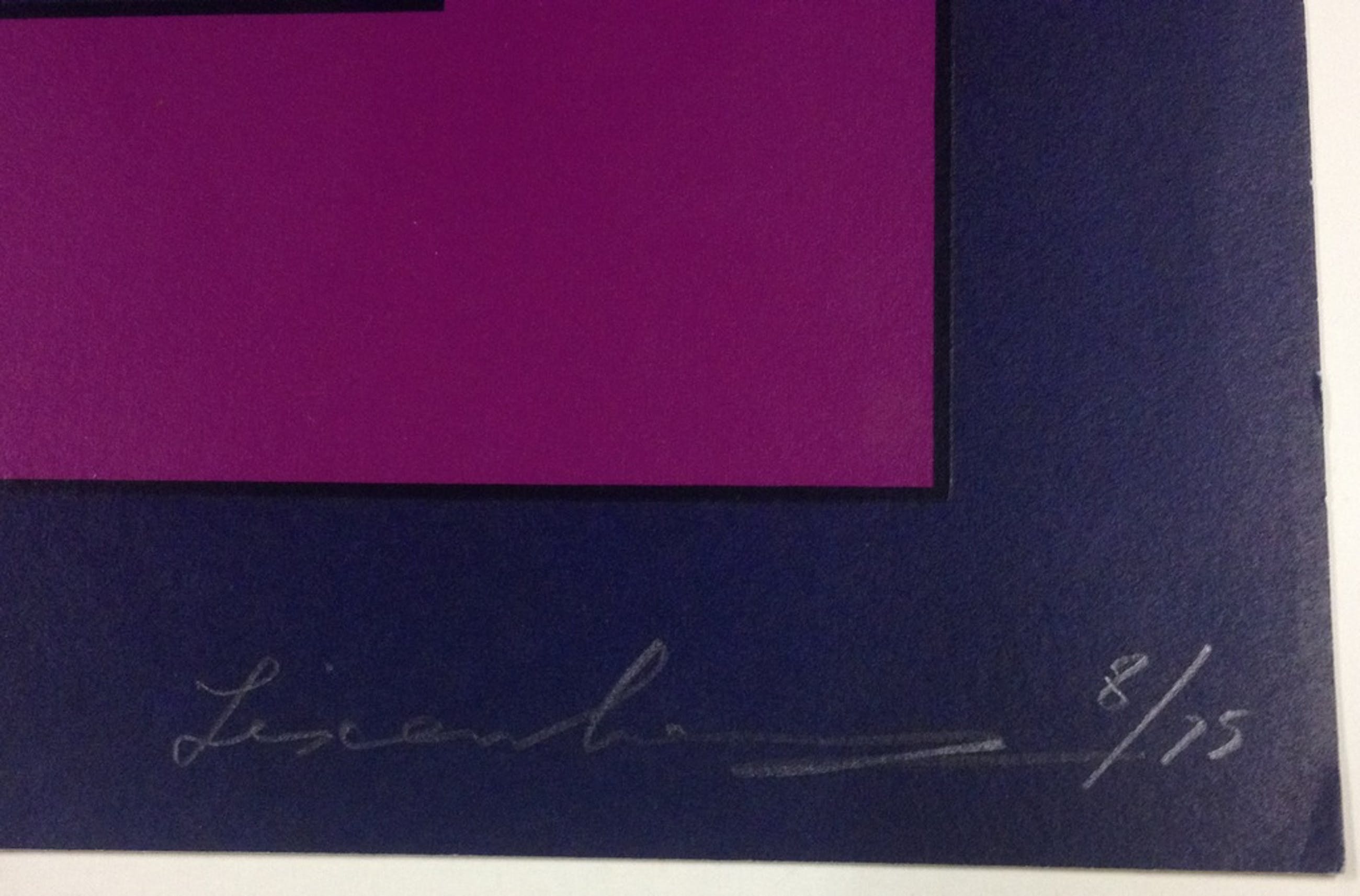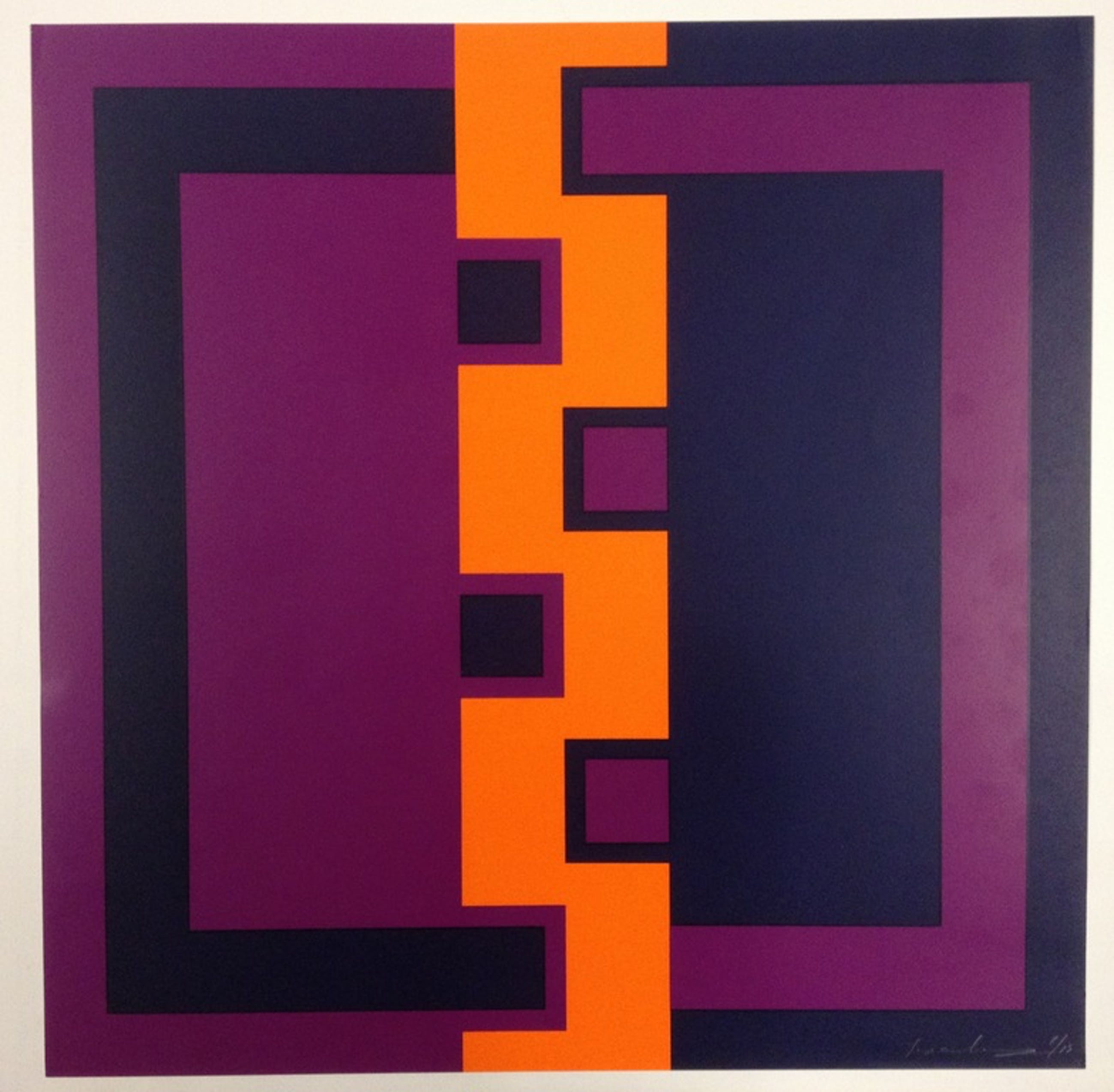 Mooie, strakke zeefdruk van Lixenberg, 50x50 cm2, handgesigneerd, -gedateerd '71 en -genummerd 8/75.