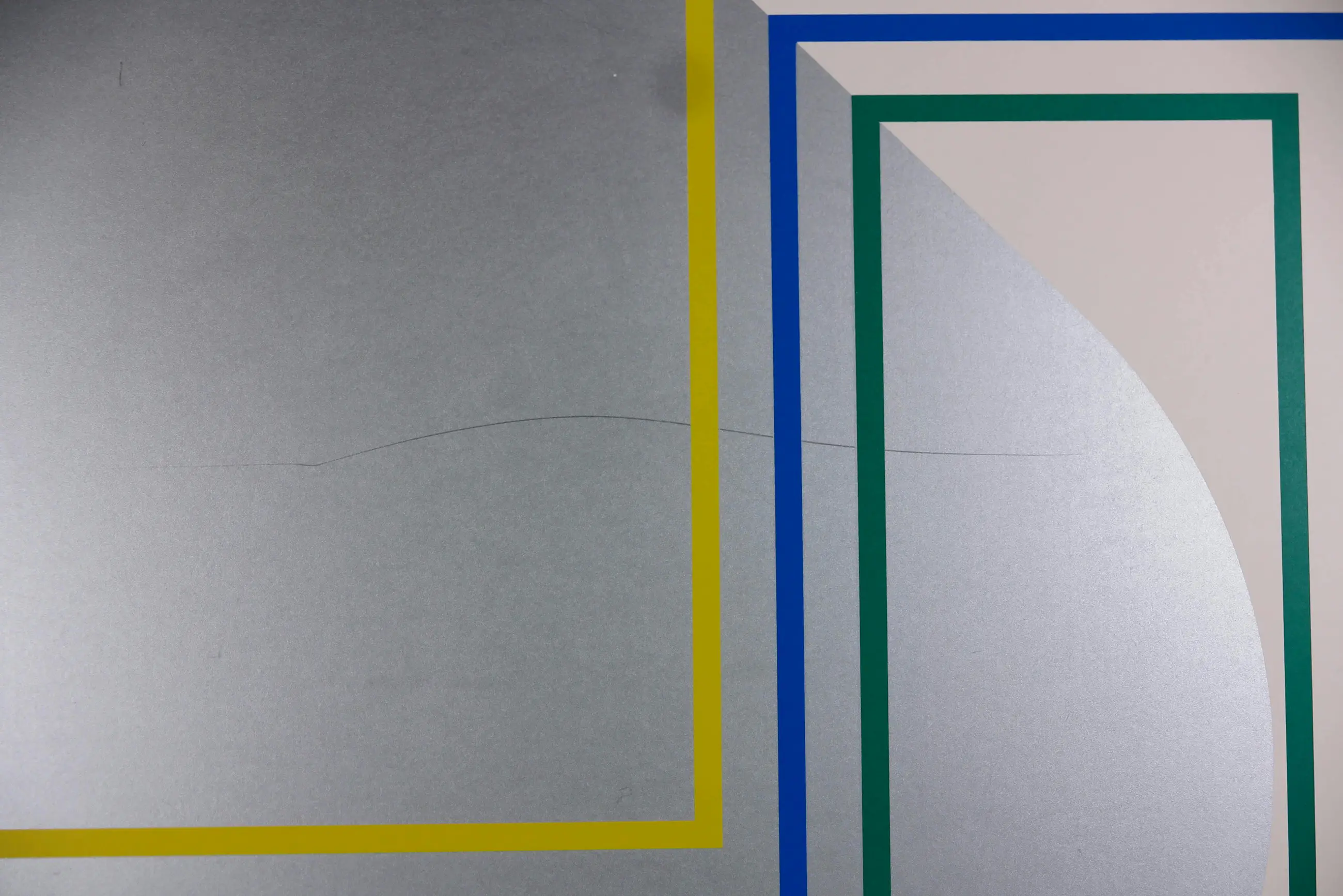 | Aantal veegjes / imperfecties op het oppervlak (zie afbeeldingen) Let op: een van de werken heeft geen glasplaat. | |