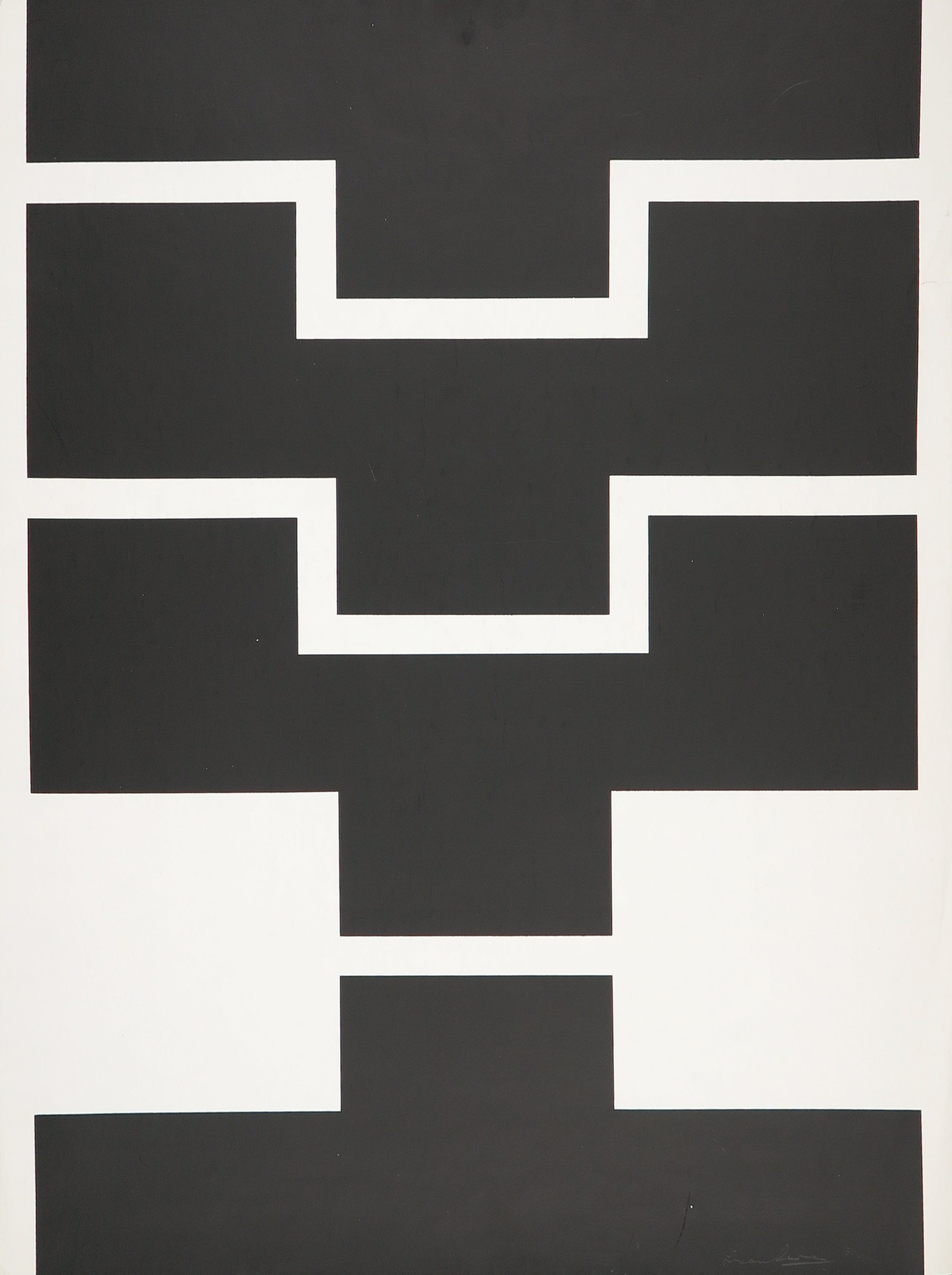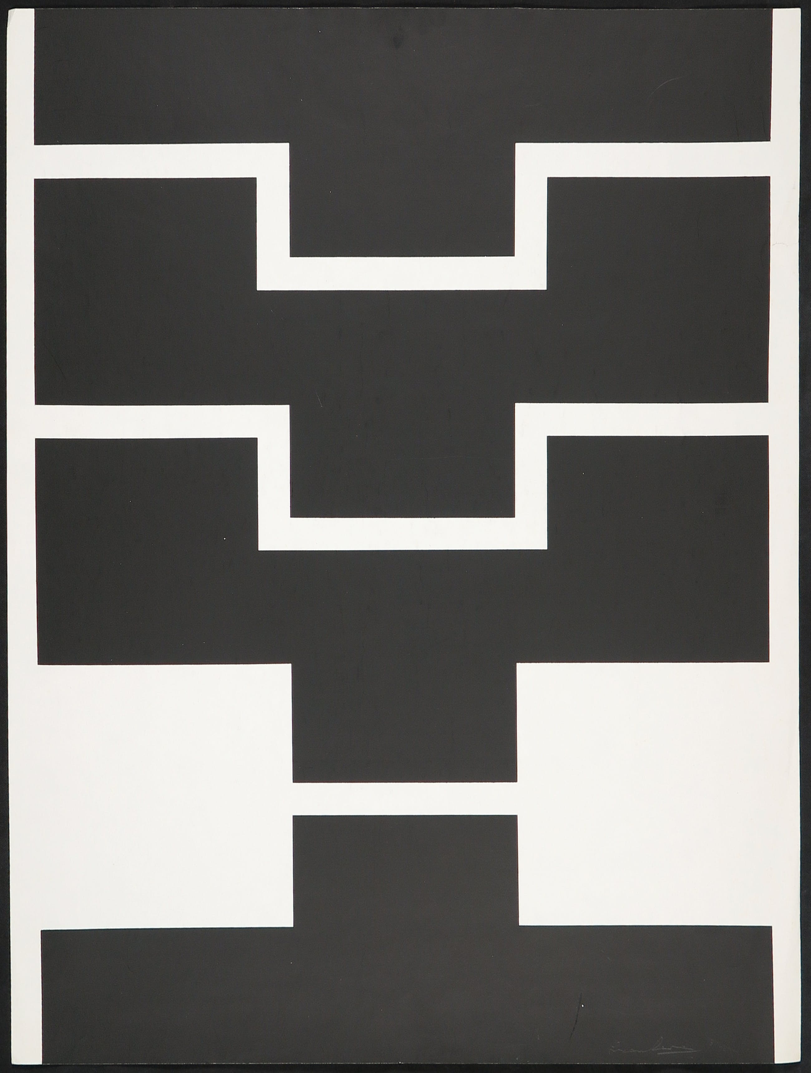 | Redelijke staat. Veel oppervlakkige veegjes en wat vlekjes, ook een paar witte plekjes in de zwarte velden. Het wit is een beetje vergeeld/verkleurd, met name langs de zwarte velden. Langs de rand rechtsboven ook een scheurtje in de marge, tot op het beeld. Deze is aan de achterzijde hersteld met tape. | |||||||||||