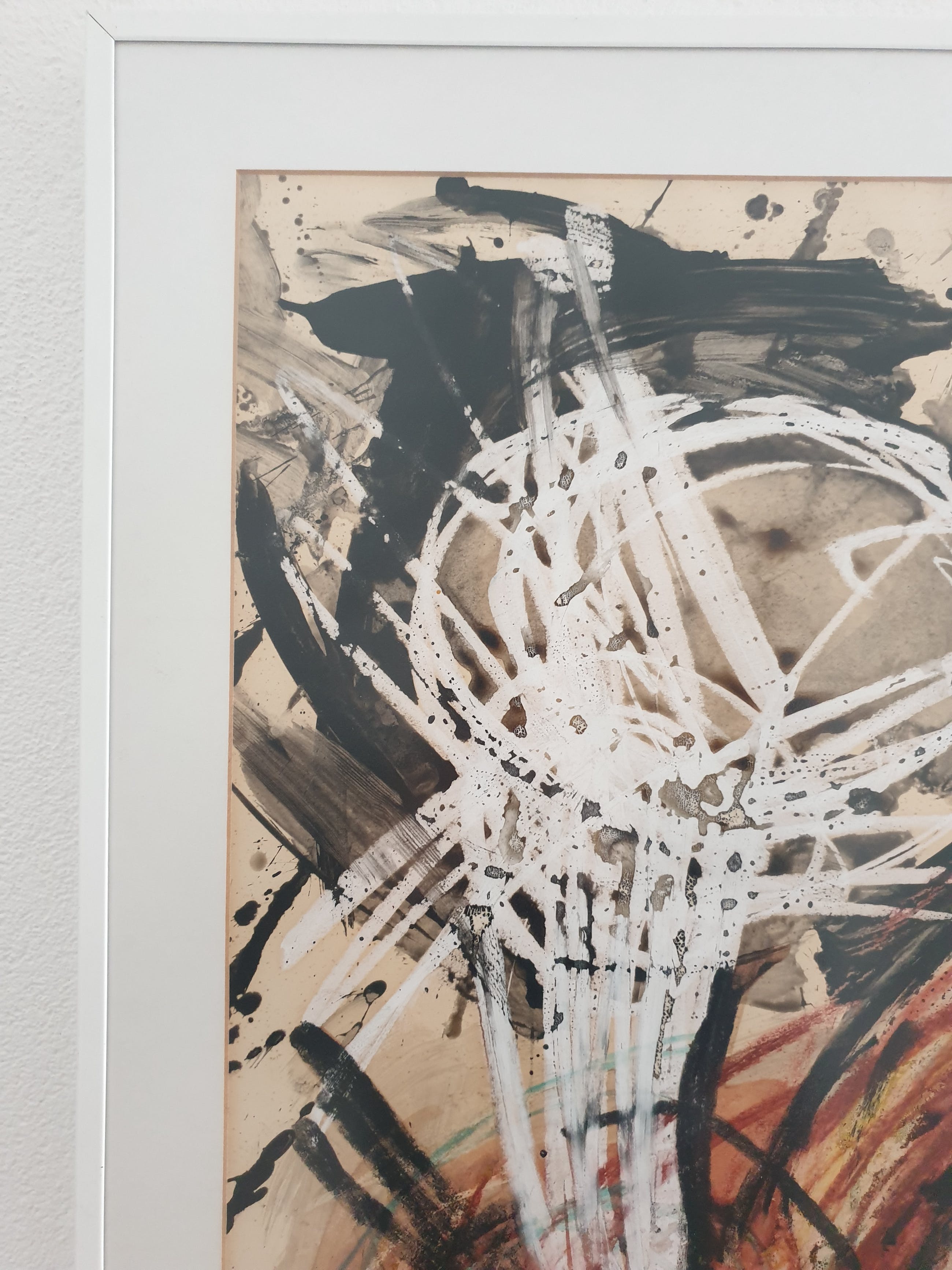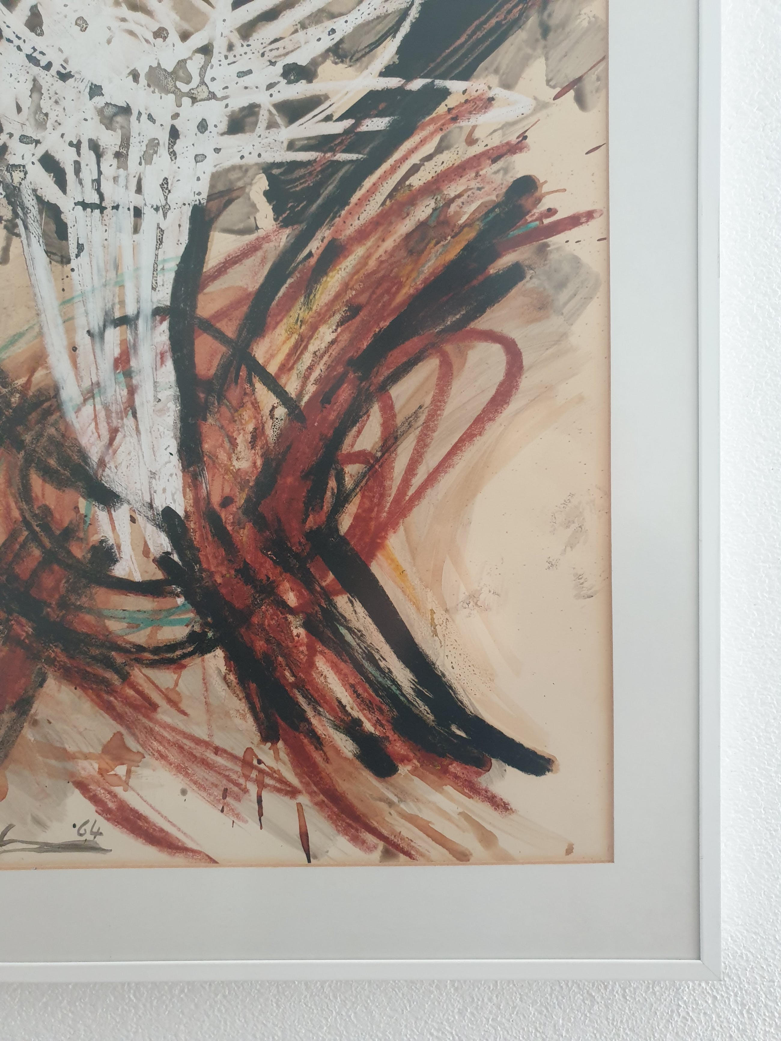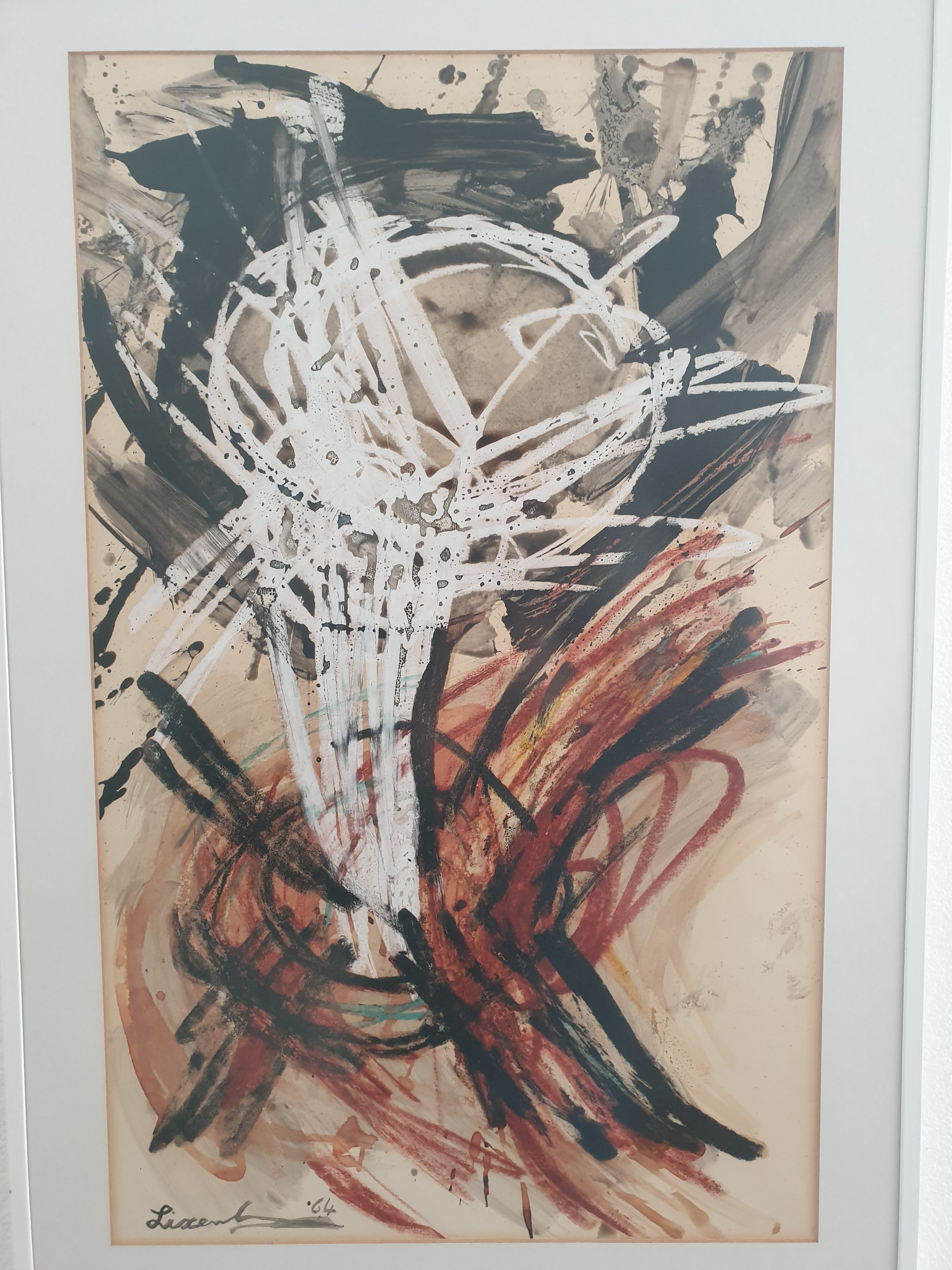 Cyril Lixenberg - Gemengde techniek - Aquarel/krijt. Gesigneerd l/o met 'Lixenberg '64'. Erg mooi werk uit de beginperiode van de kunstenaar. Ingelijst met ontspiegeld glas. De lijst vertoont enkele minimale gebruikssporen, het werk is in zeer goede staat. Afkomstig uit de collectie van het FNV.