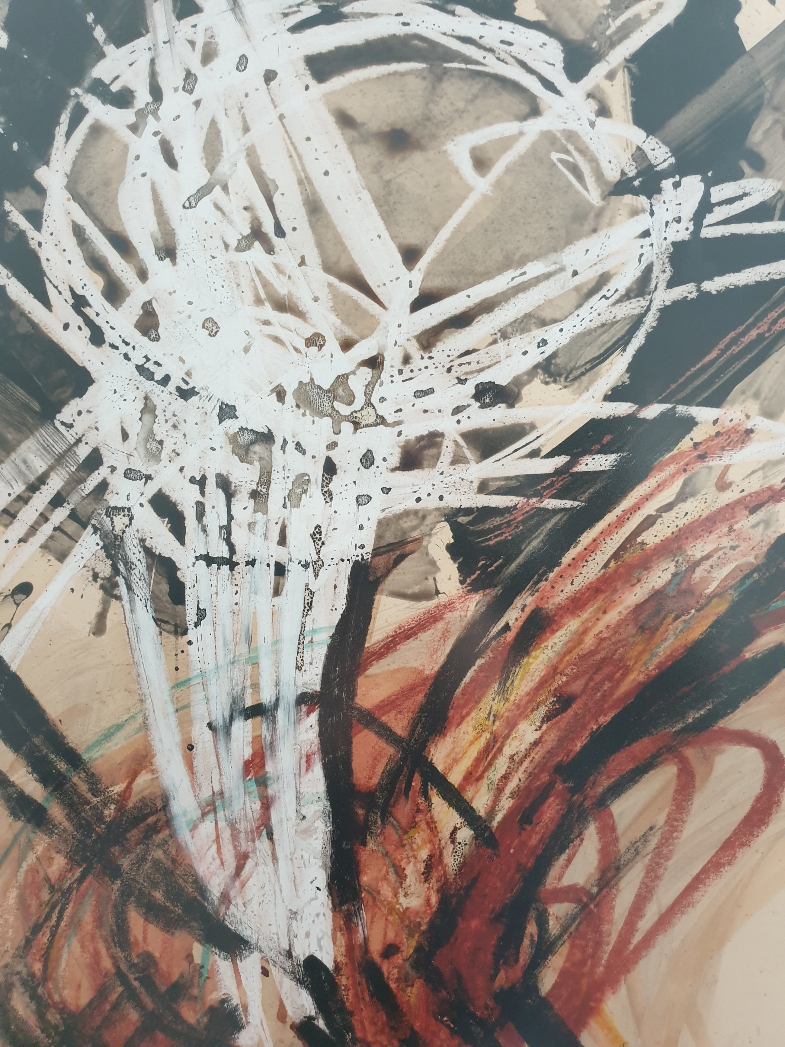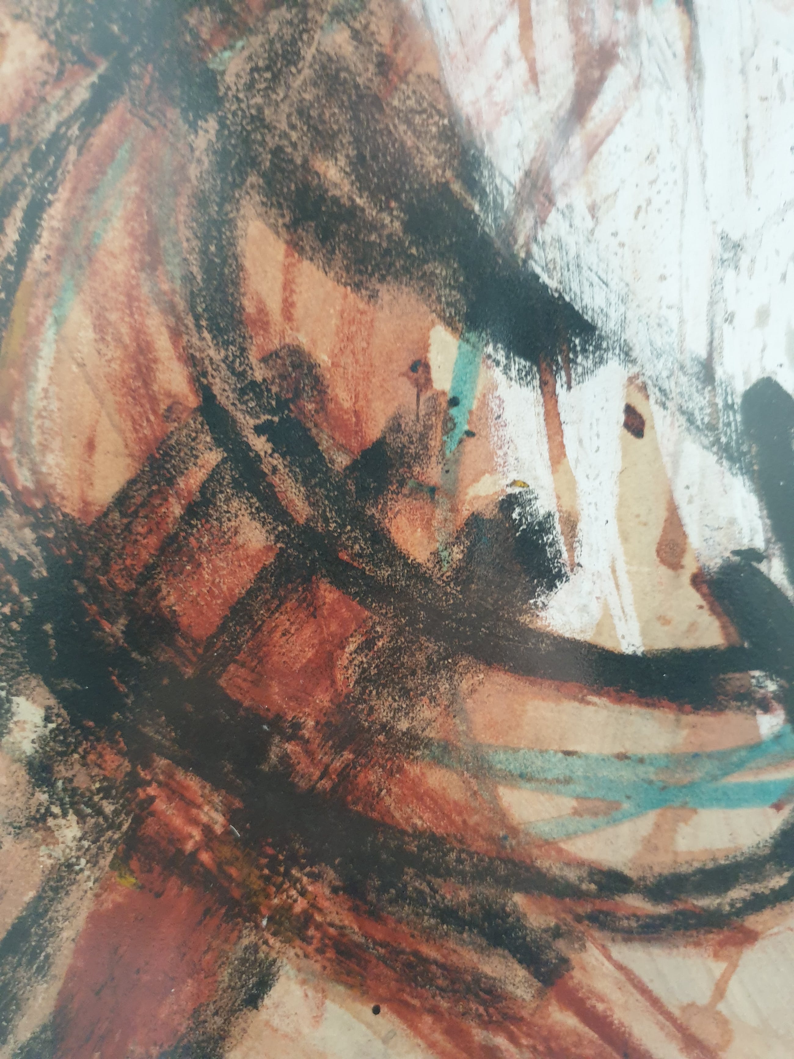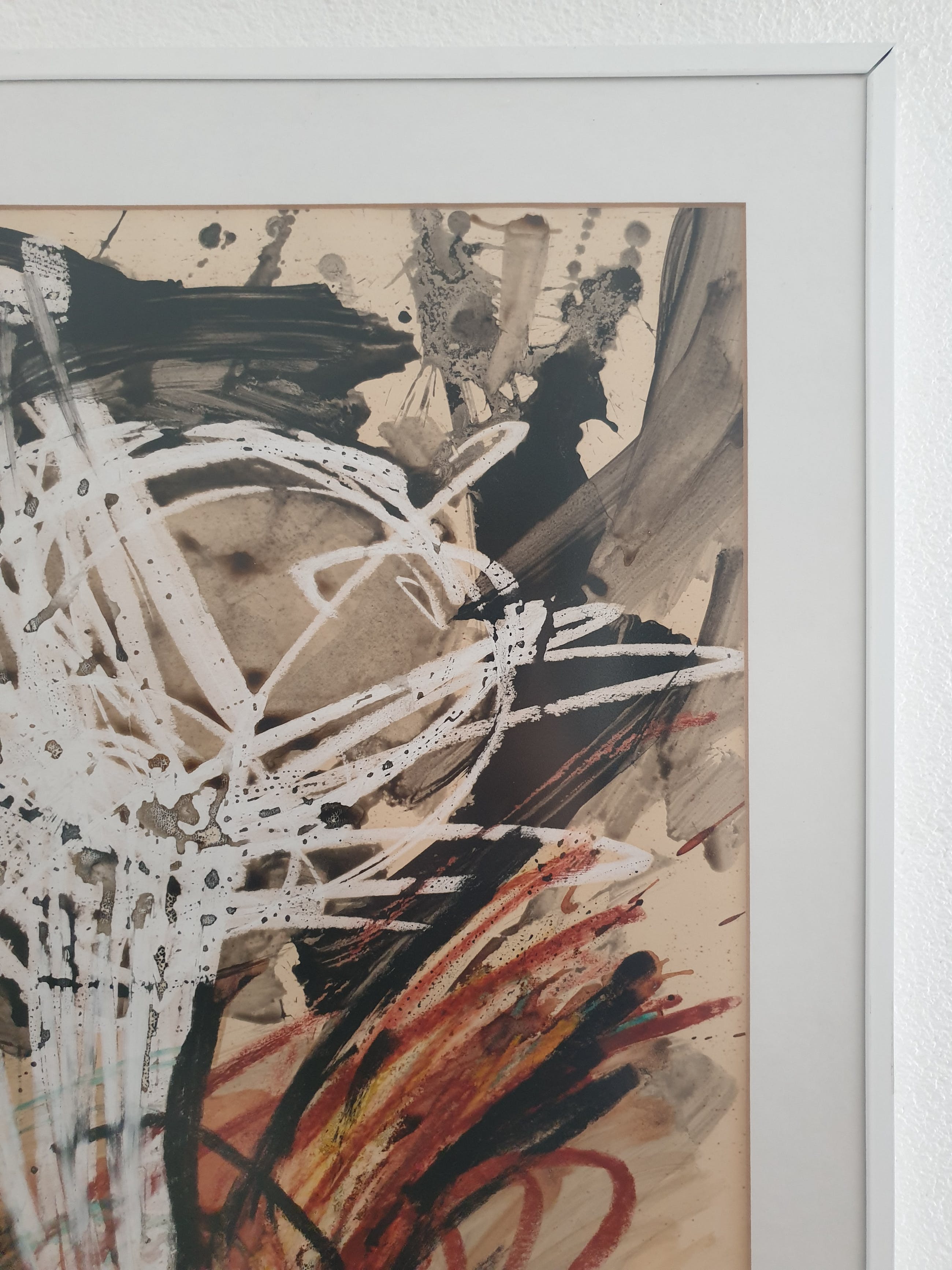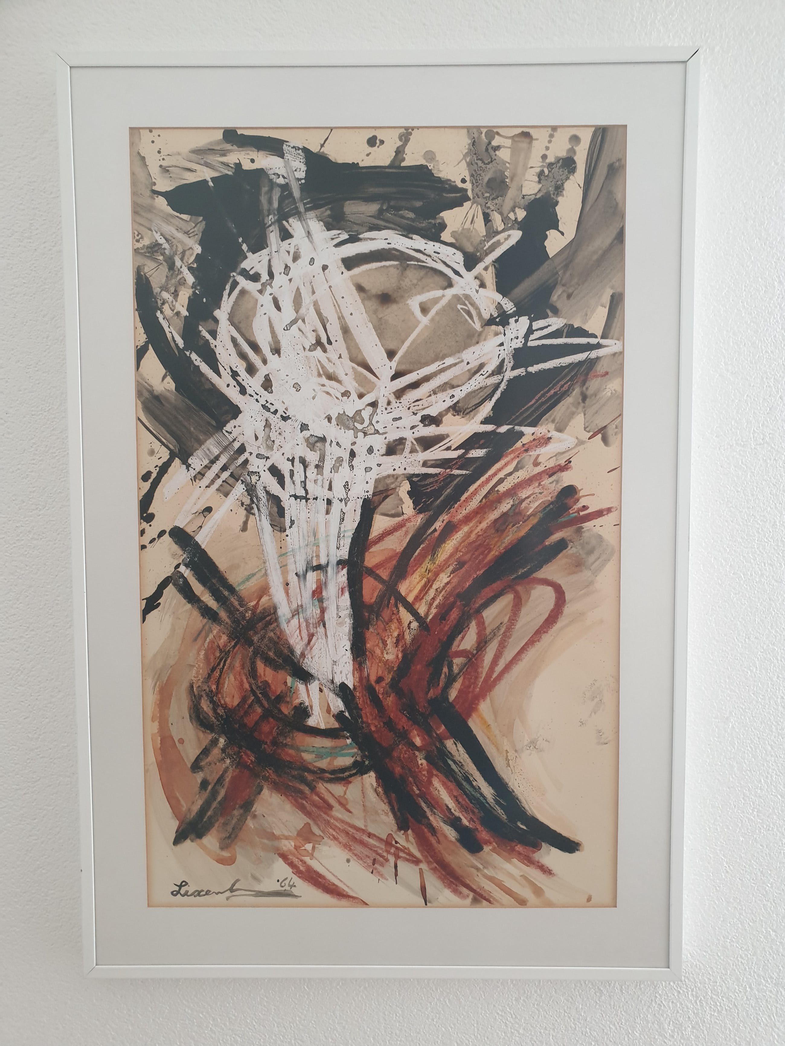 Cyril Lixenberg - Gemengde techniek - Aquarel/krijt. Gesigneerd l/o met 'Lixenberg '64'. Erg mooi werk uit de beginperiode van de kunstenaar. Ingelijst met ontspiegeld glas. De lijst vertoont enkele minimale gebruikssporen, het werk is in zeer goede staat. Afkomstig uit de collectie van het FNV.