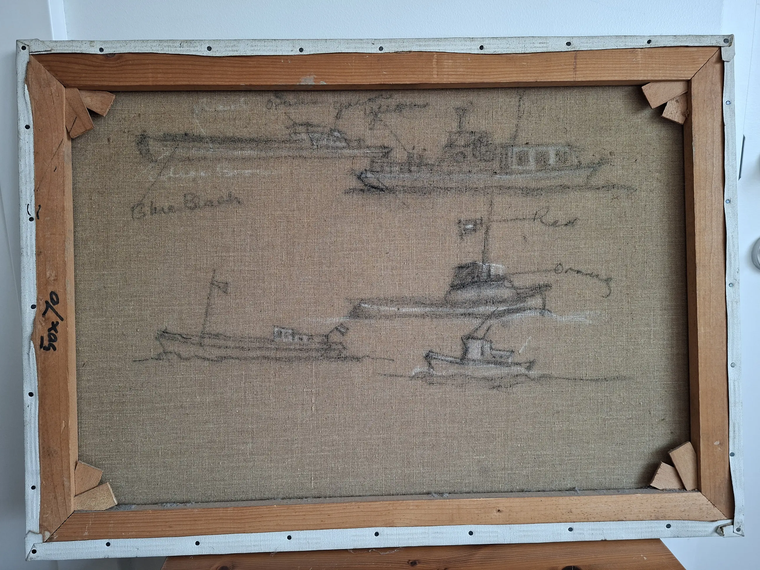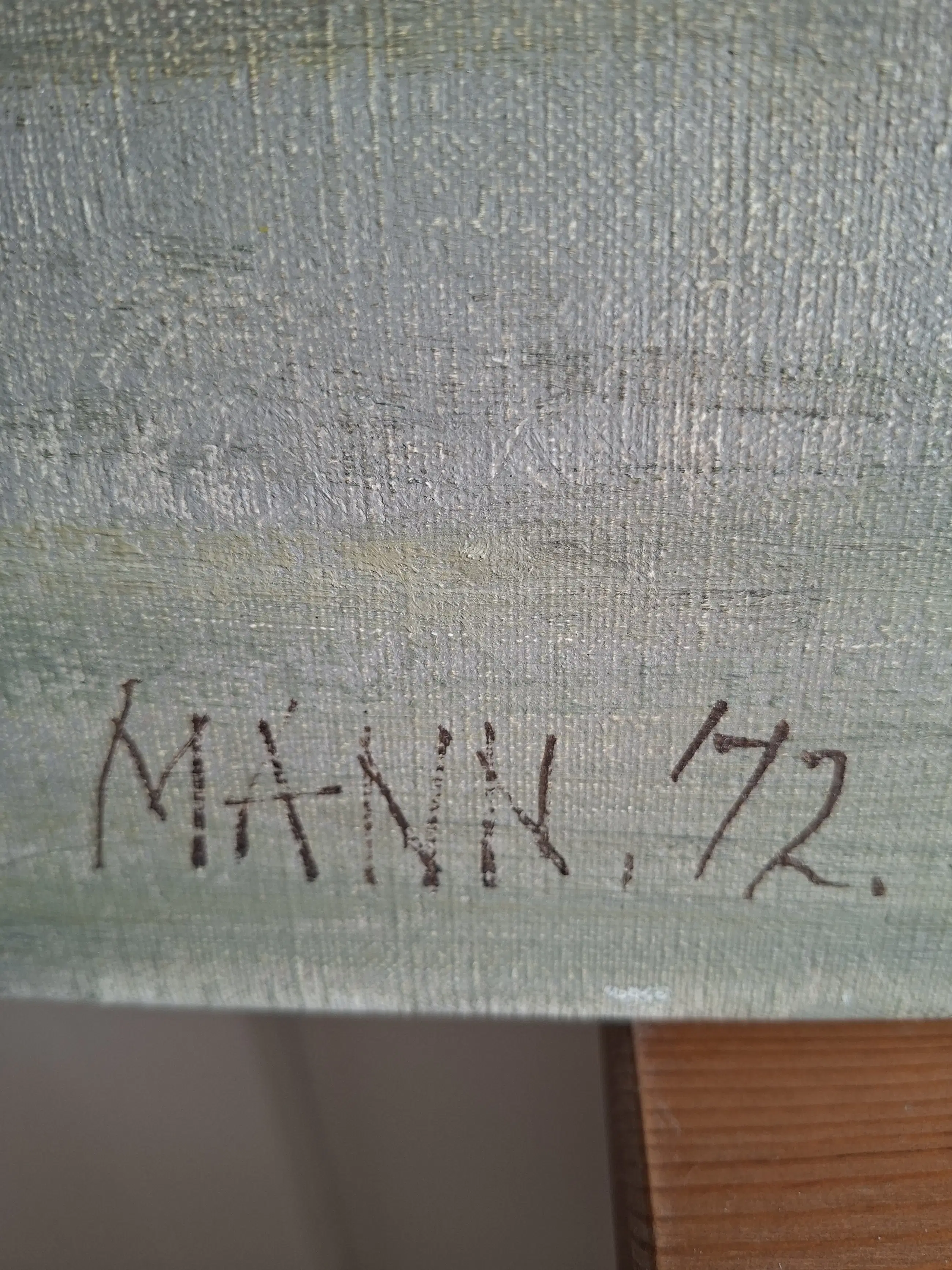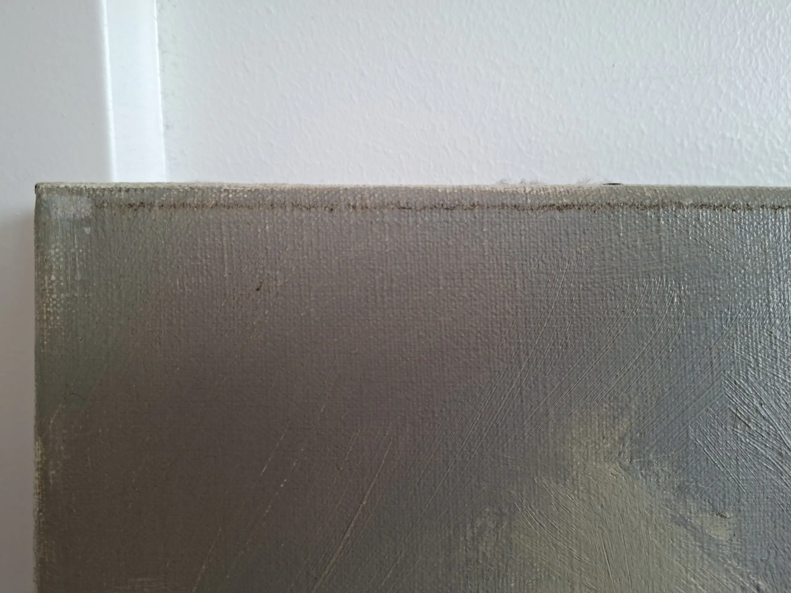 Helaas is het schilderij aan de bovenste 5 mm beschadigd door de lijst waar het in zat