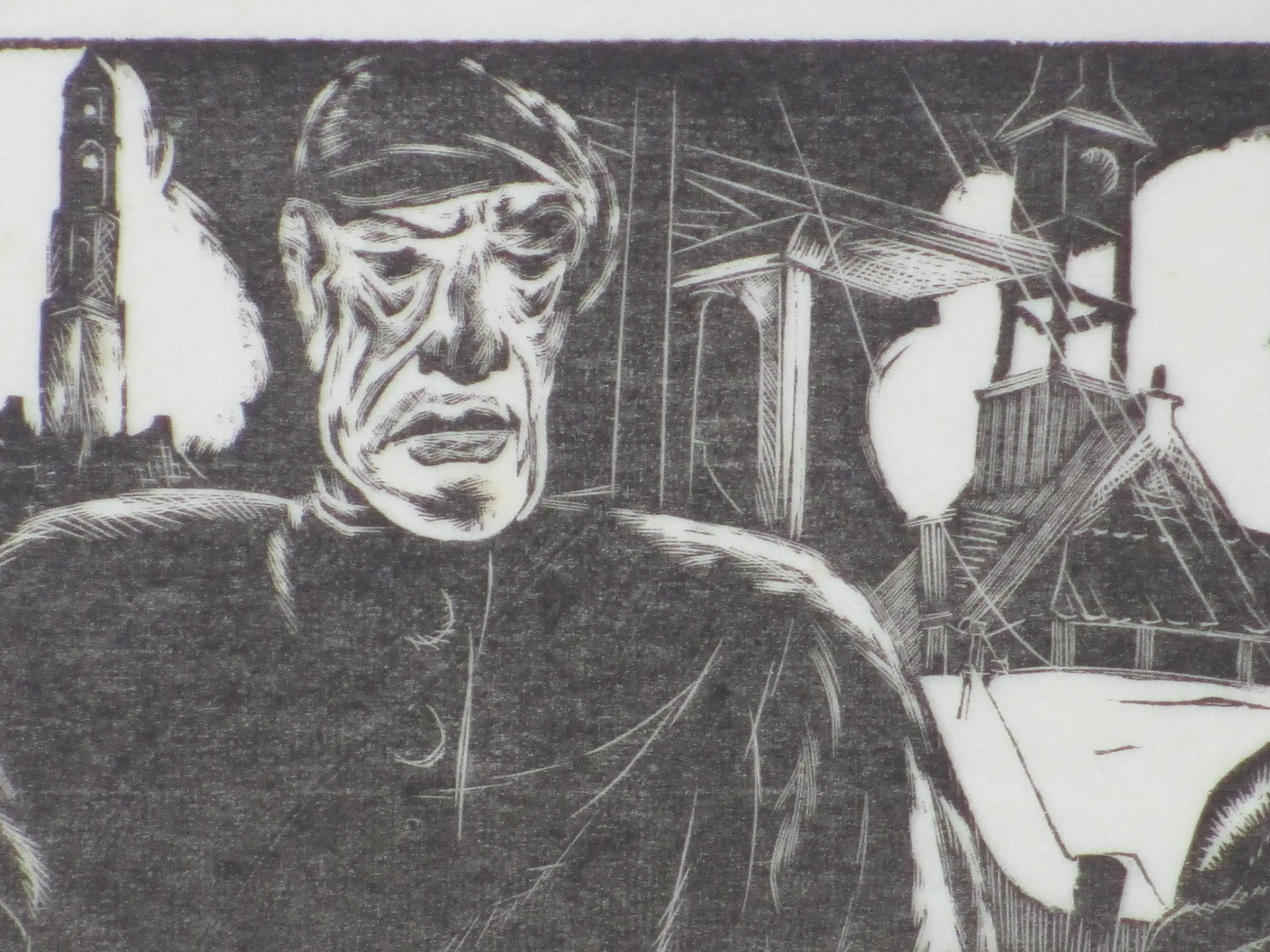 Houtsnede is dun, heeft dus de neiging te krullen en te kreuken.Plaatsing in passepartout is aan te raden.