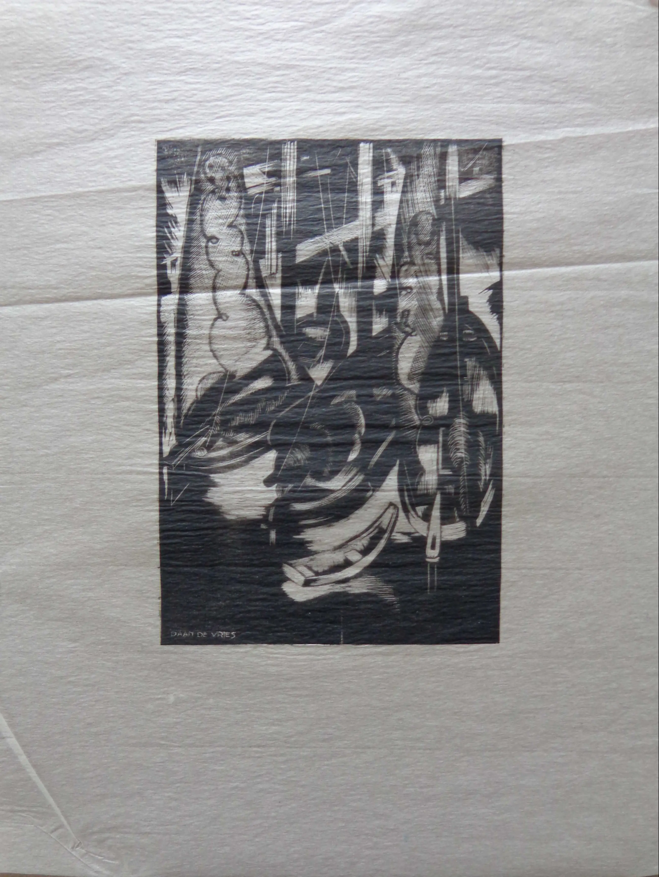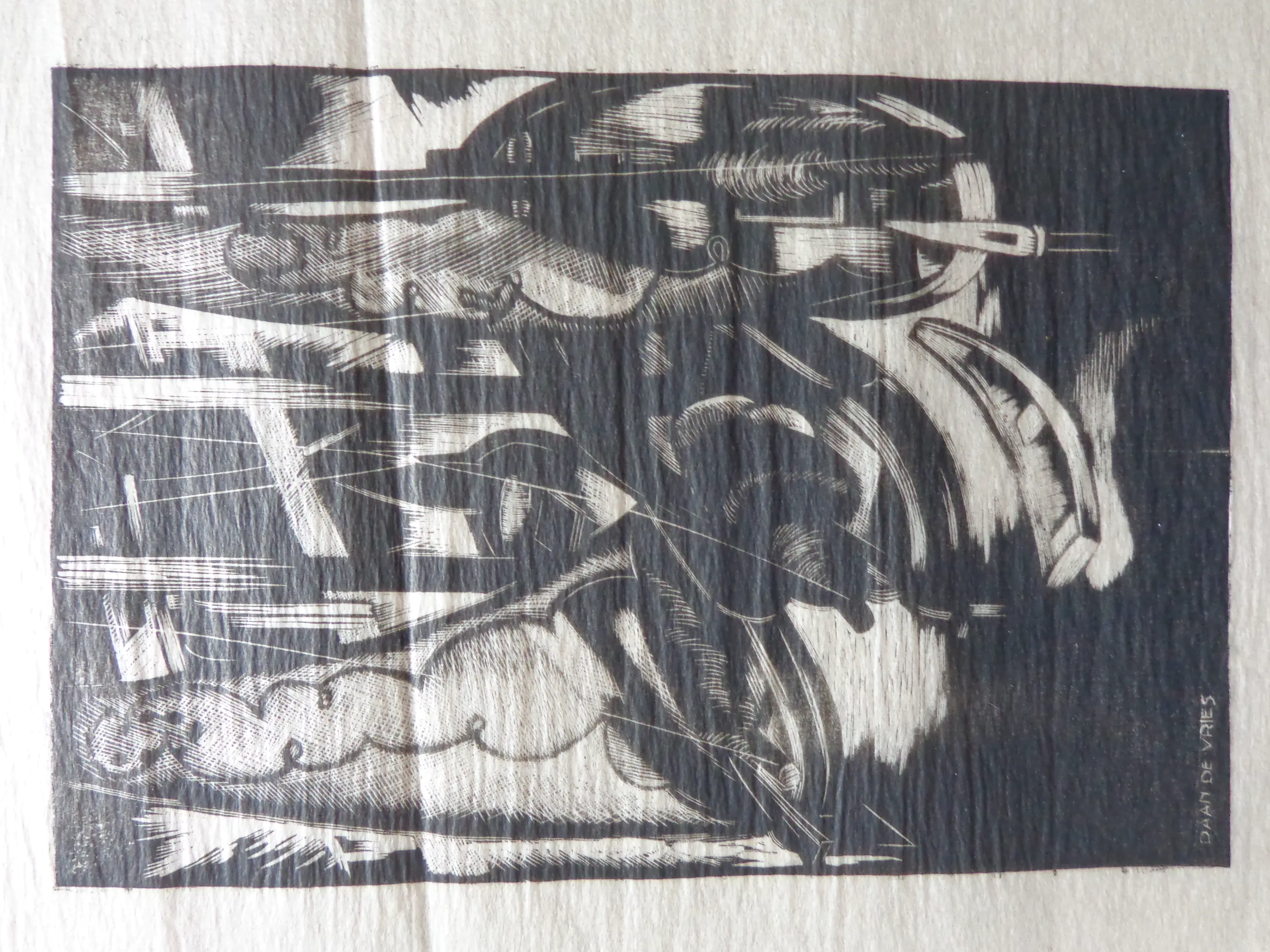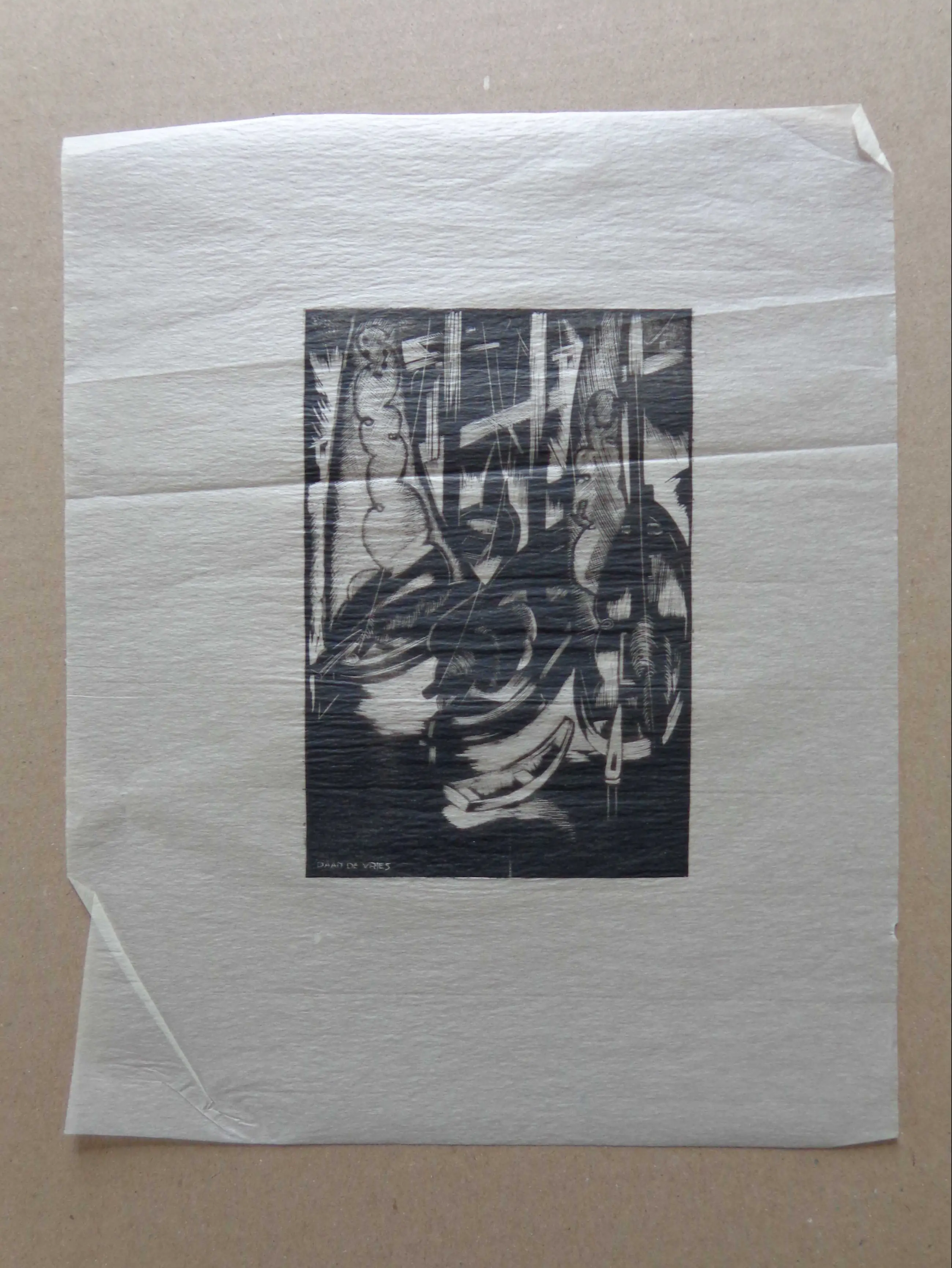 3. Circusartieste. Zwart-wit houtsnede op Chinees papier. Signatuur in de plaat. Geen nummering. Blad: 27x22cm. Proper blad. Horizontale vouw.