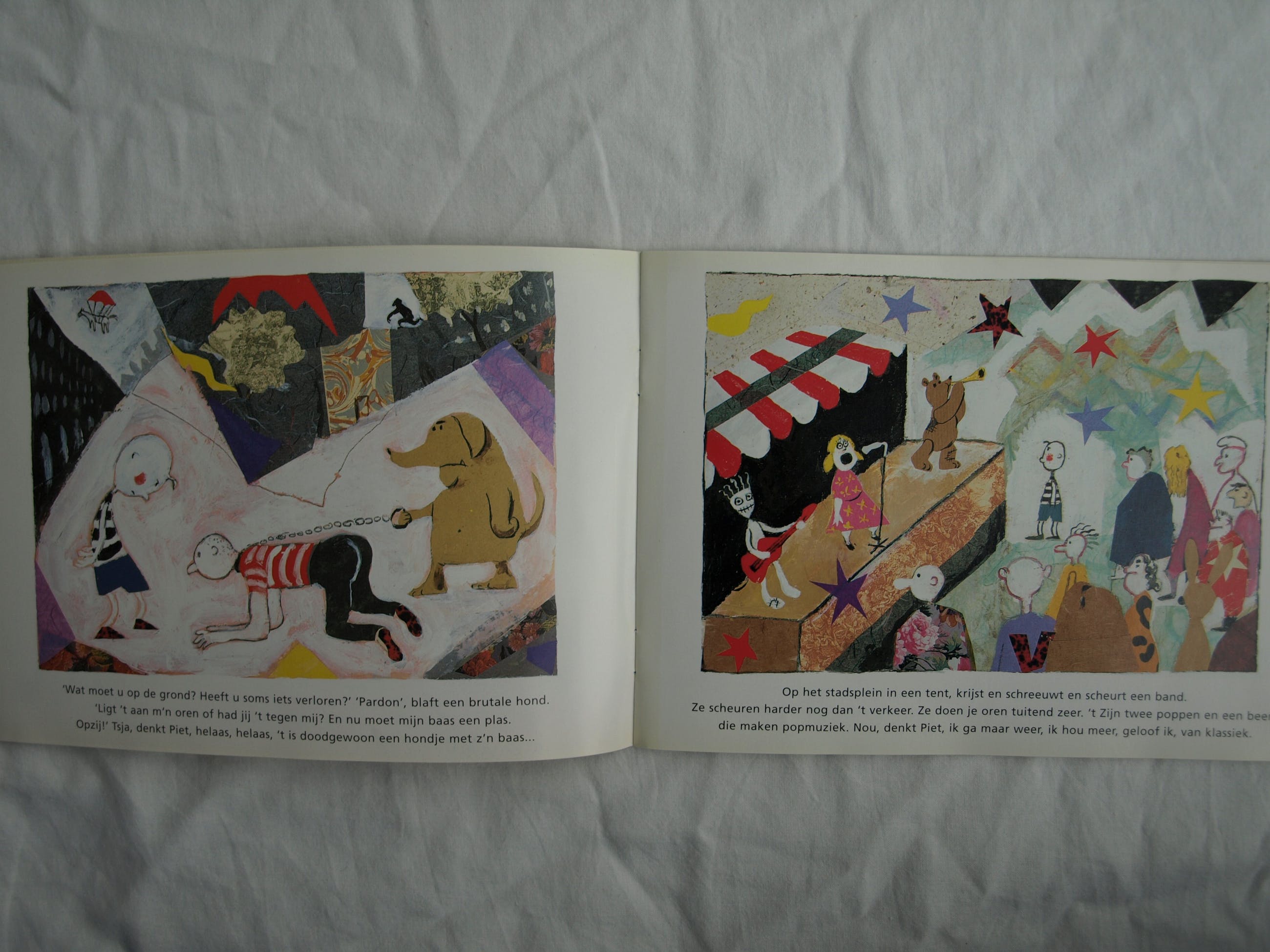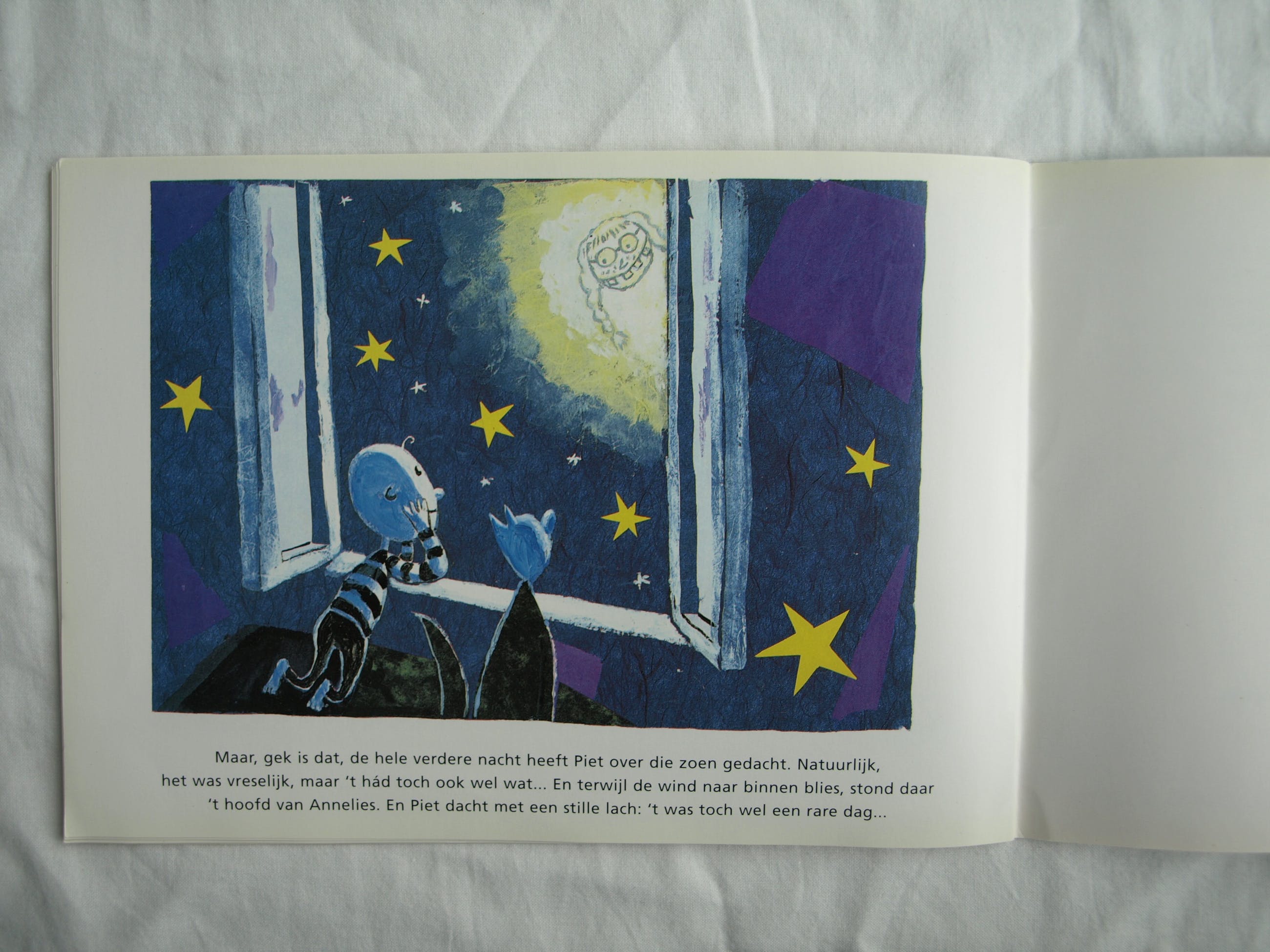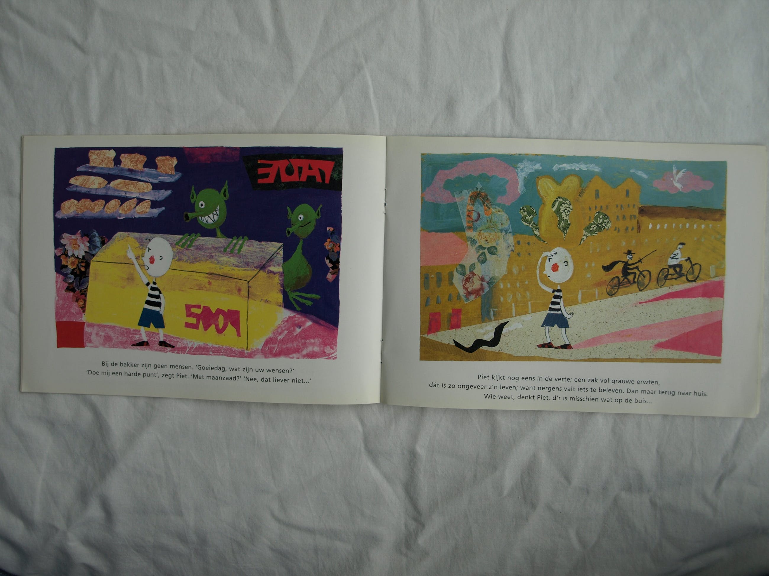 Een kopie van dit boekje krijgt u bij de koop van de collage. De hoofdpersoon in het verhaal is het jongetje Piet, die verveeld door de stad loopt en allerlei vreemde dingen meemaakt, ziek in bed belandt en uiteindelijk verliefd wordt op zijn buurmeisje Anneliesje.