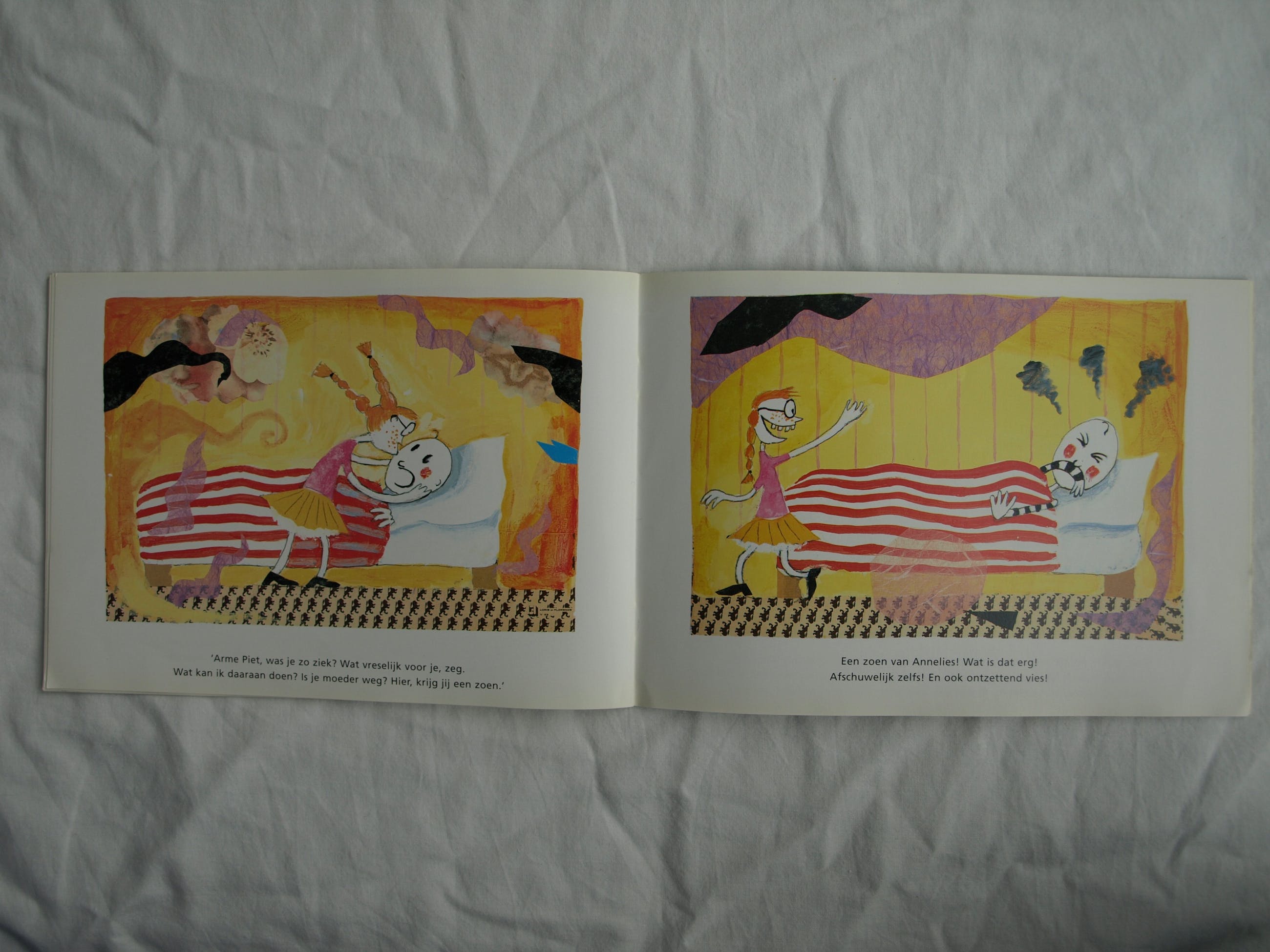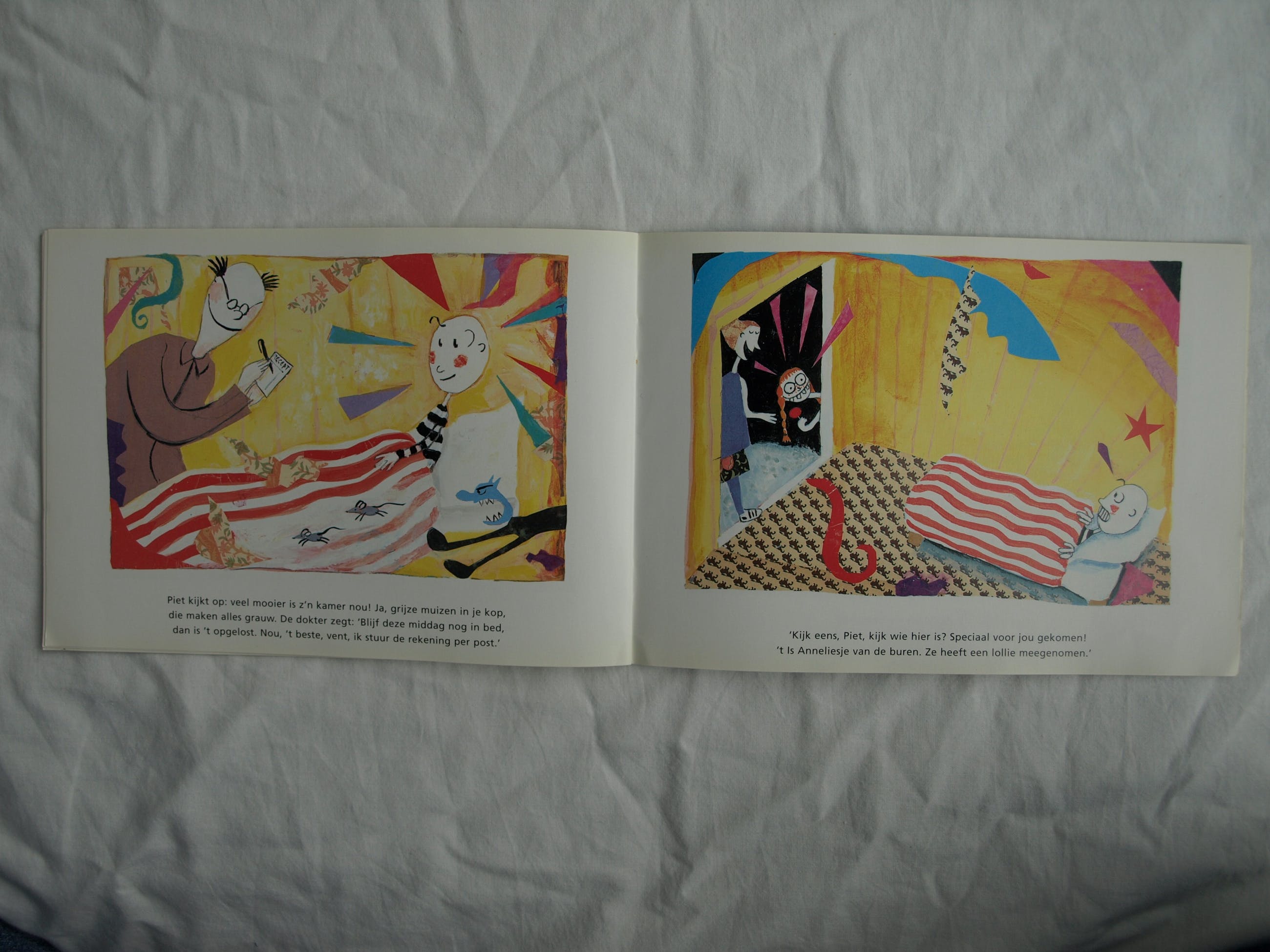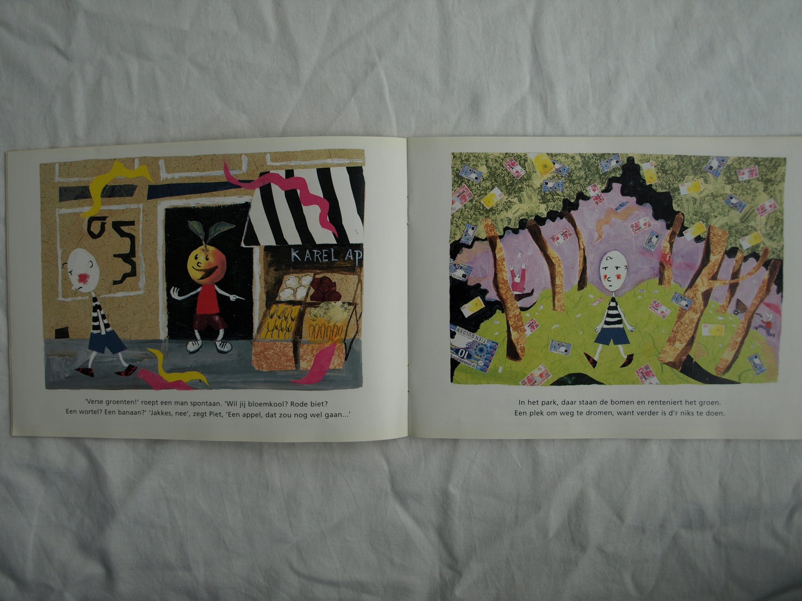 Een kopie van dit boekje krijgt u bij de koop van de collage. De hoofdpersoon in het verhaal is het jongetje Piet, die verveeld door de stad loopt en allerlei vreemde dingen meemaakt, ziek in bed belandt en uiteindelijk verliefd wordt op zijn buurmeisje Anneliesje.