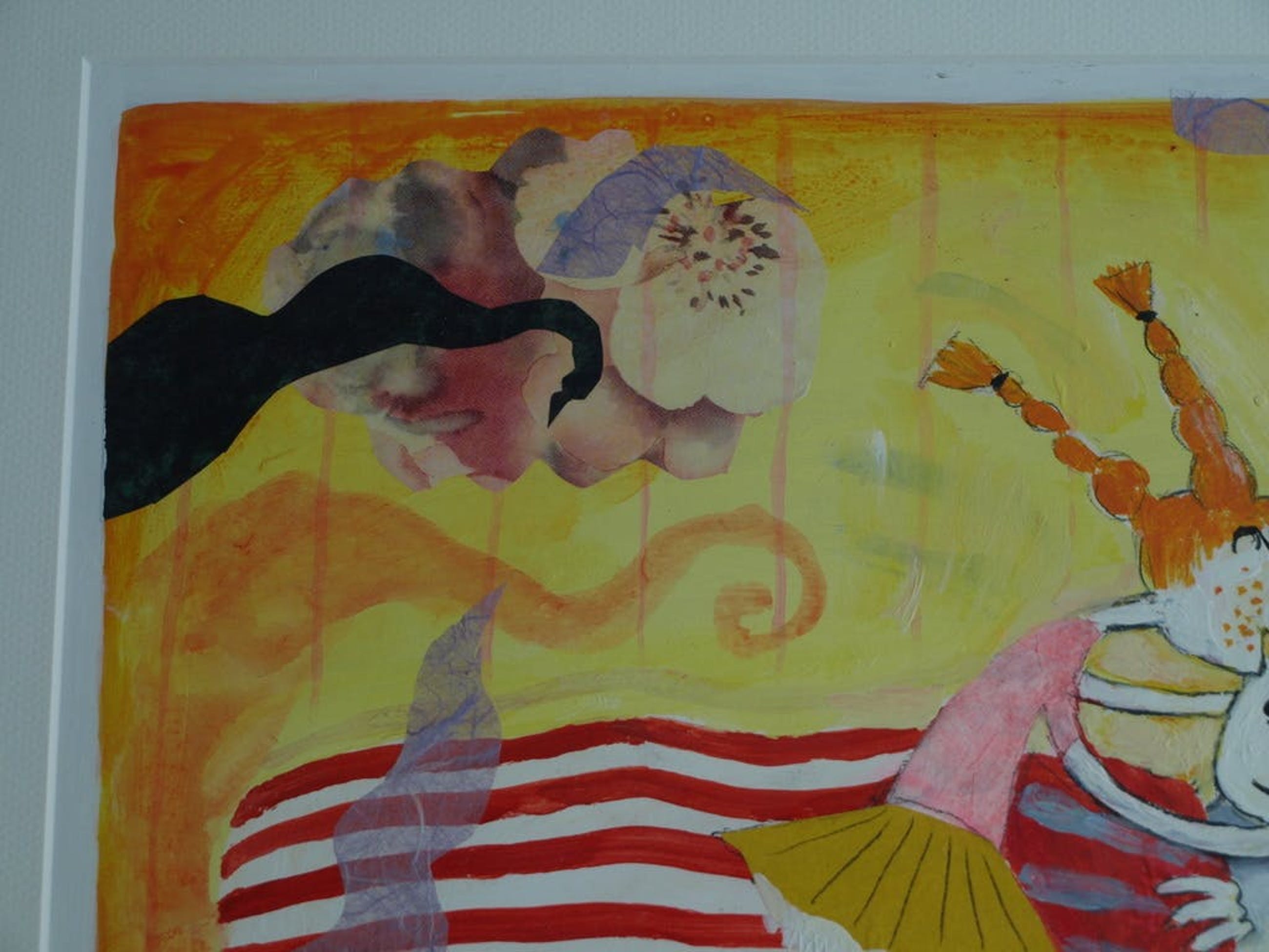 Conditie: De collage is in zeer goede staat. De lijst heeft slijtplekjes met verfverlies.