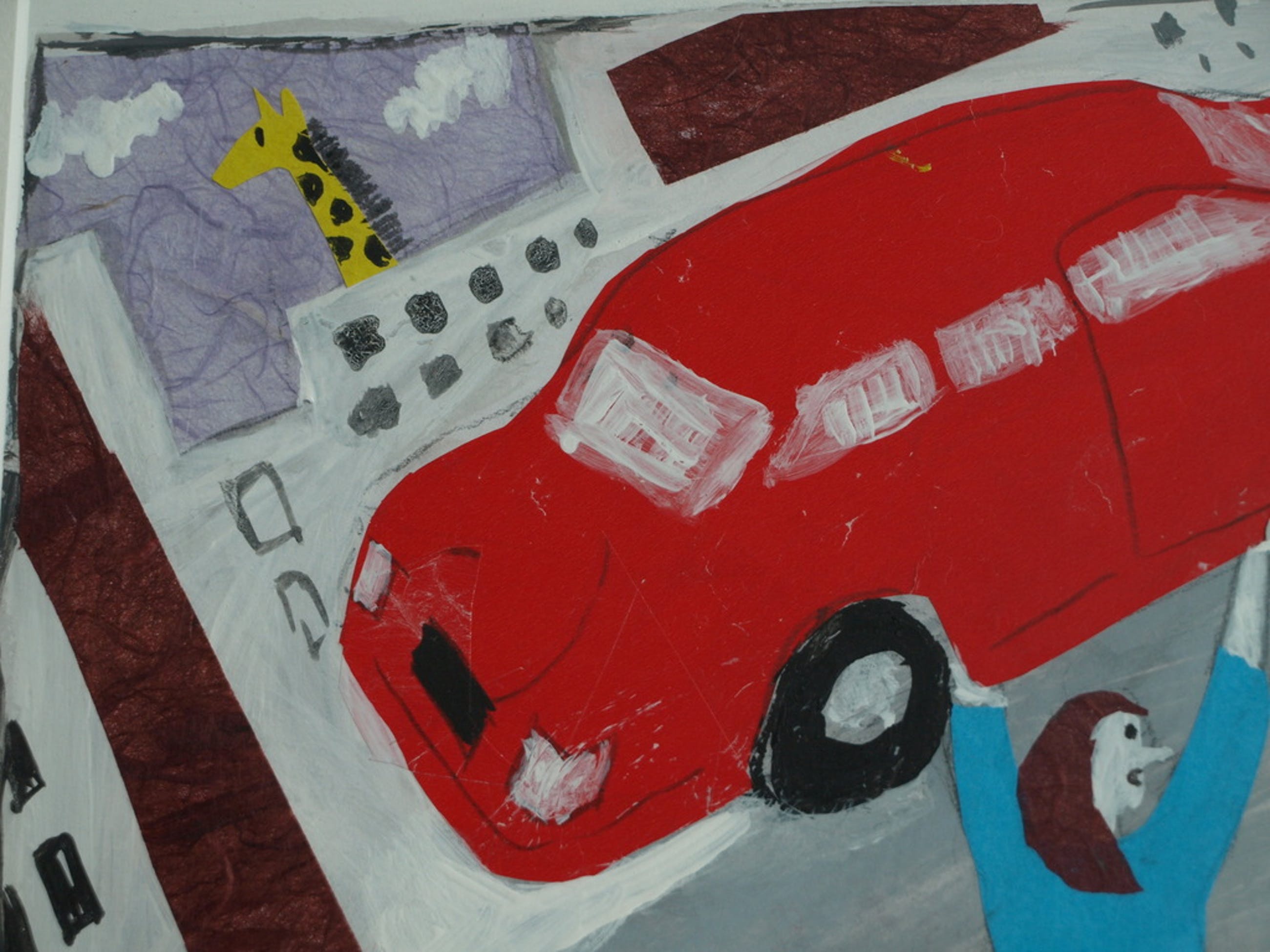 Techniek: Gemengde techniek van acrylverf en collage van papier.