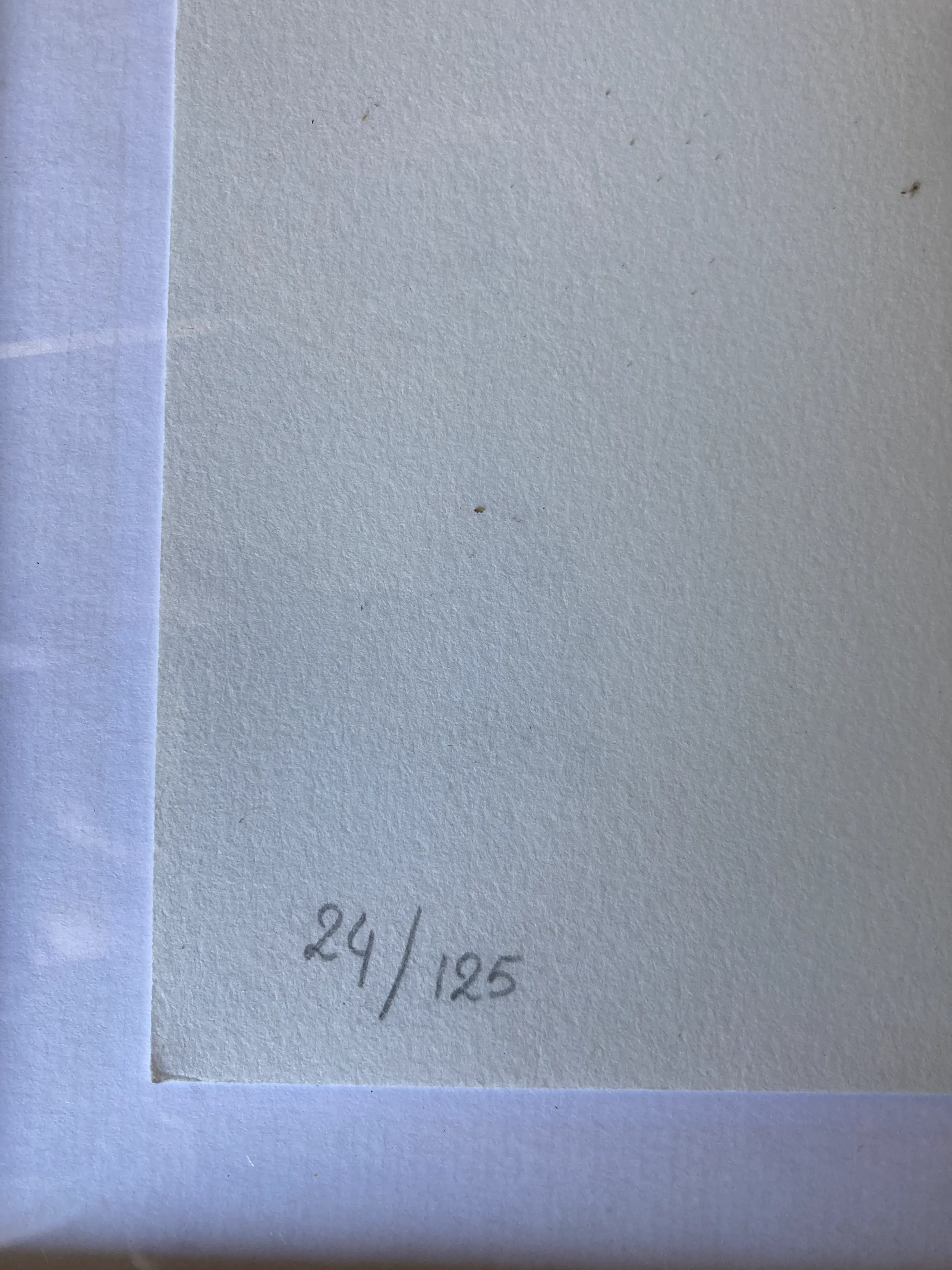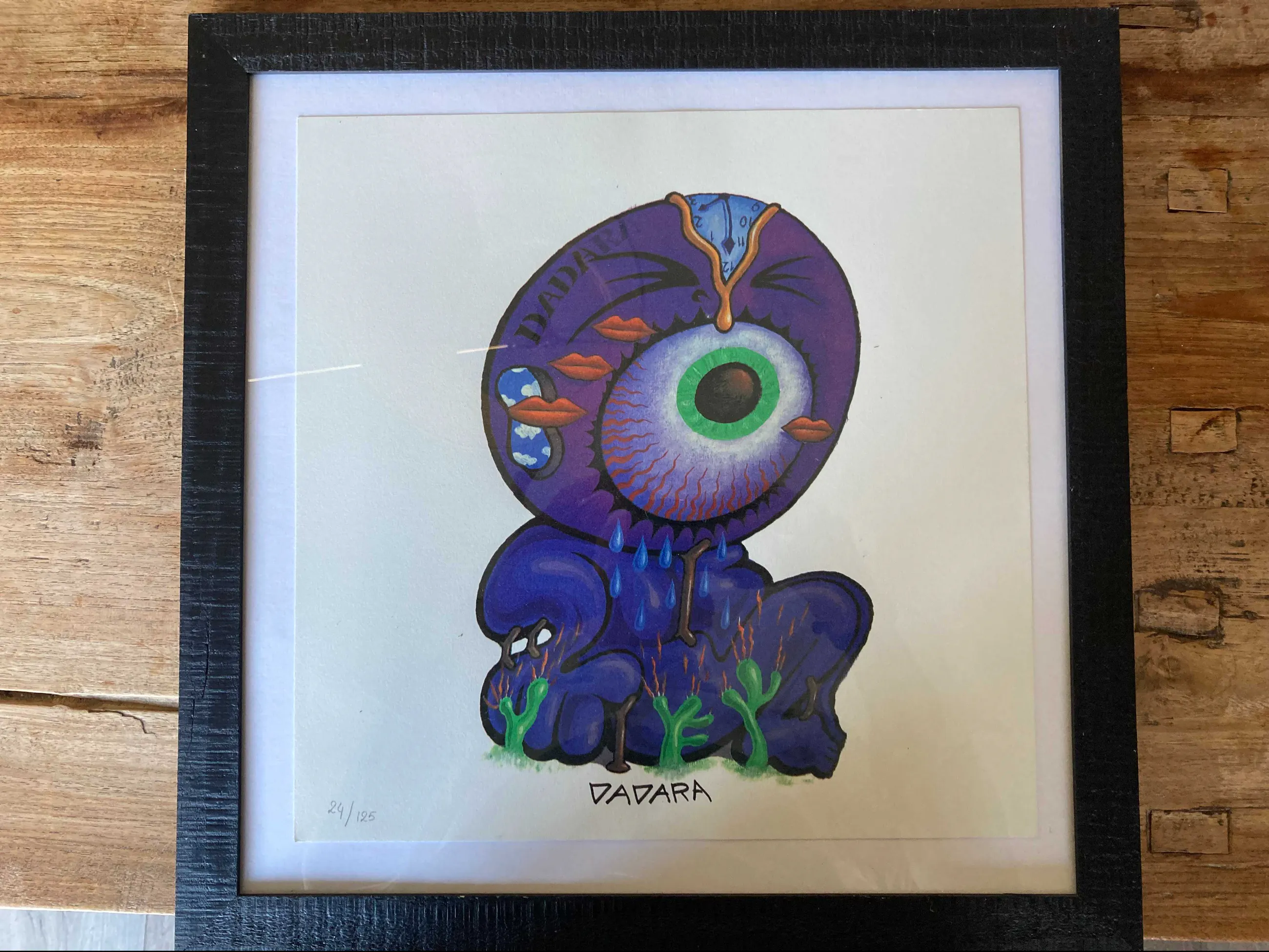 Een van de babyzeefdrukken van Dadara. Titel: Dali Baby. Nummer: 24/125. Het werk is midden onder met zwarte stift gesigneerd door Dadara.