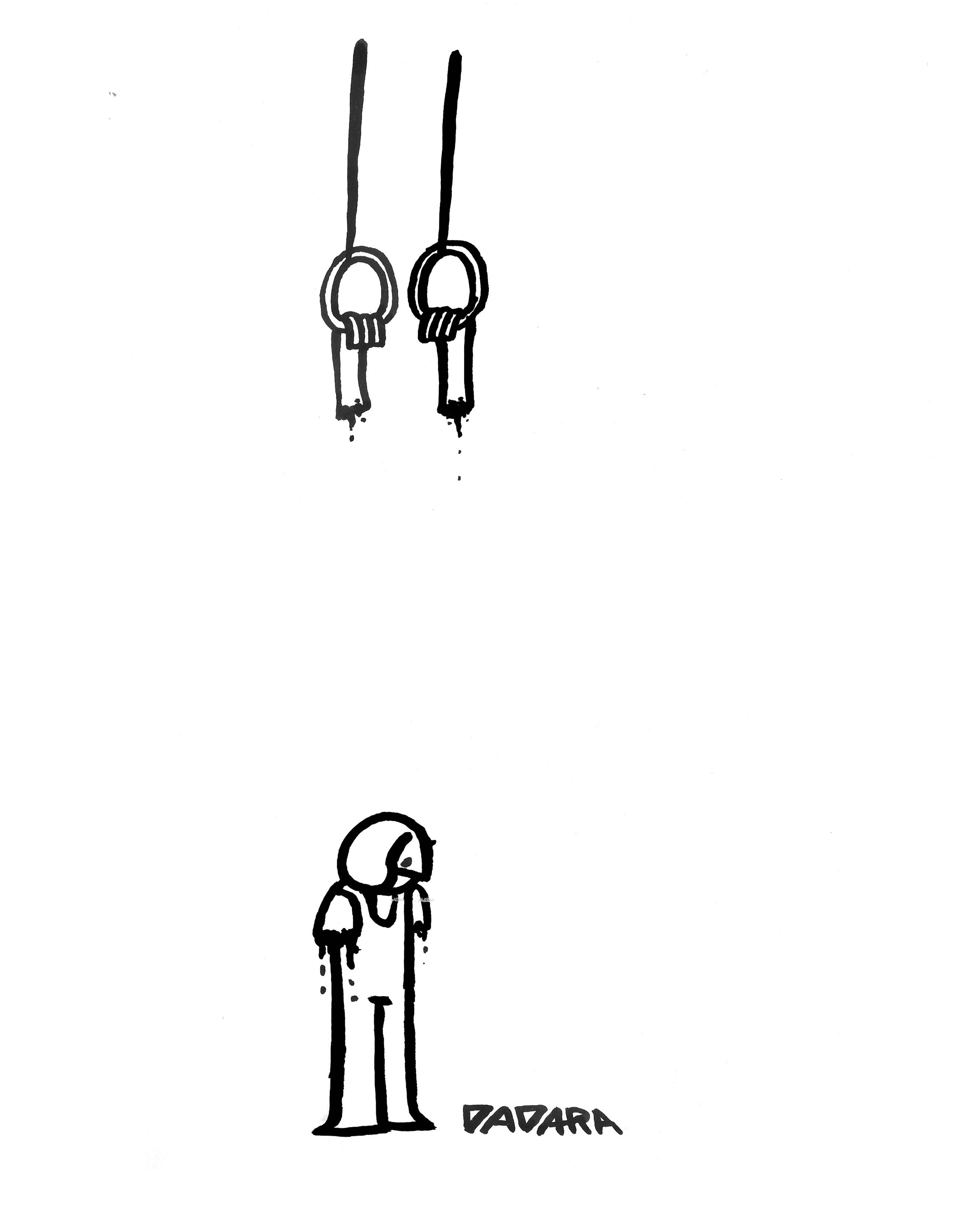 originele tekening van DADARA (Daniël Rozenberg), 'vroege periode werk" uit de serie RINGEN