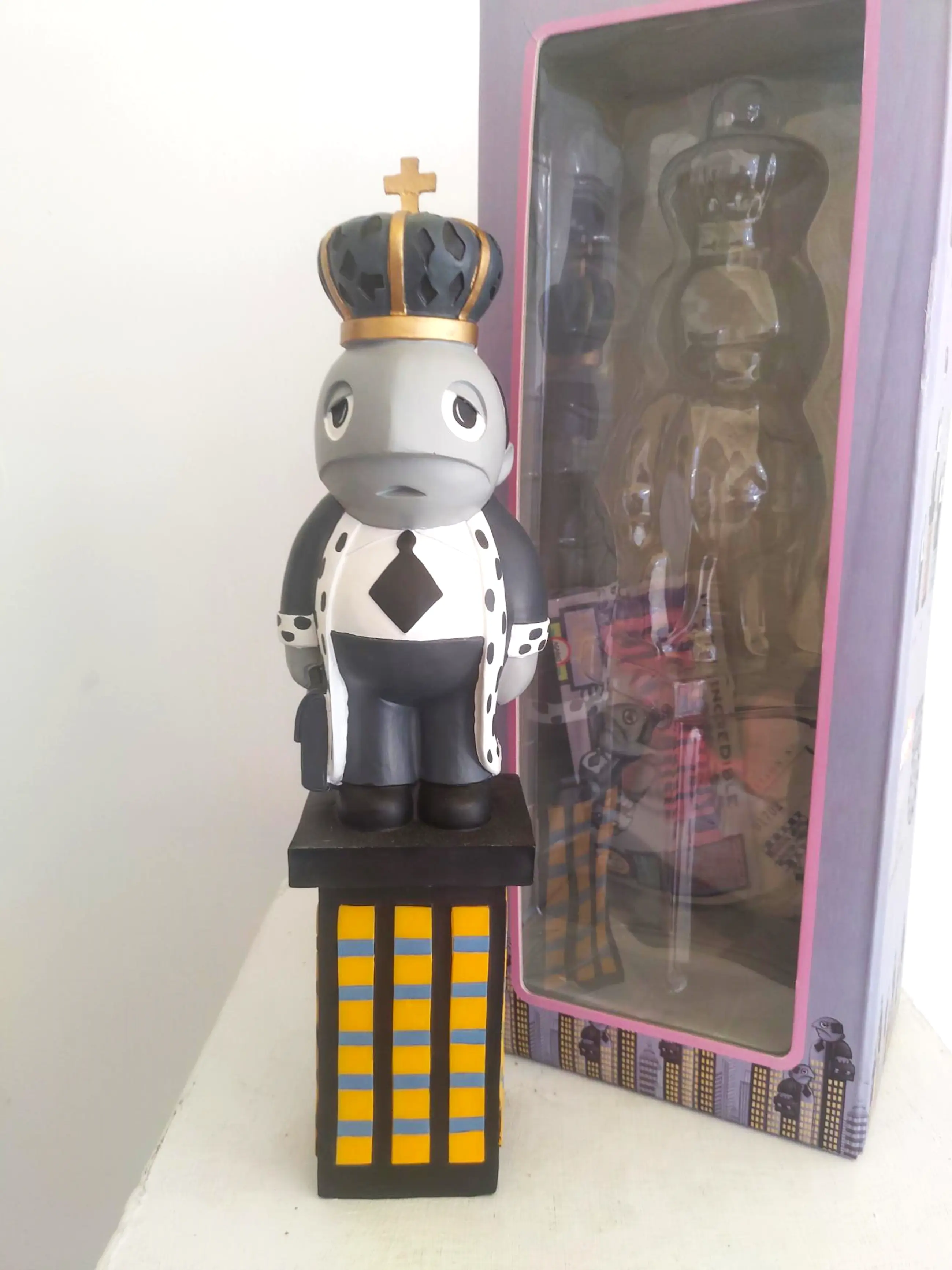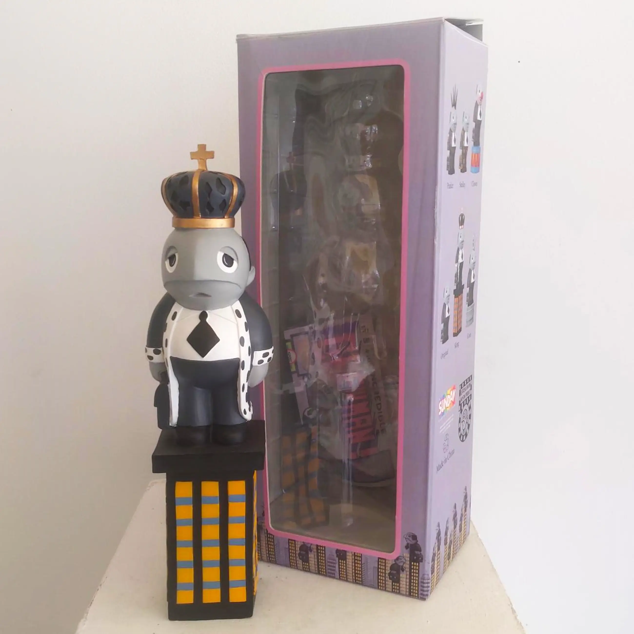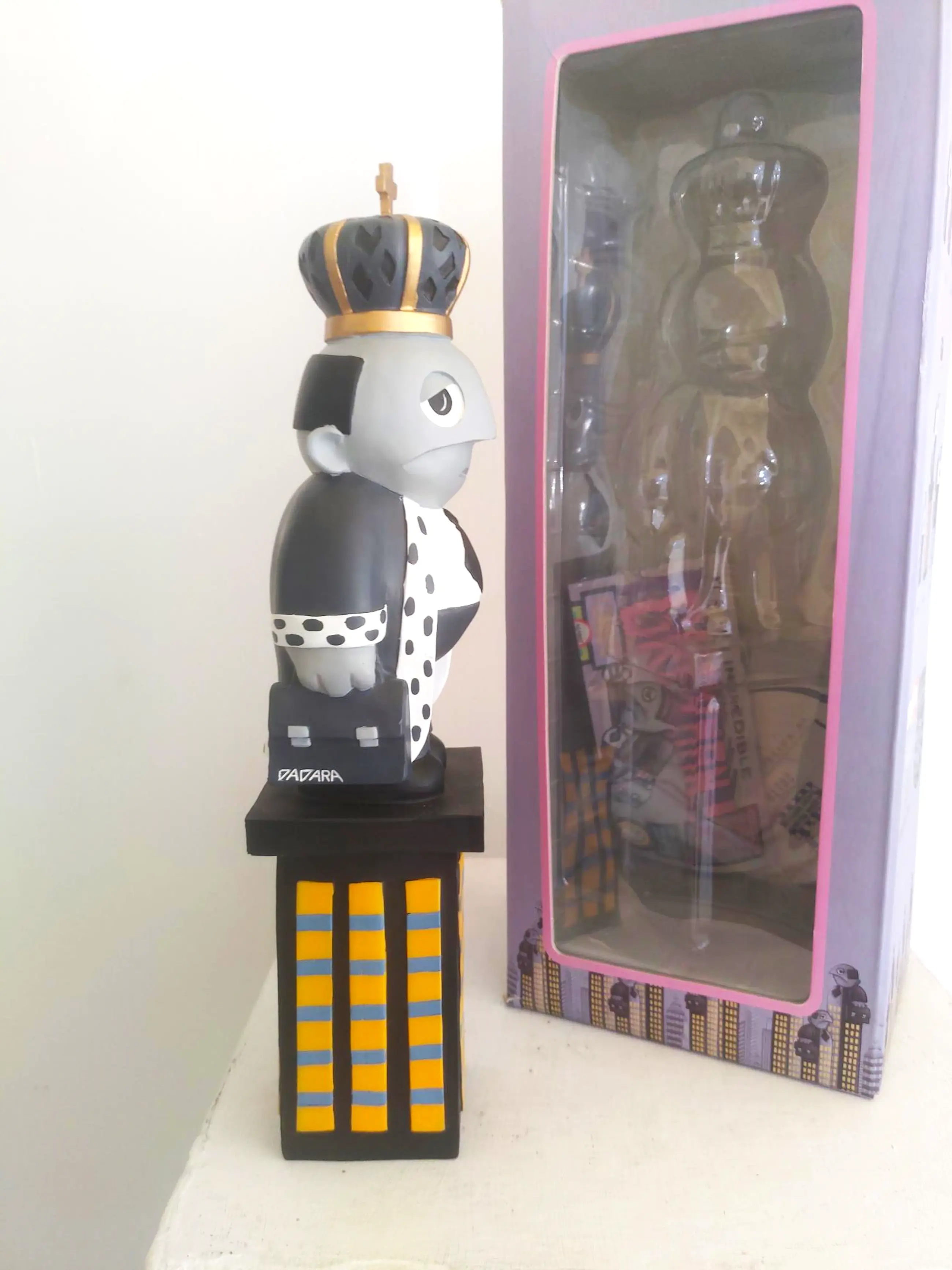 DADARA is bekend bij het grote publiek geworden met zijn grote Greyman sculpturen. Dit is een multiple in kunsthars en originele verpakking.
