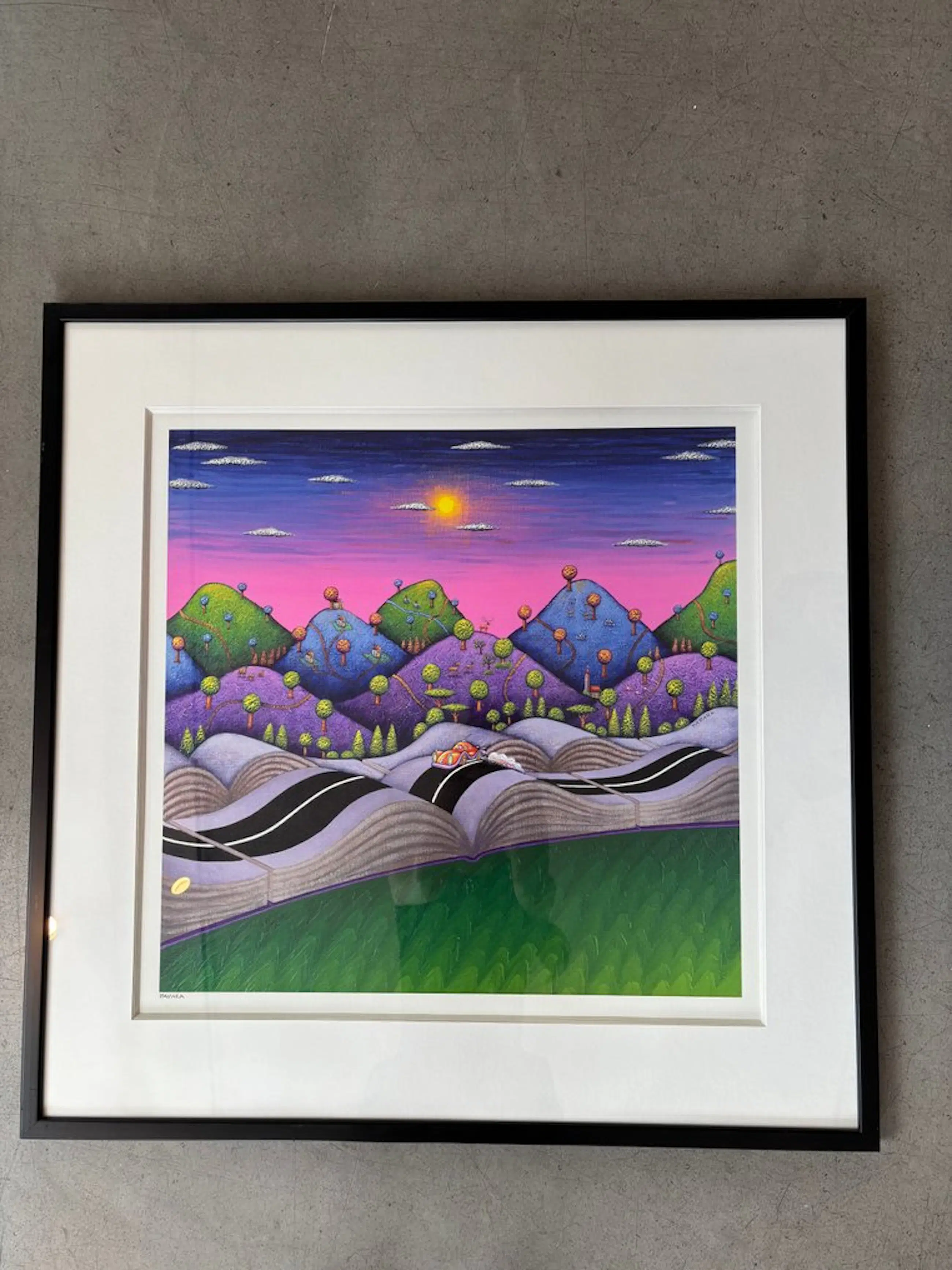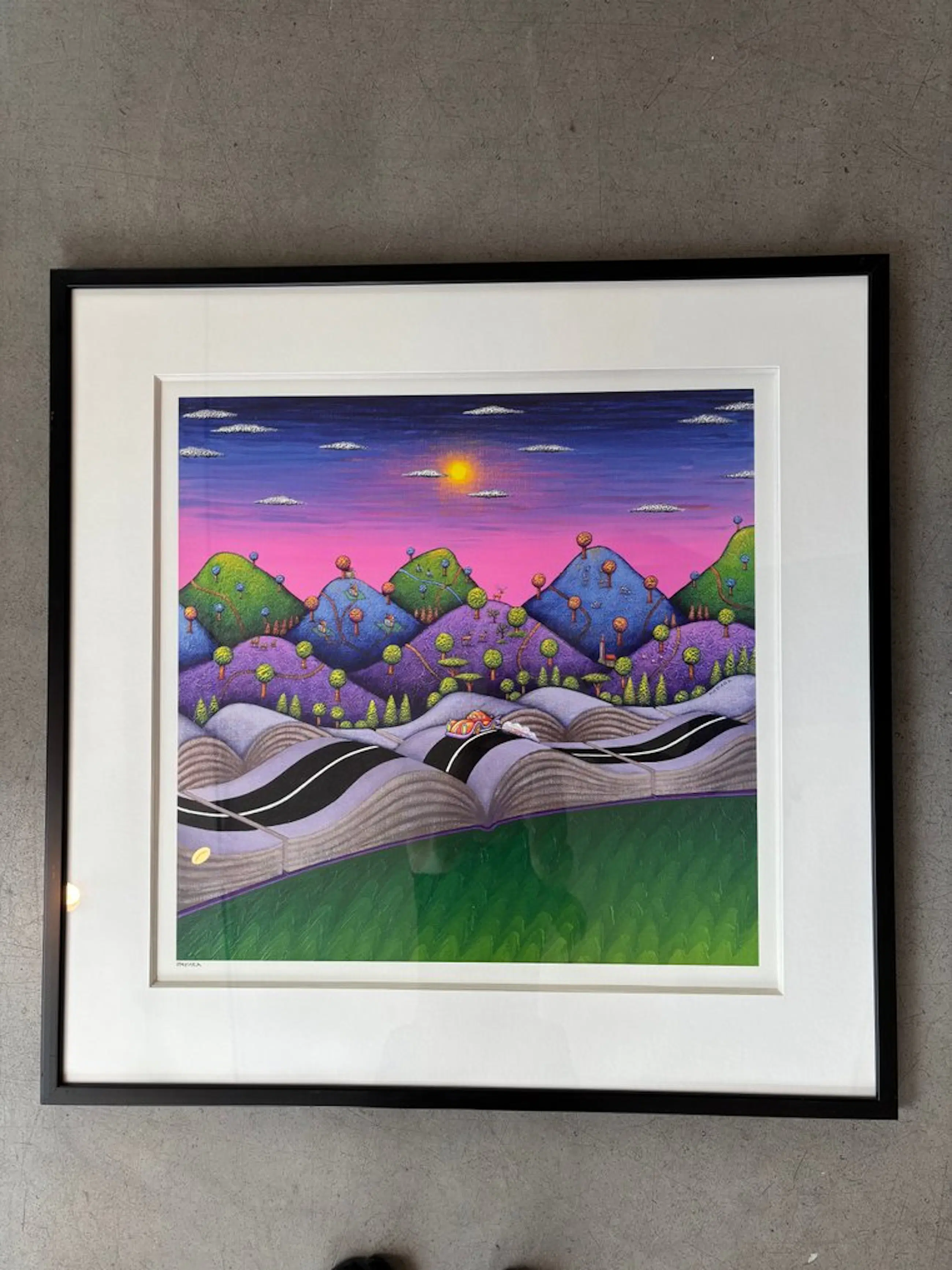 Handgesigneerd op de voorkant. Lijst en print in uitstekende staat.