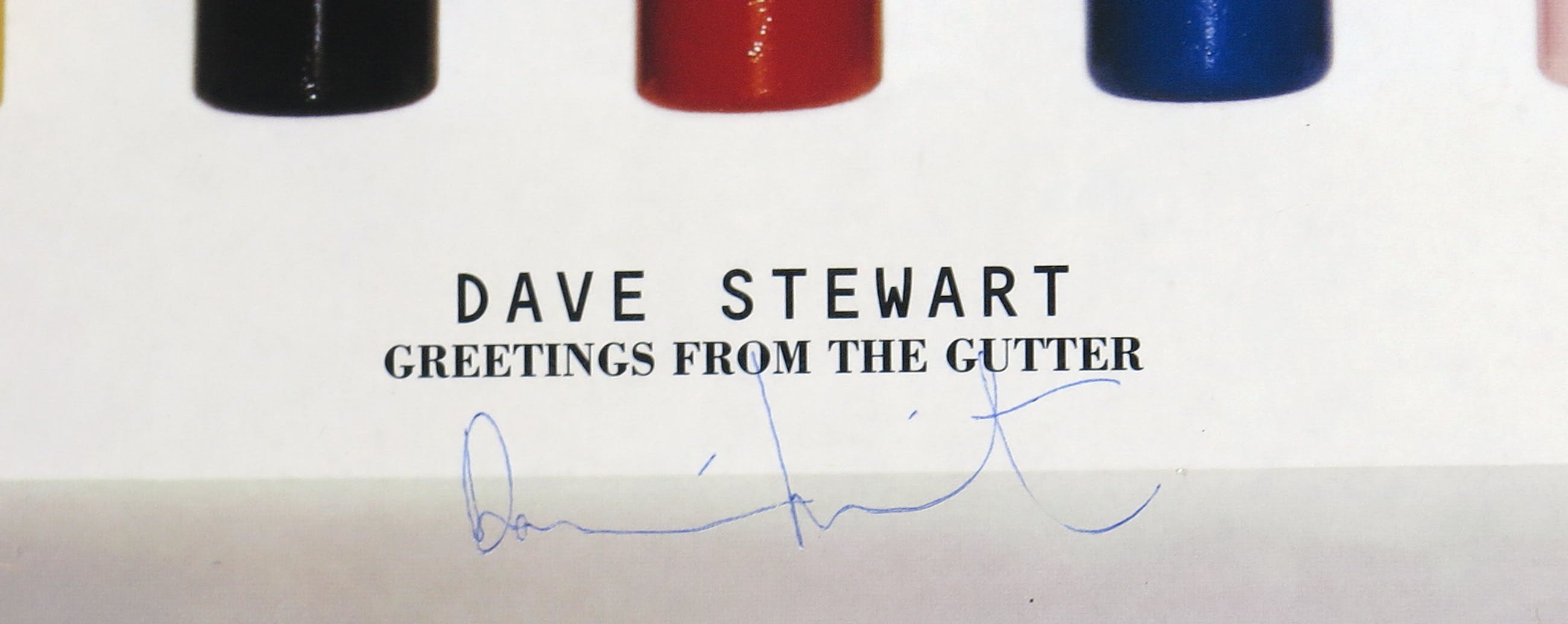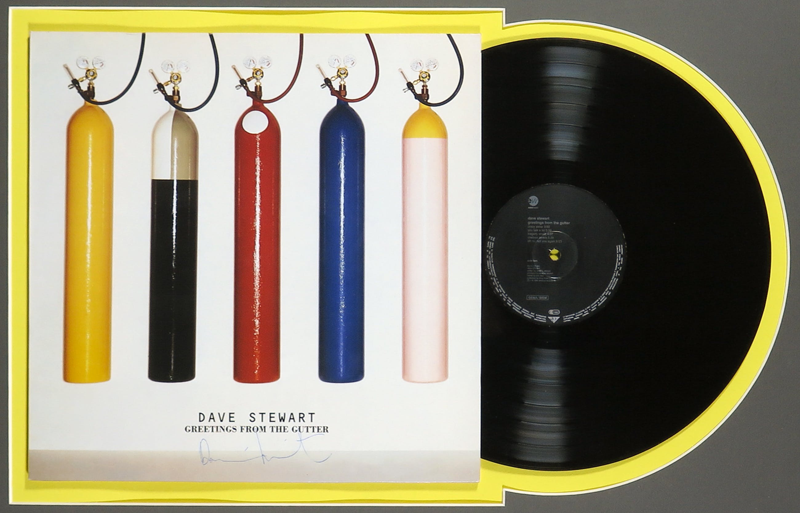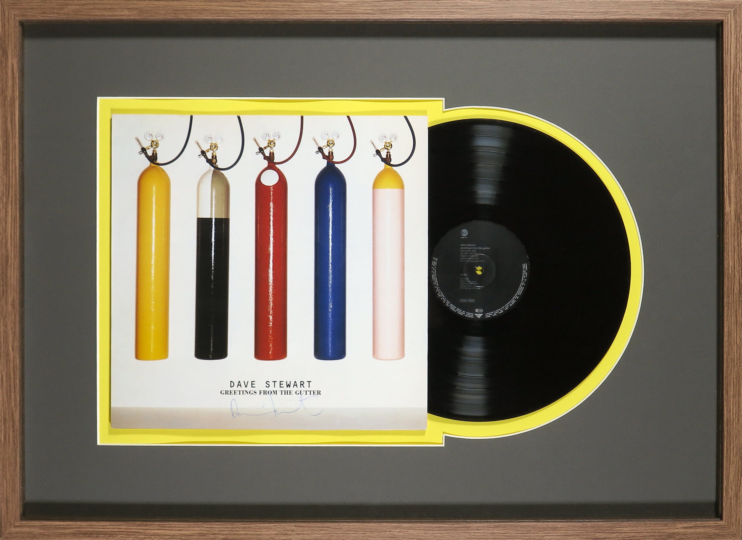Ingelijst album van Dave Stewart met coverontwerp van Damien Hirst. De hoes is door Hirst gesigneerd.