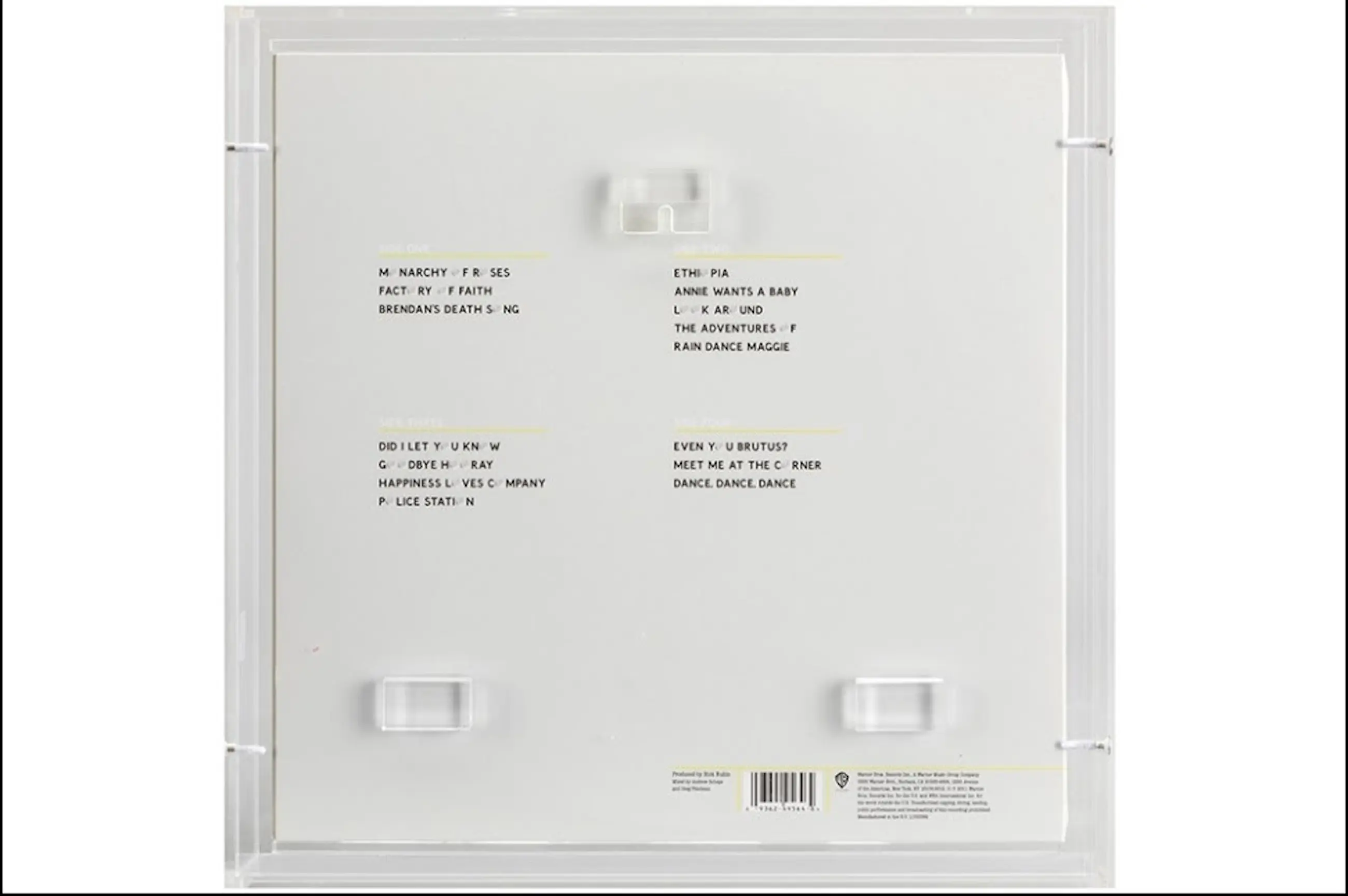 Gepresenteerd in een museumwaardige plexiglas displaybox , combineert dit stuk hedendaagse kunst, verzamelobjecten en muziekgeschiedenis in één opvallend object.