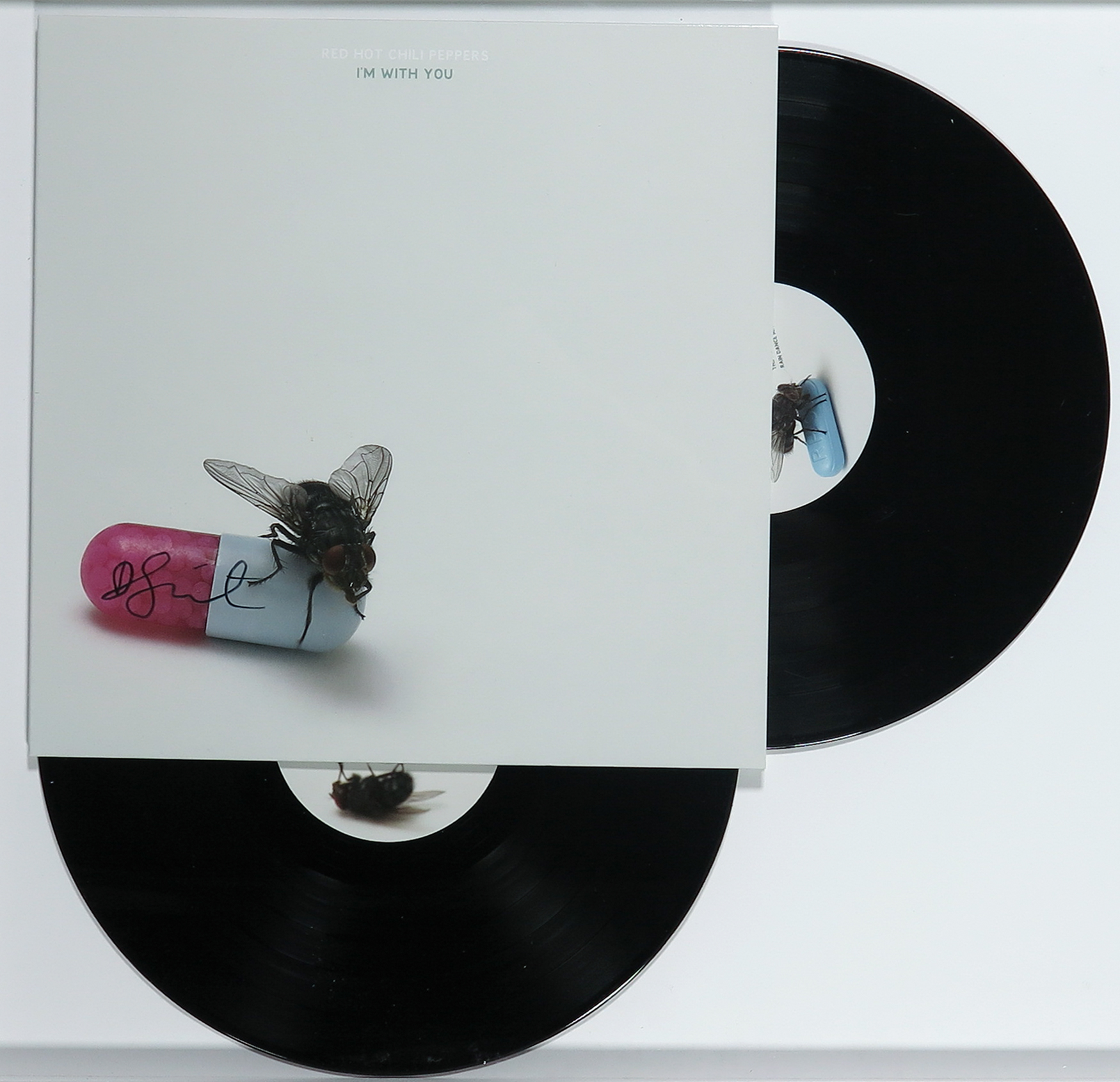 I'm with you. Album van de Red Hot Chili Peppers met een door Damien Hirst ontworpen en gesigneerde LP-hoes.