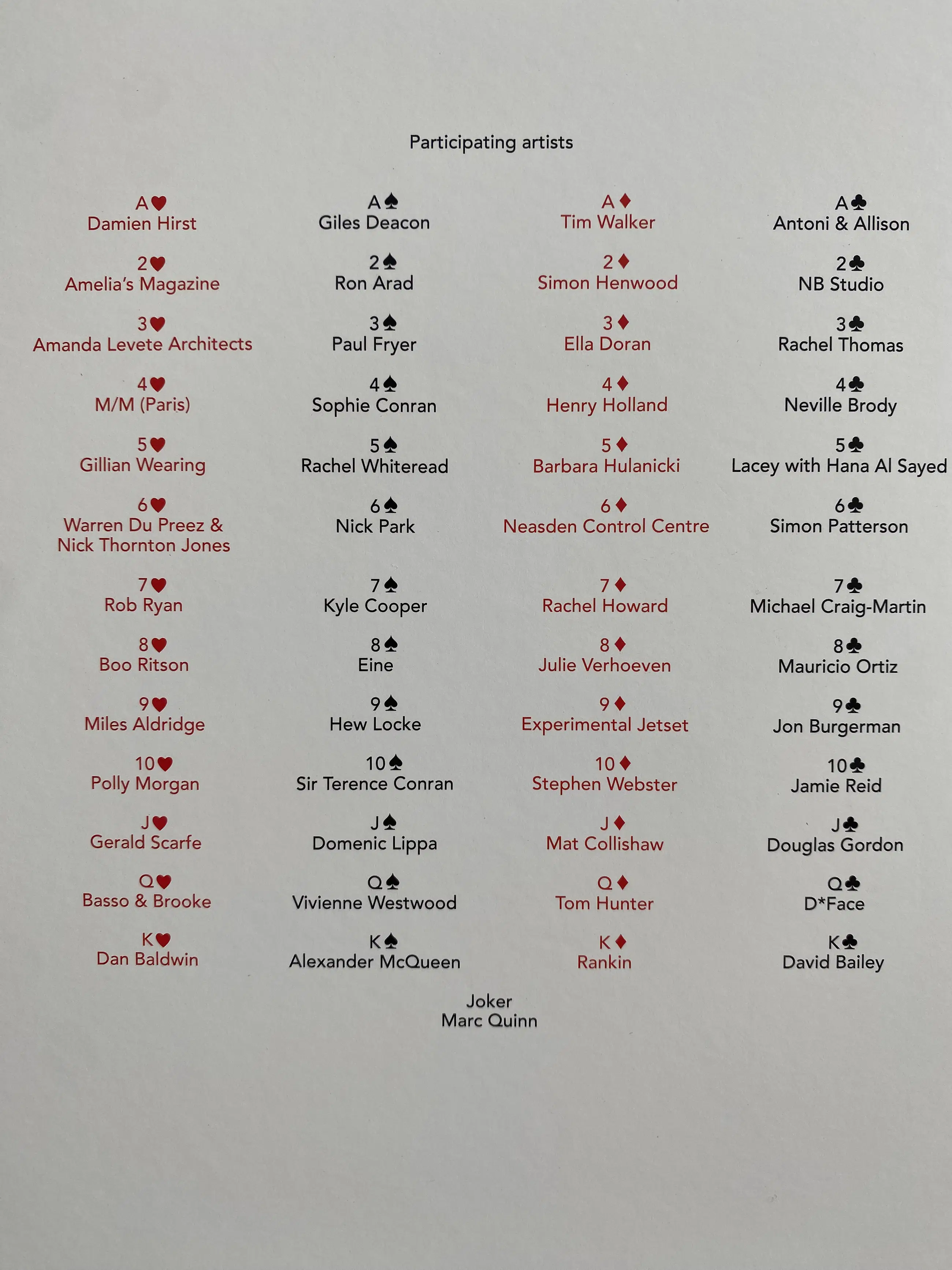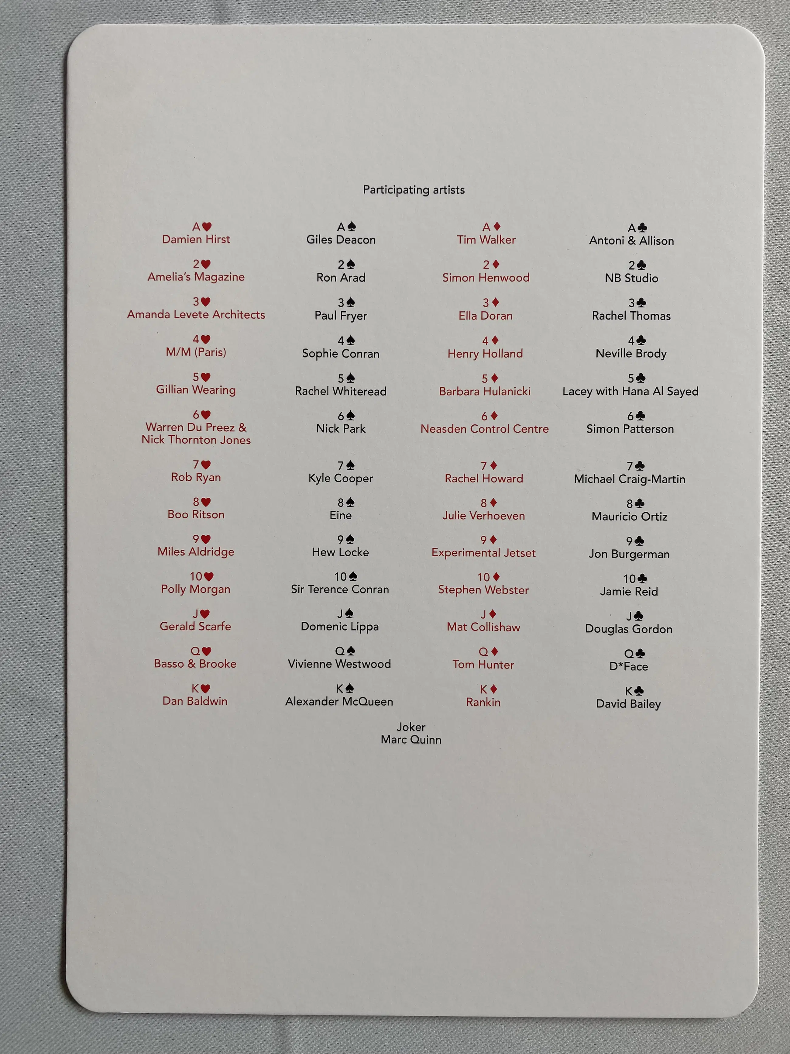 De kaarten worden geleverd in een slipcase ontworpen door Pentagram London, wiens eigen Domenic Lippa ook in het deck voorkomt.
