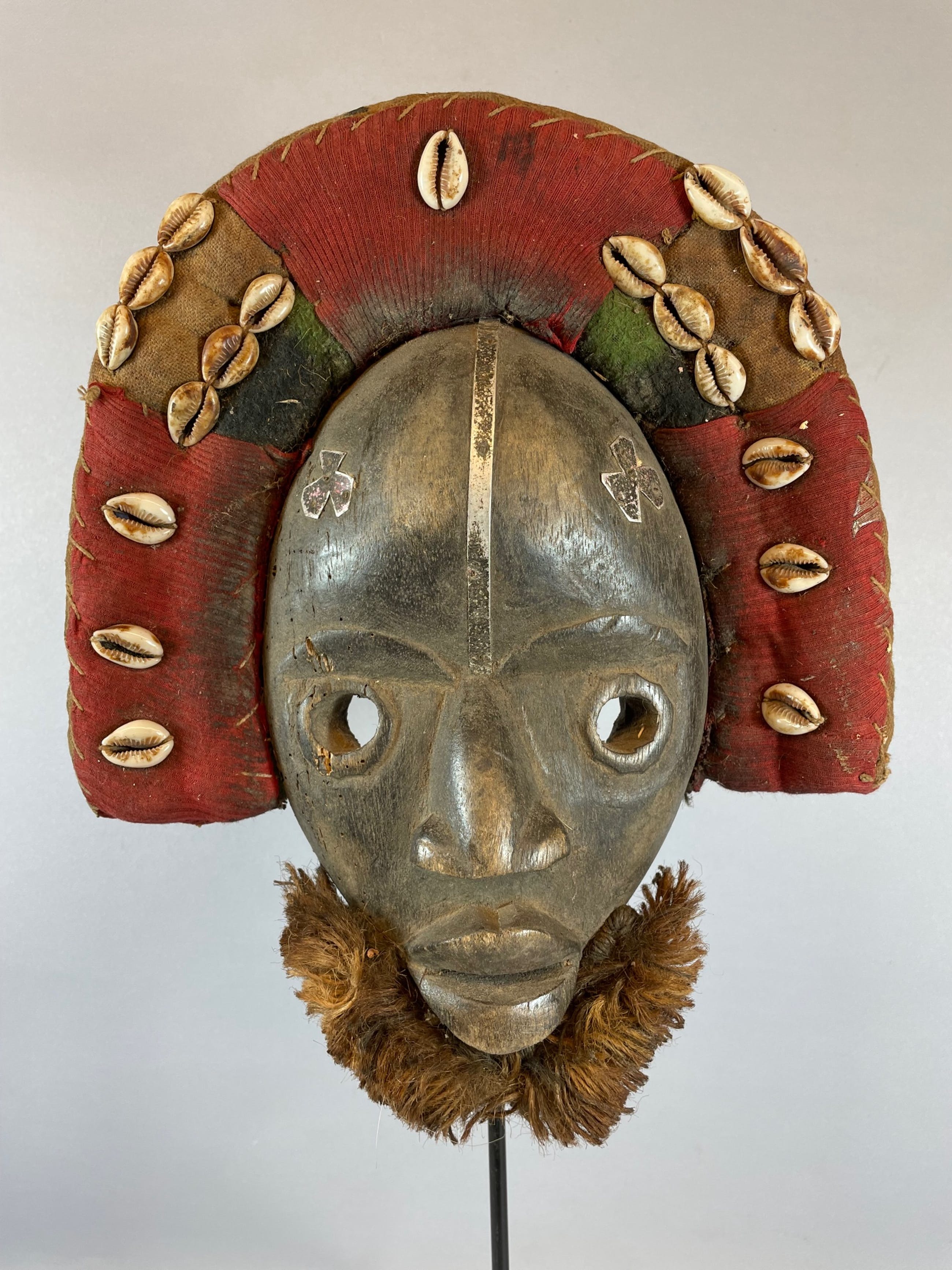 Old tribal used mask from the Dan people in Liberia.Hand carved from a single piece of wood, with color pigments. Height: 30 cm.