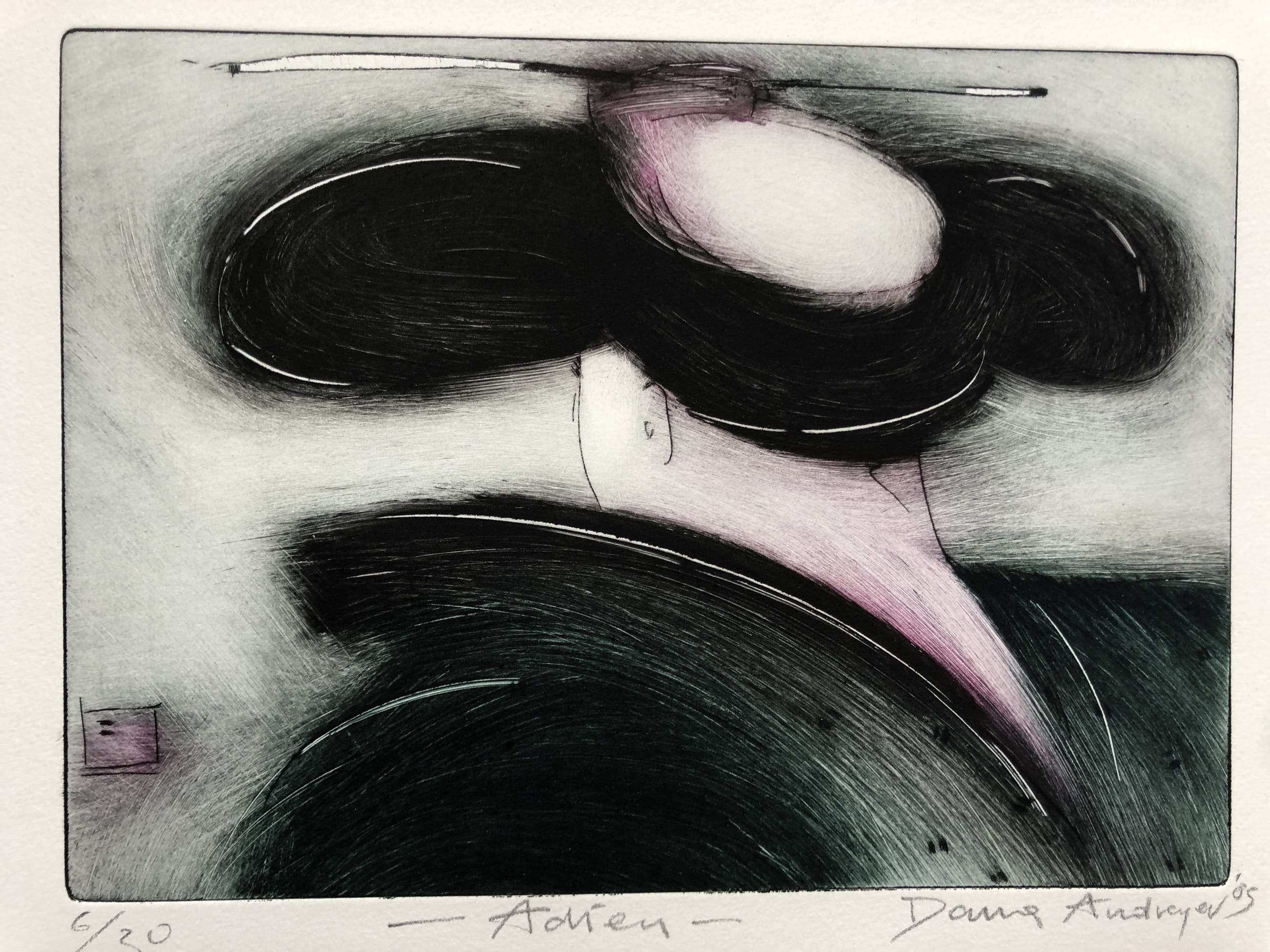 Mooie ets van Dana Andreev. U kunt het werk vooraf komen beoordelen bij galerie Rotor, de schatkamer van de hedendaagse kunst in Gorcum.