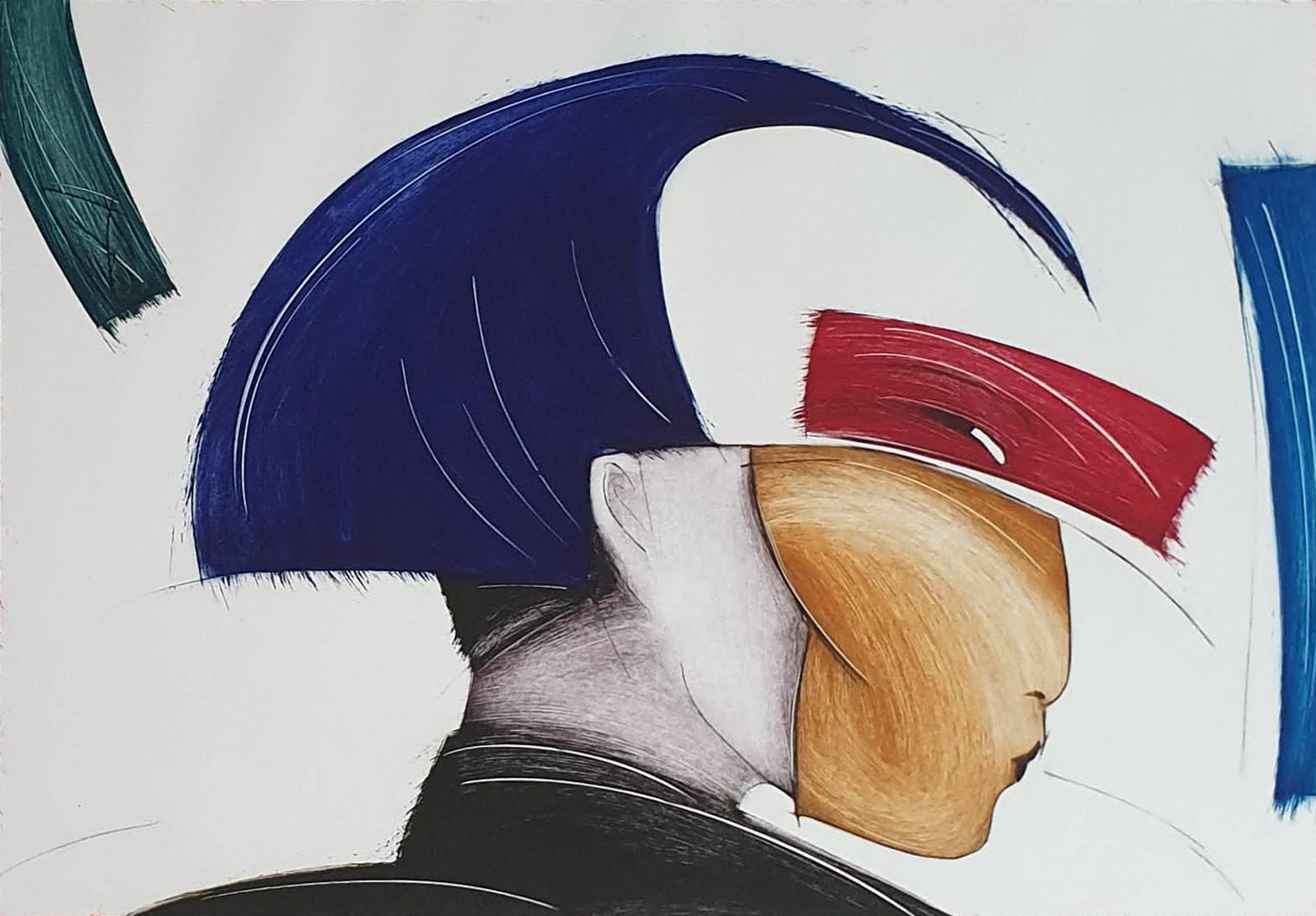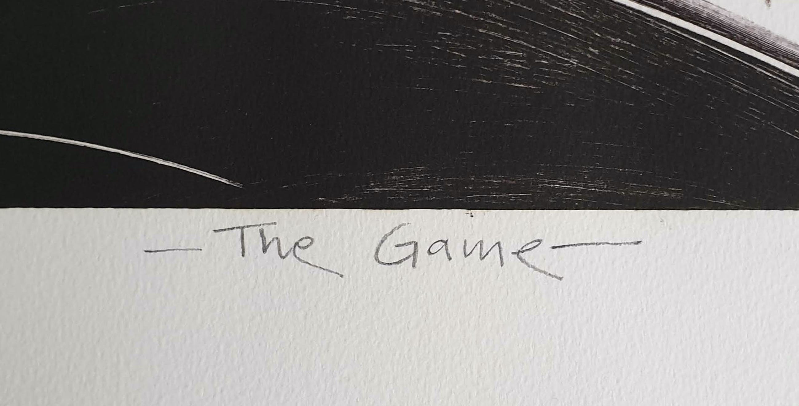 Kleurenets van Dana Andreev met de titel: 'The game' uit 1993. Het werk is rechtsonder gesigneerd door de kunstenares met potlood.