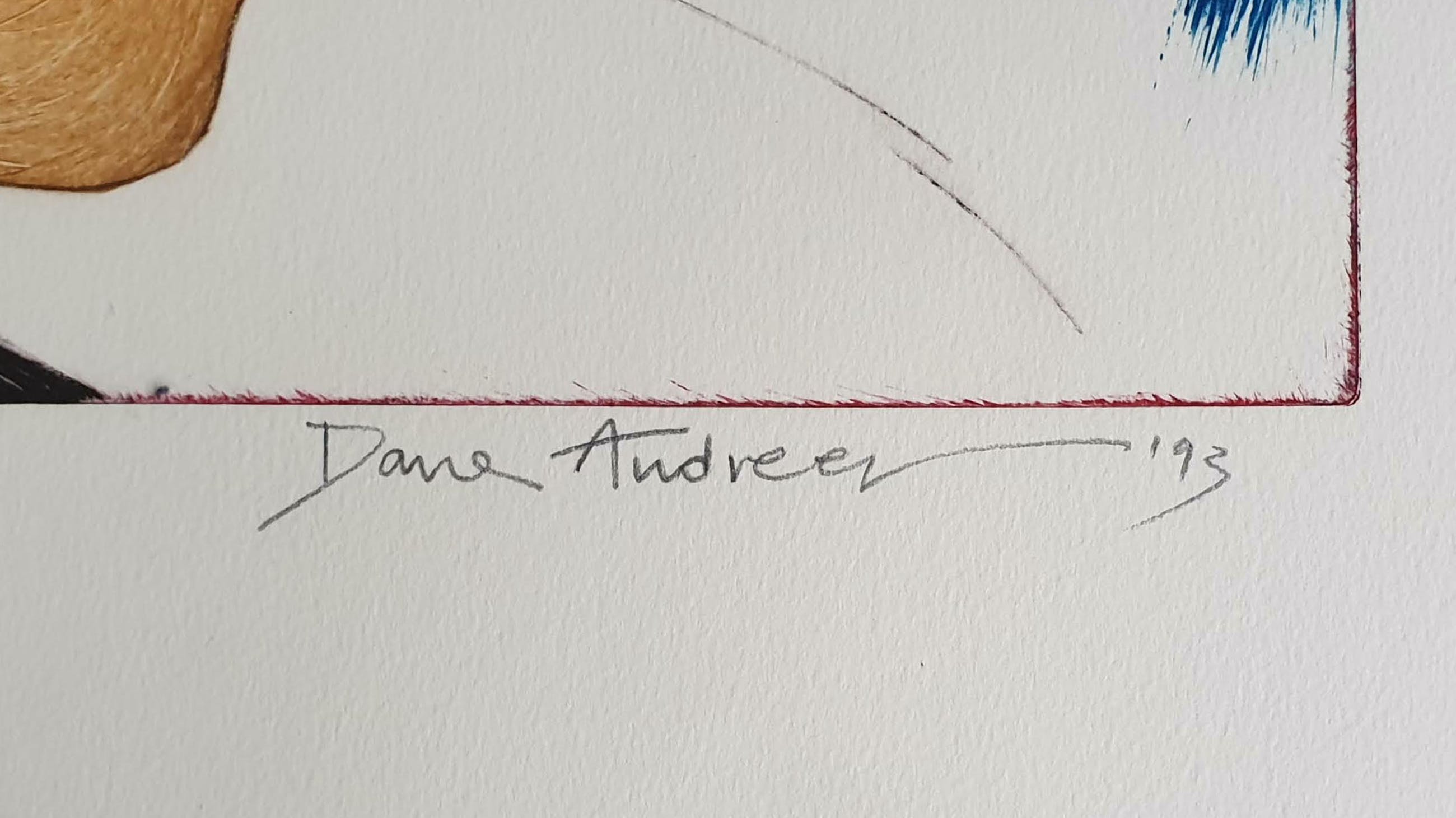 Kunstenaar: Dana Andreev Titel: The game Jaar: 1993 Techniek: Ets Oplage: 3/15 Gesigneerd: Rechtsonder Afwerking: Niet ingelijst Afmeting voorstelling (HxB): 46 x 64 cm Afmeting blad (HxB): 75 x 105 cm Conditie werk: Goed, wat kreukels aan de randen. Het werk heeft een zeer ruime marge. Ingelijst niet zichtbaar. Referentie: ZK3001167