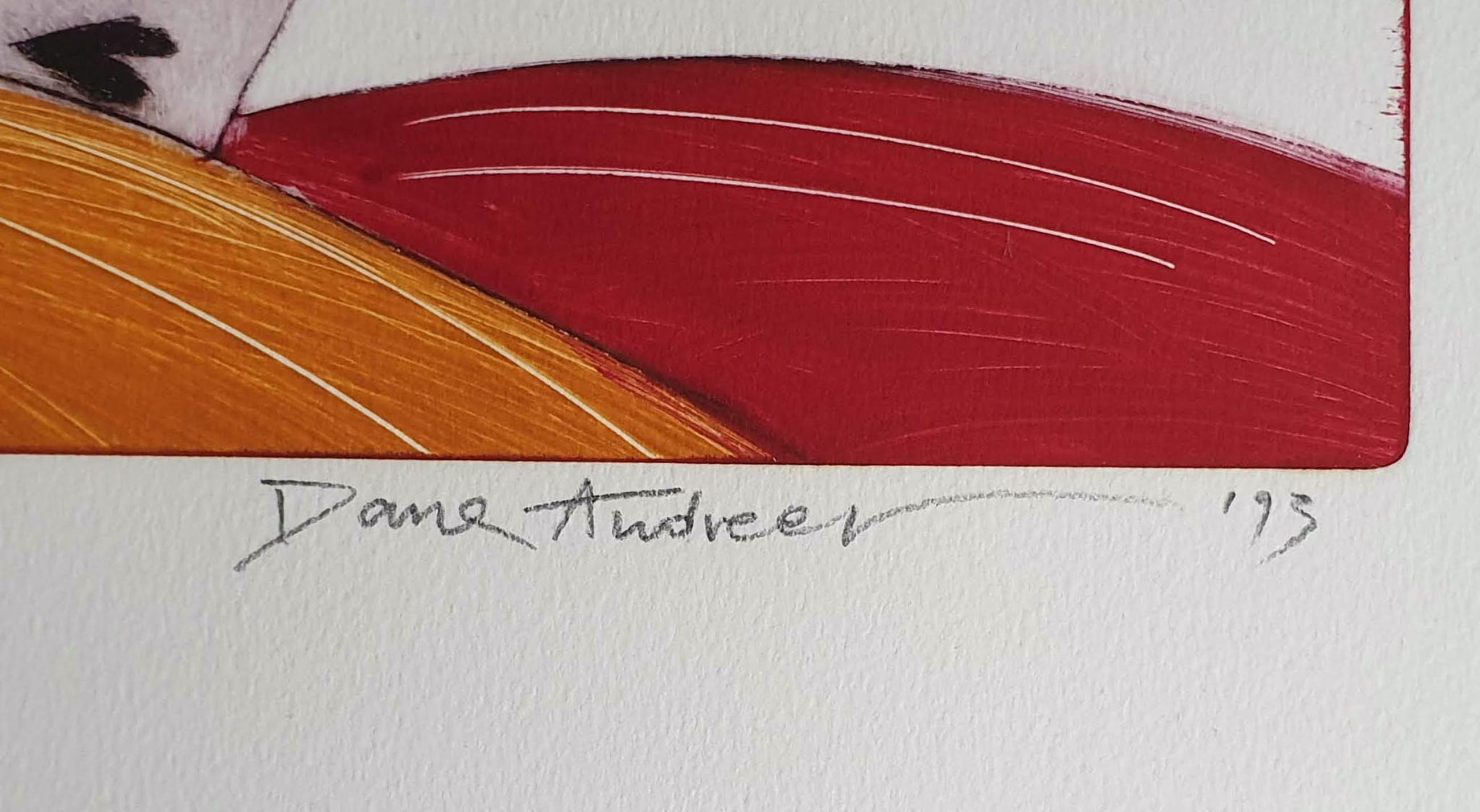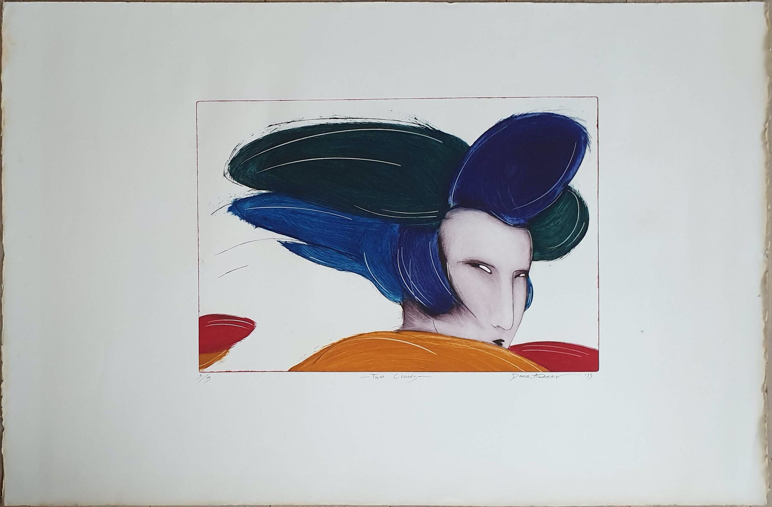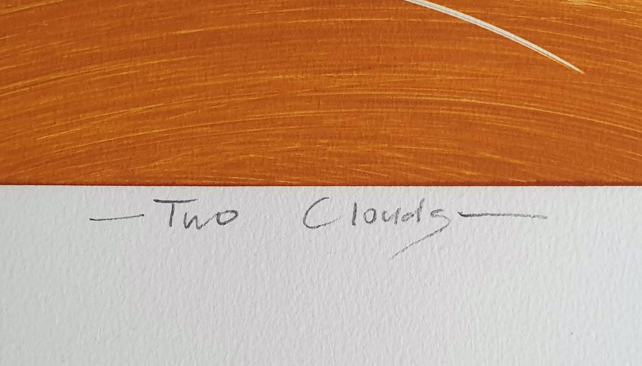 Kleurenets van Dana Andreev met de titel: 'The clouds' uit 1993. Het werk is rechtsonder gesigneerd door de kunstenares met potlood.