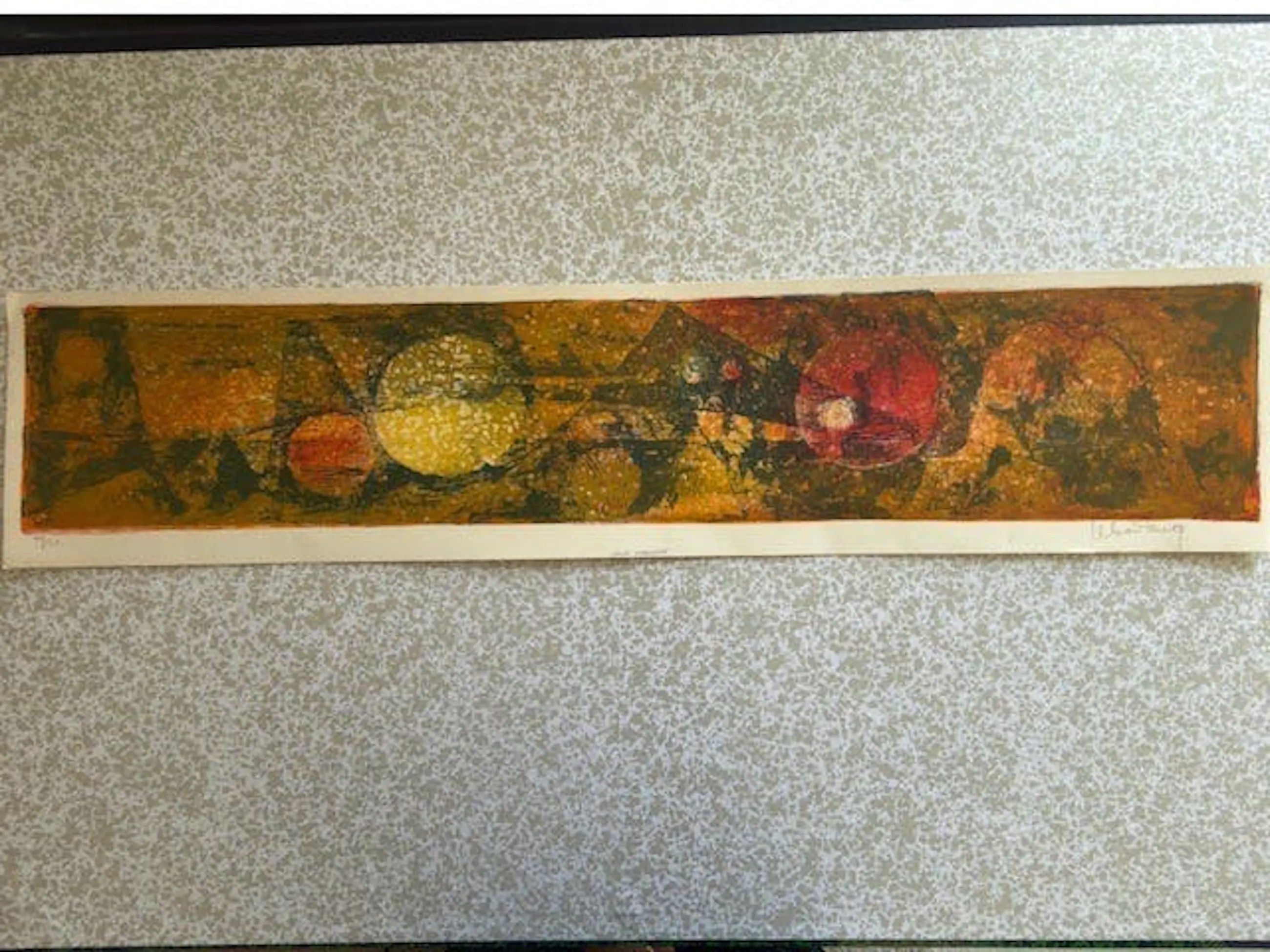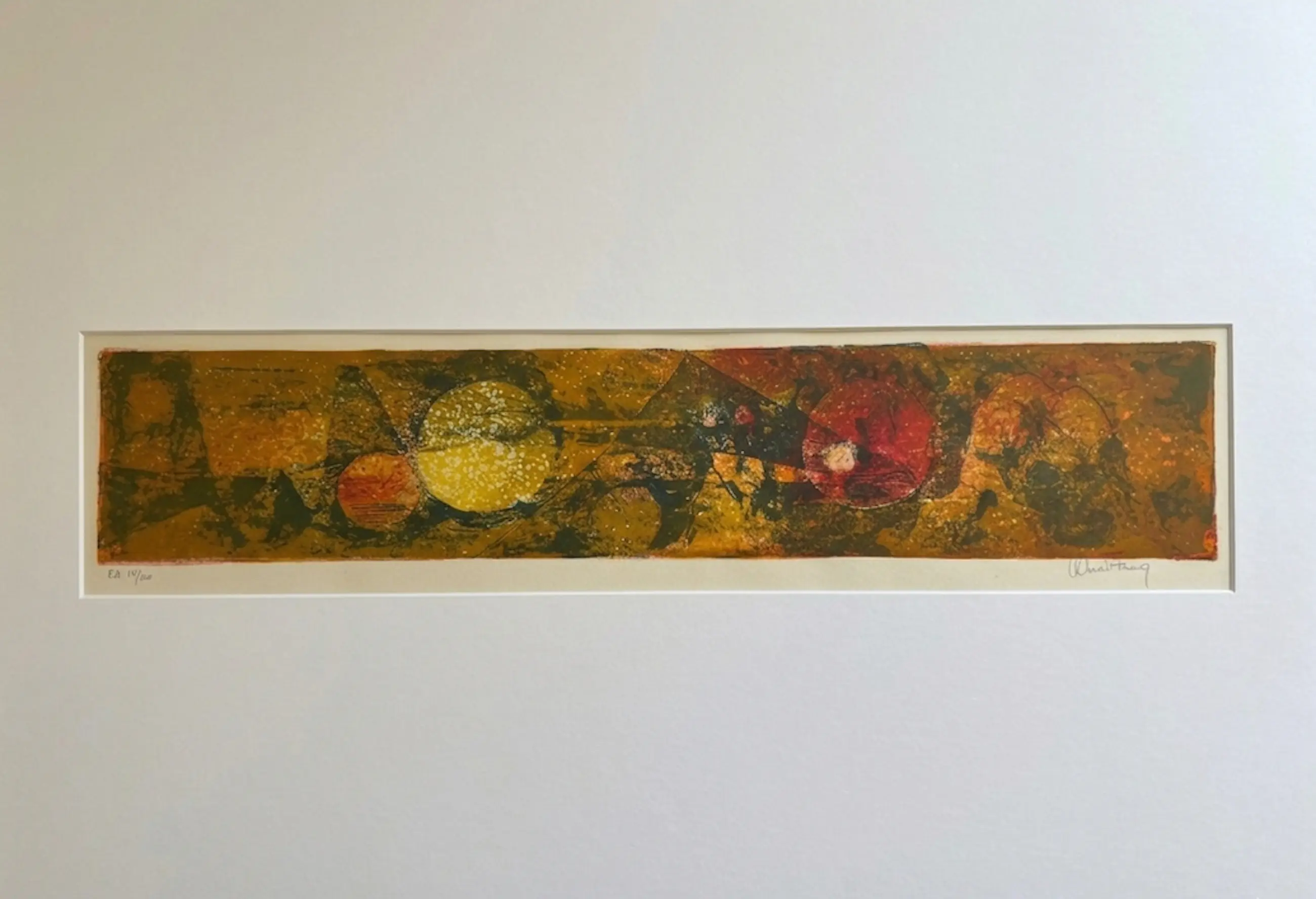 Dit zeldzame panoramische formaat (22x97 cm) biedt een waar venster op de kosmos, waar de kunstenaar op briljante wijze westerse abstractie en oosterse poëzie combineert.