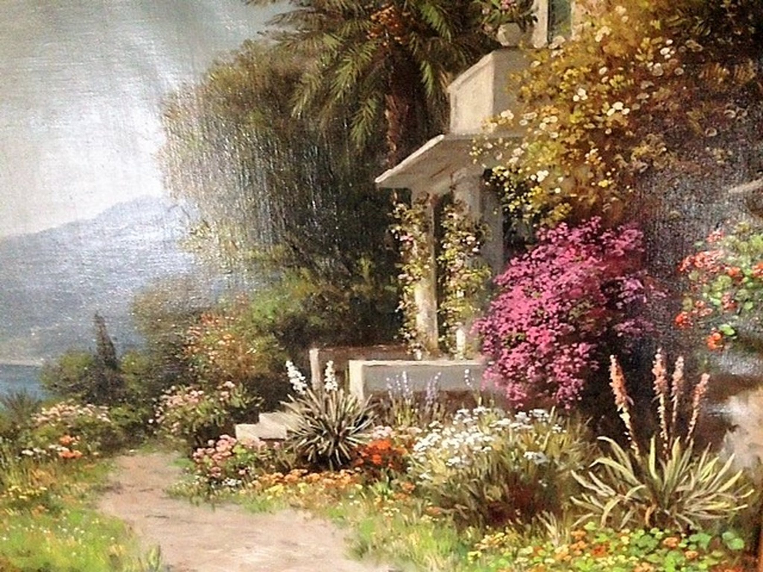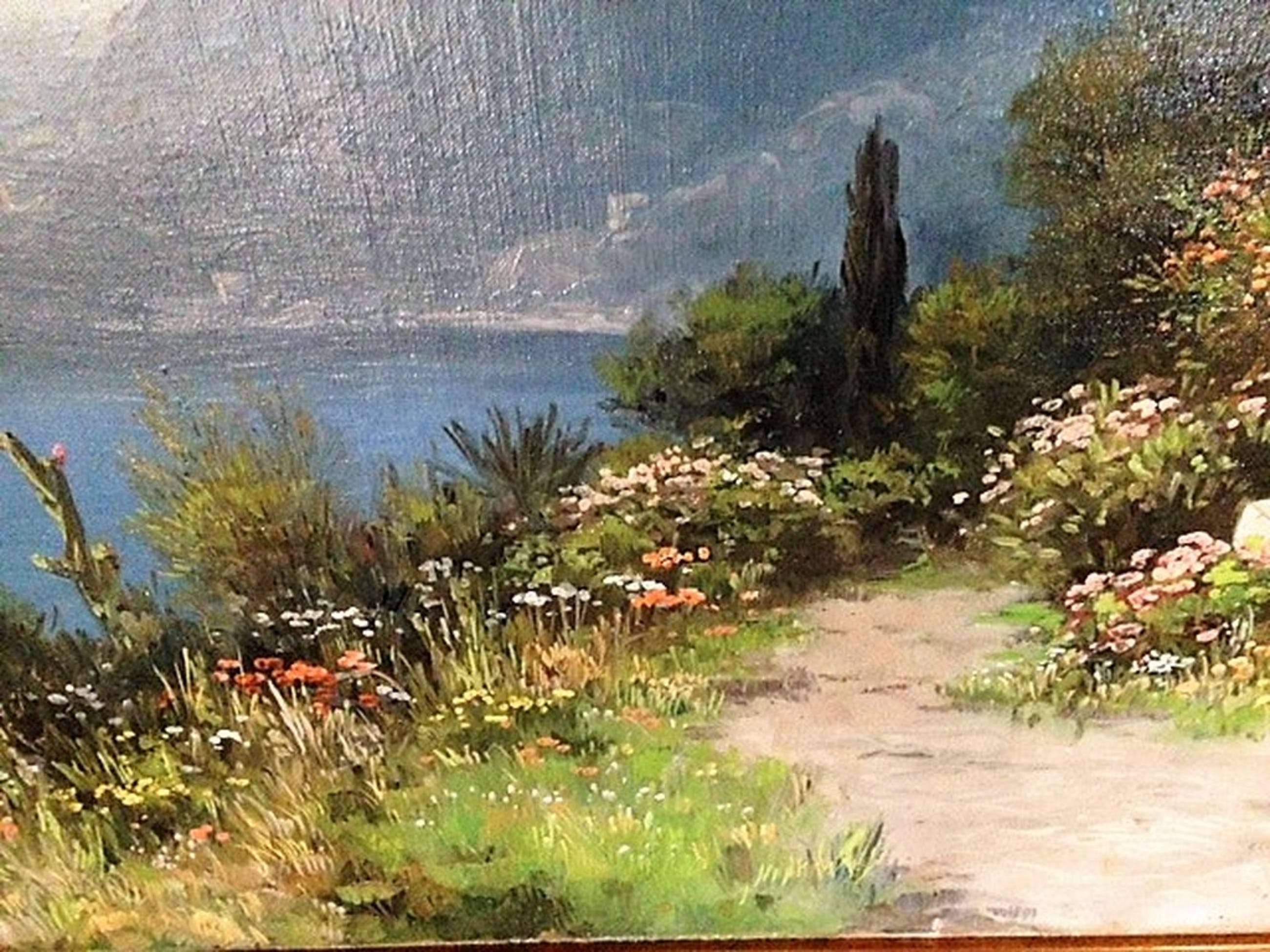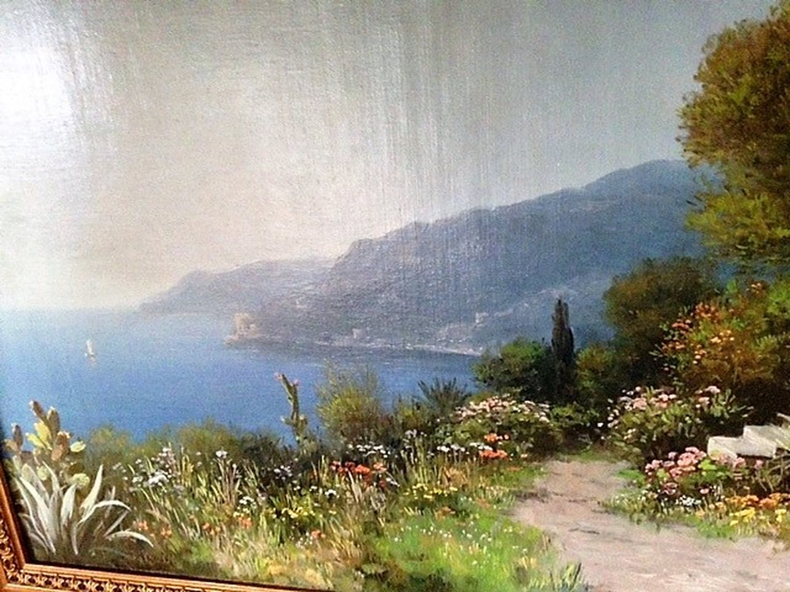 Groot formaat: voorstelling Middellandse zee. Geschilderd door Daniel Been (1885-1967). Daniel Been staat bekend om zijn schilderijen van bloemen. Dit schilderij is gemaakt in de periode dat hij veel in Zuid-Europa verbleef. Hij staat vooral bekend om zijn mengtechniek van kleuren.