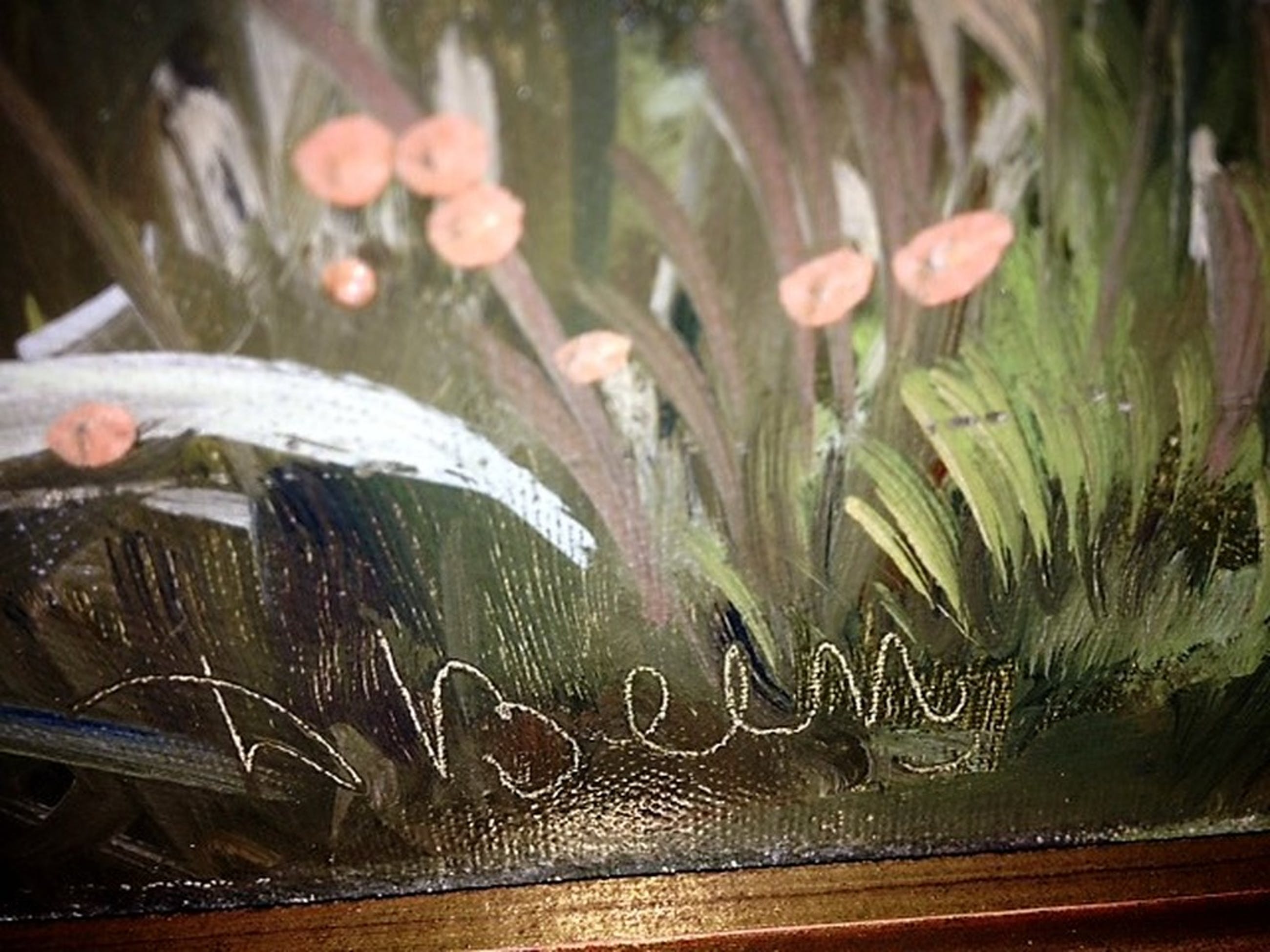 Techniek: olieverf op doek. Gesigneerd aan de linker onderzijde. De afmetingen van het doek zijn: 100 cm x 60 cm. Inclusief de fraaie rustieke lijst zijn de afmetingen: 122 cm x 82 cm.