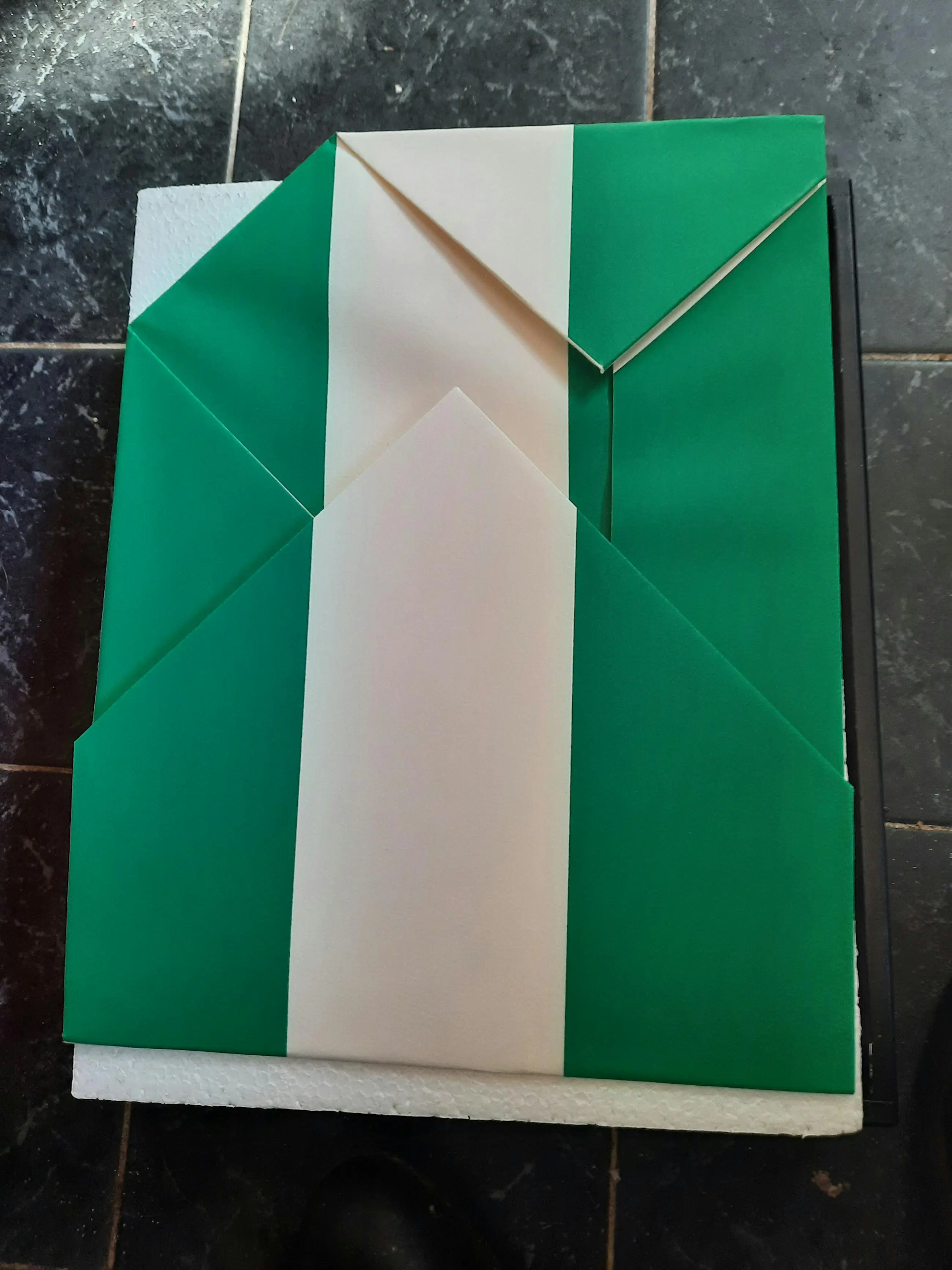 Zeefdruk Daniel Buren uit de Doos; Contemporary Archeology part III Bebert. Origami gevouwen door Buren en vervaardigd in Japan. dit is nummer 1/ 40 gestempeld door Buren met zijn eigen stempel. bUREN SIGNEERT NIET MET ZIJN NAAM Deze editie is nooit gesigneerd geweest door hem alleen gestempeld. in perfecte staat collectors item