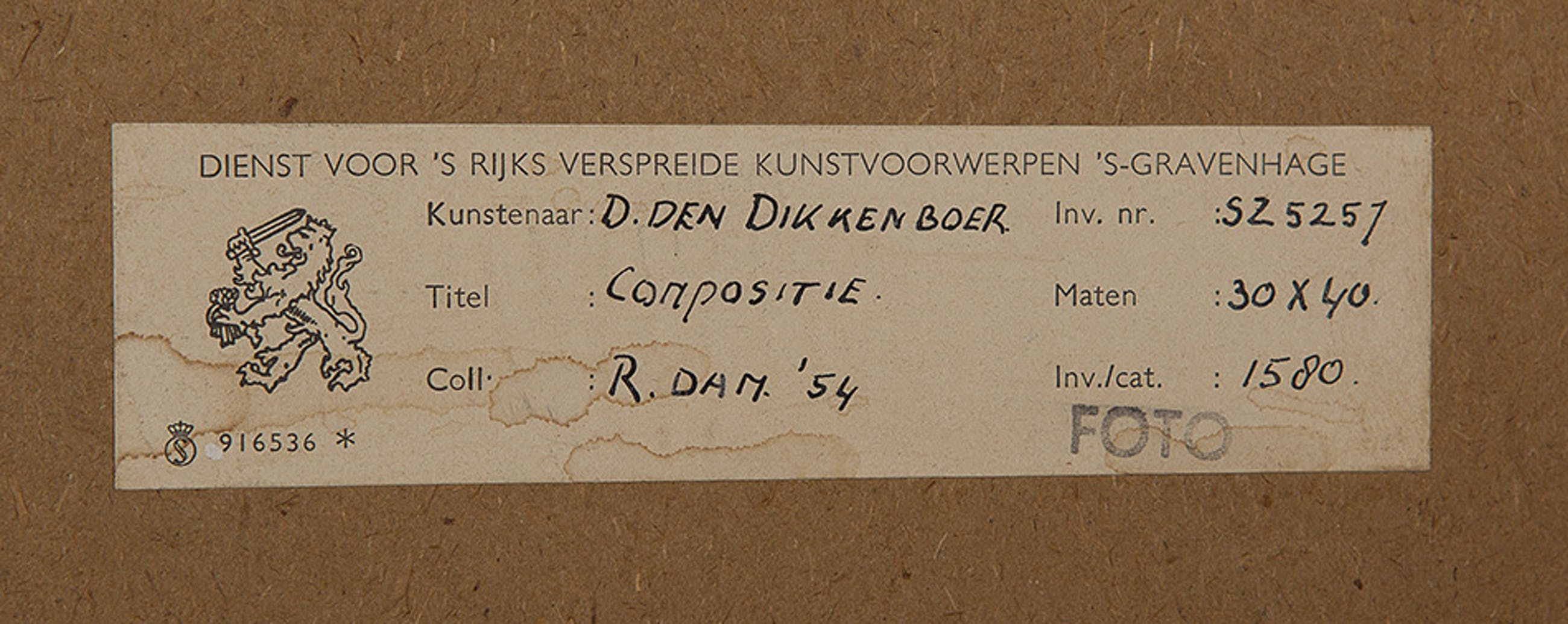 Herkomst: BKR Rotterdam (Het kunstwerk is afgevoerd uit de rijkscollectie in 2018)