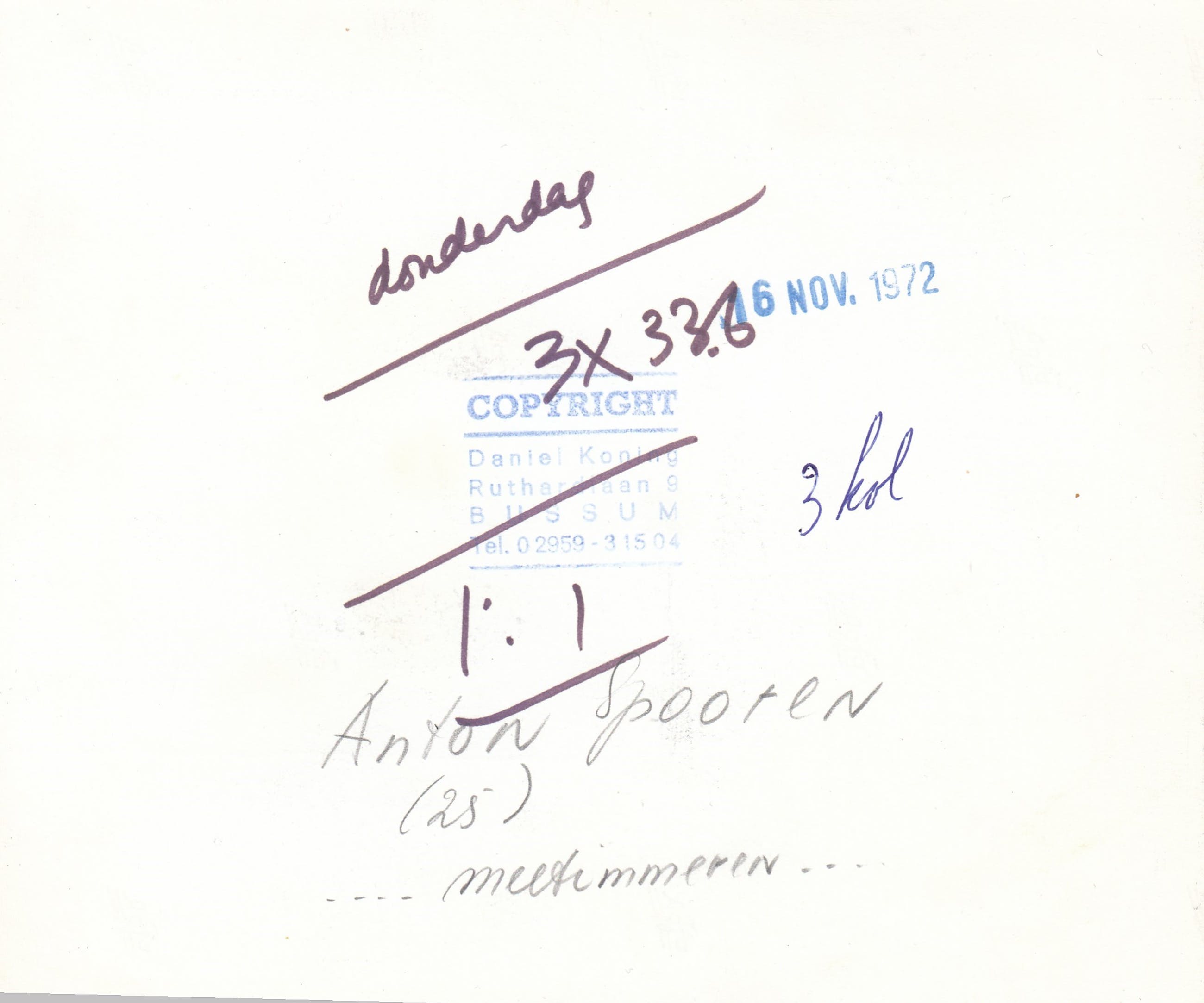 Herkomst Dagblad de Tijd : gepubliceerde foto 1972 (kadering)