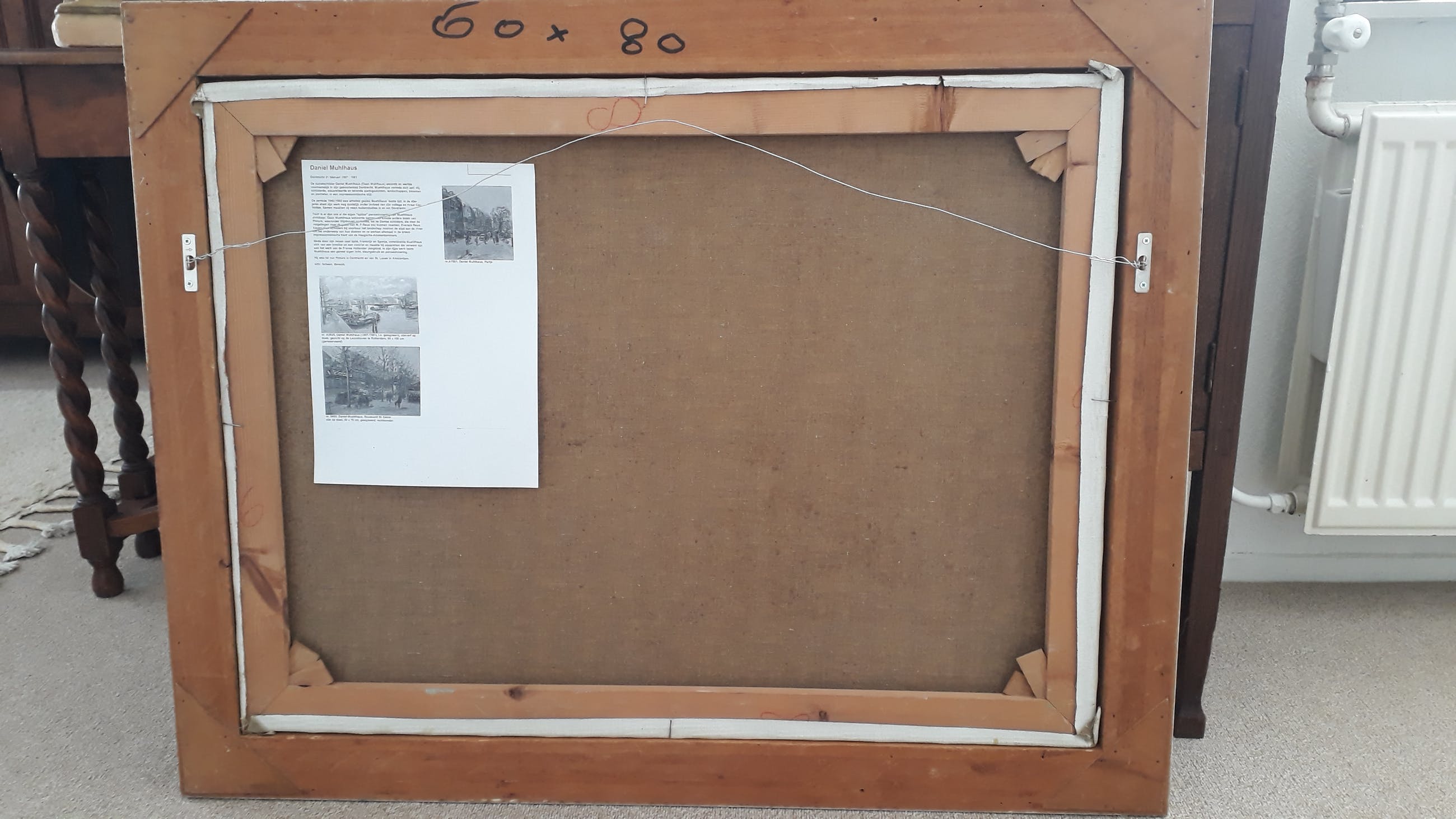 Schilderij is in prima staat, lijst heeft aan de zijkanten lichte beschadigingen.