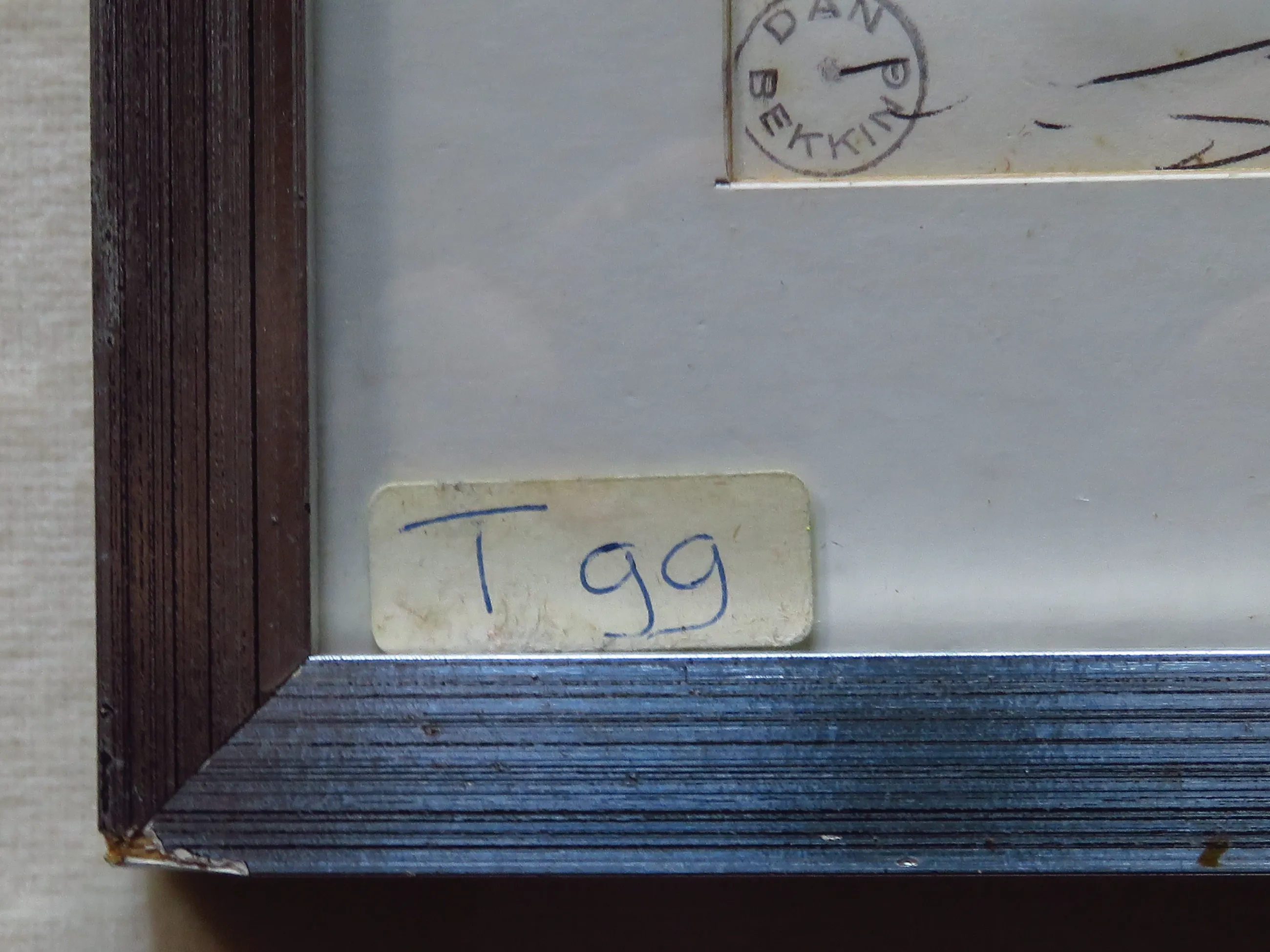 Het werk zit in de originele lijst achter glas. De lijst is beschadigd.