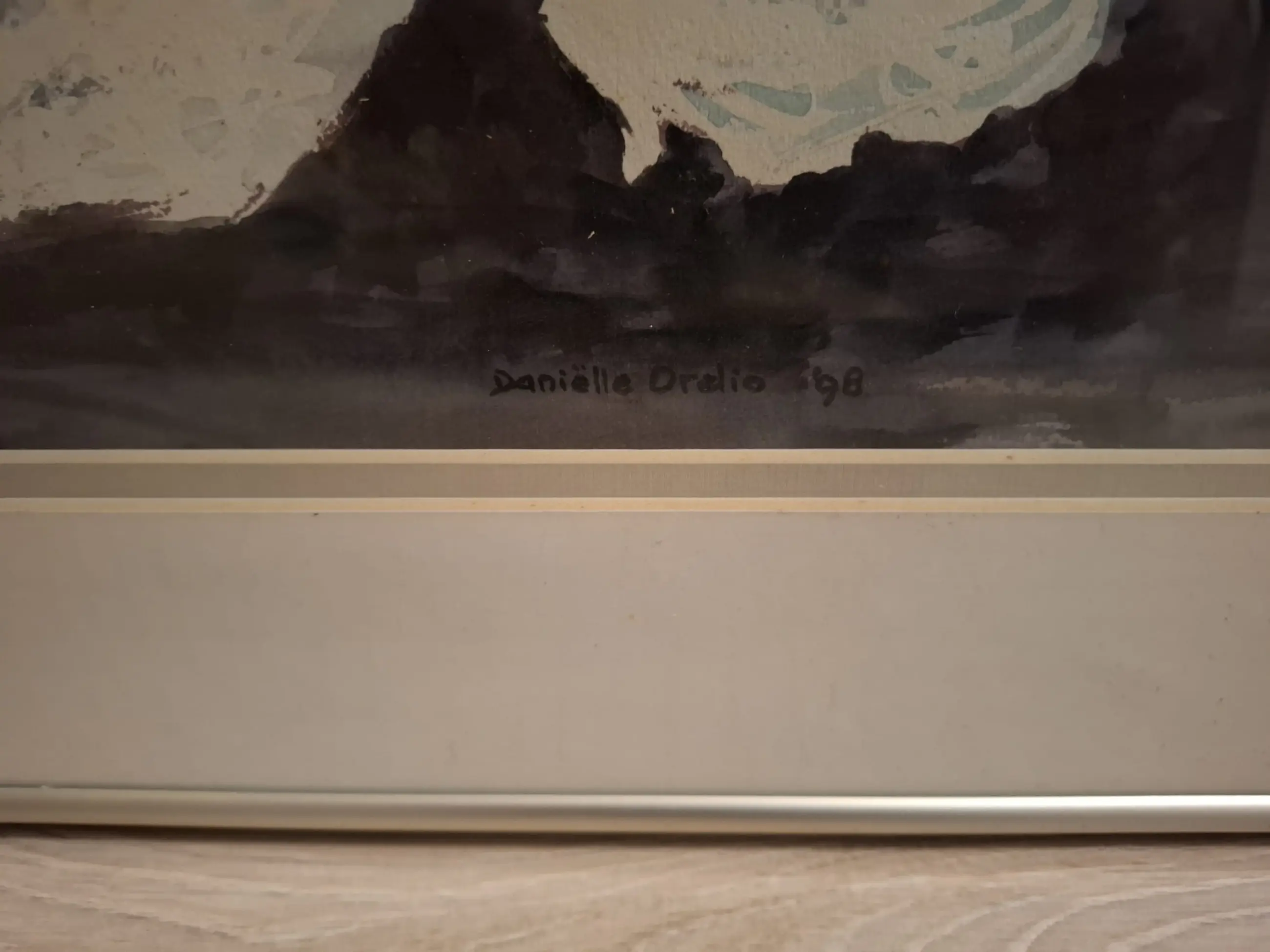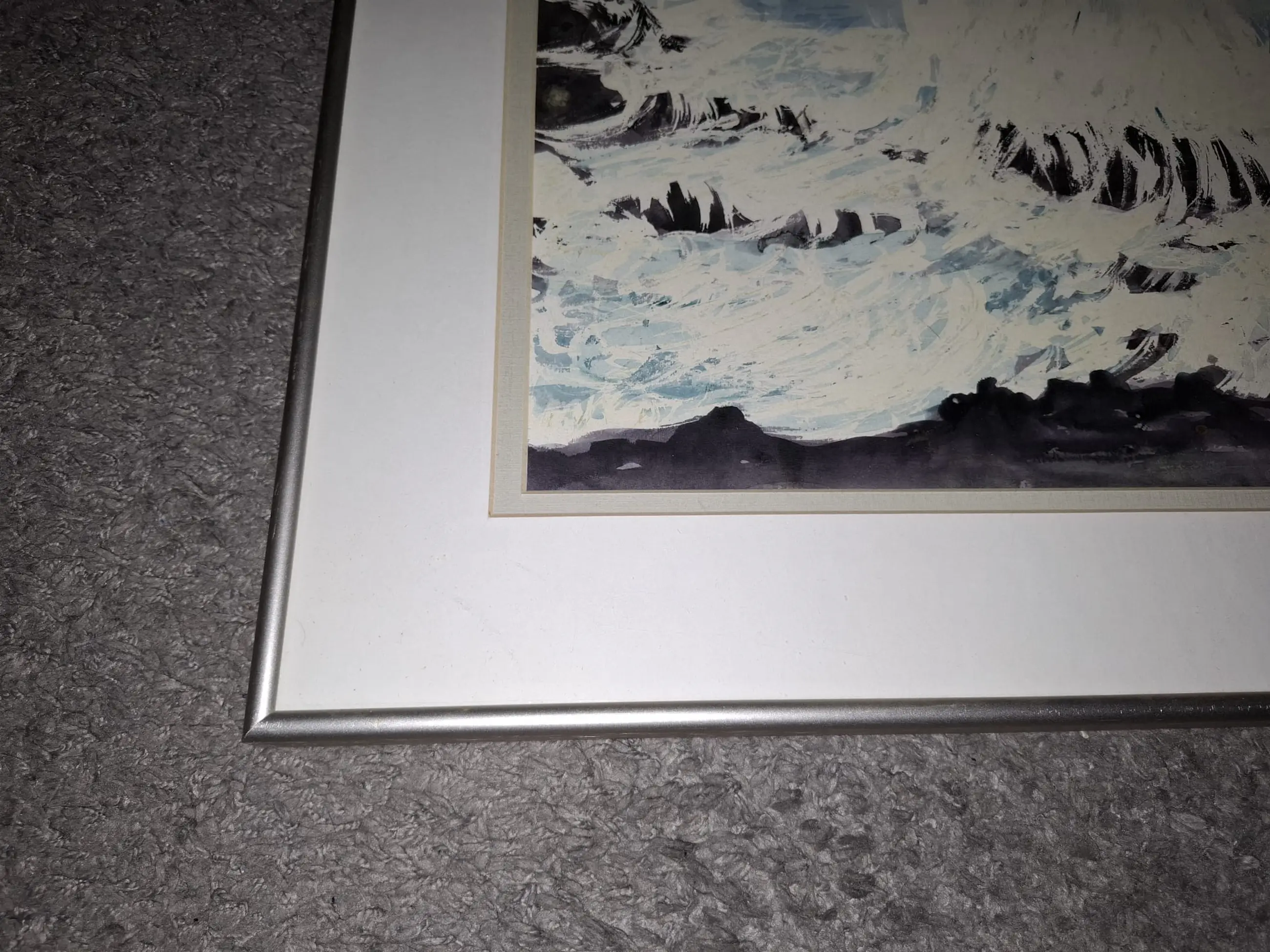 Het werk is voorzien van een strake lijst . Wat vervaging door licht voorkomt en zuren van papier weghoudt