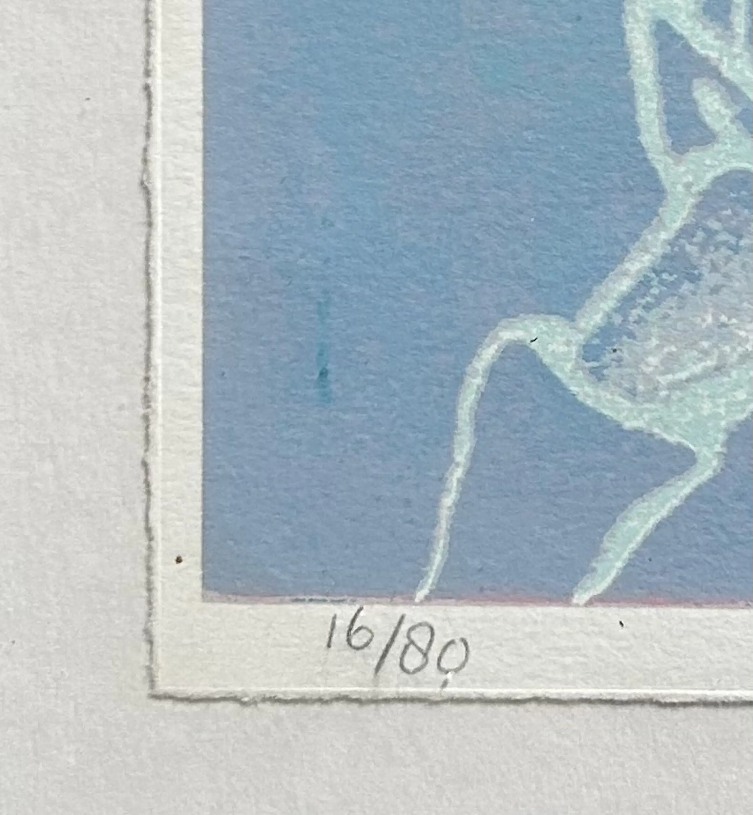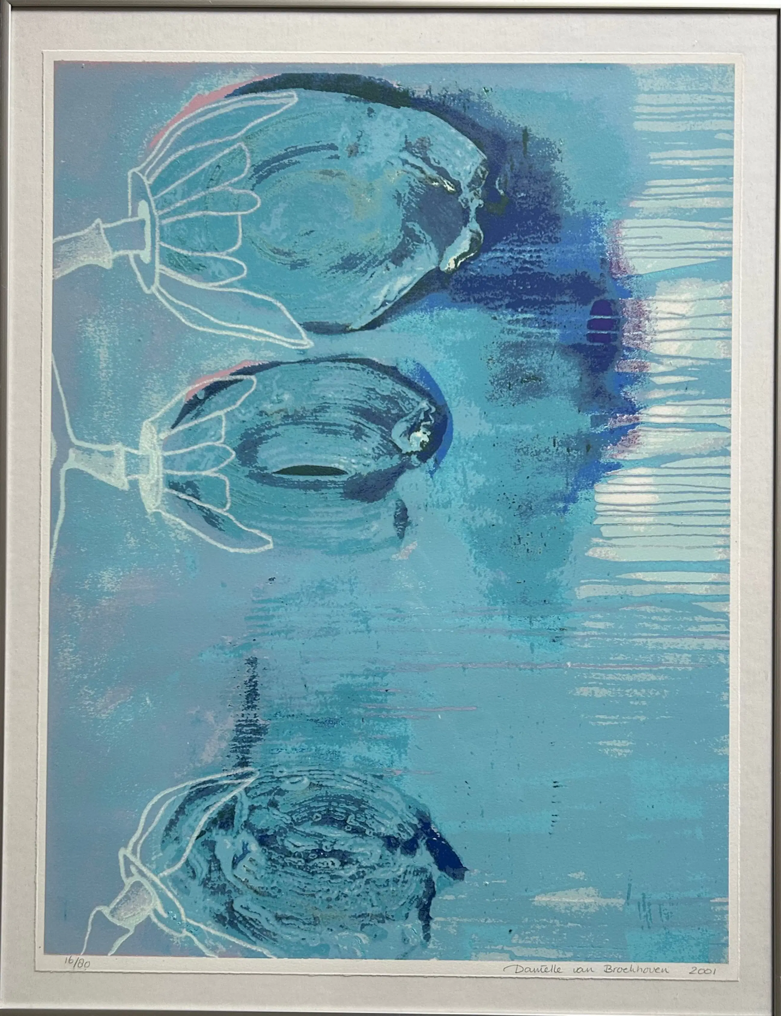 Prachtige zeefdruk van Danielle Broekhoven. Zonder titel. Gesigneerd en genummerd in Potlood. In metalen lijst.